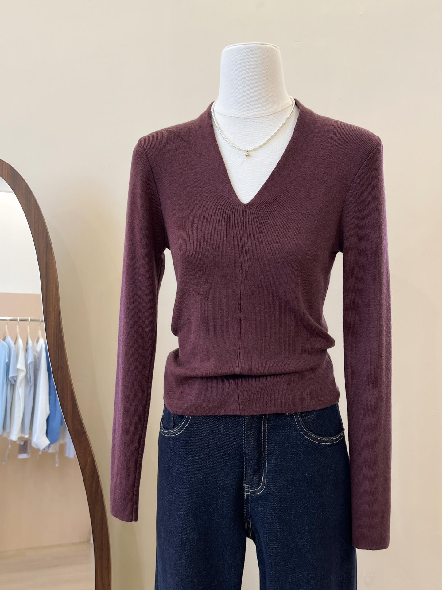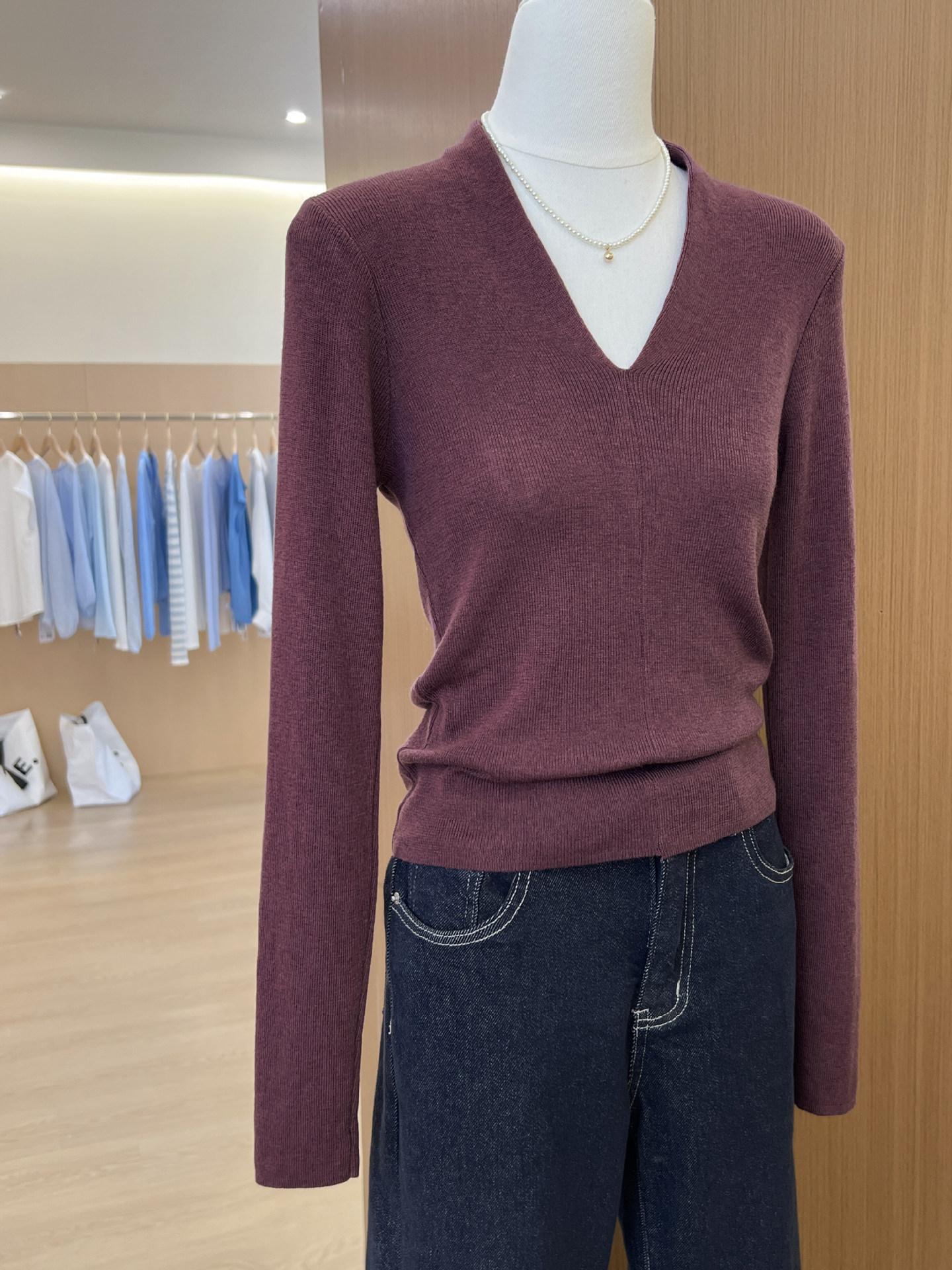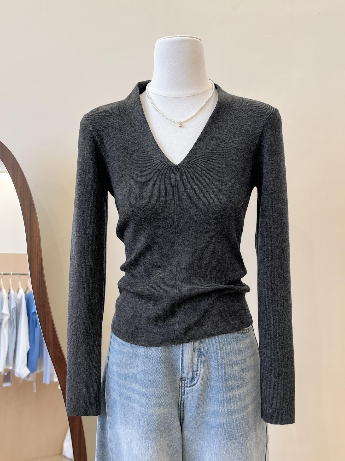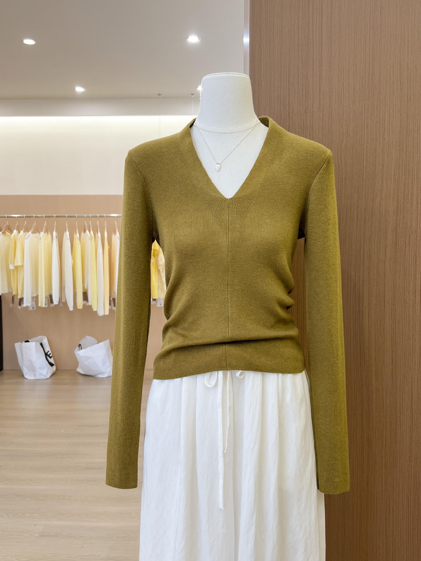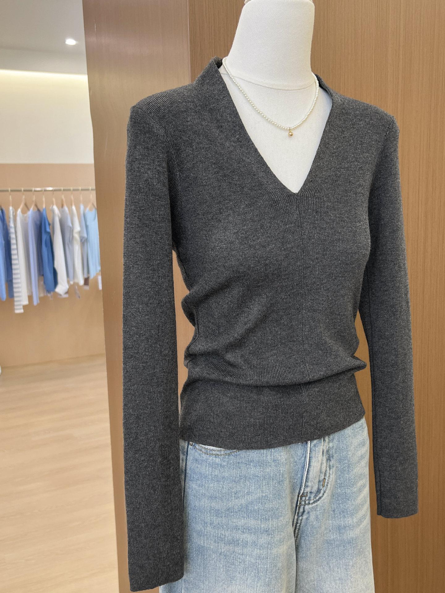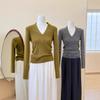 Playera de Punto de Manga Larga a Rayas con Bloque de Color para Mujer 2025 Primavera y Otoño Nueva Interior Cuello en V Adelgazante Camiseta Básica Top Marea