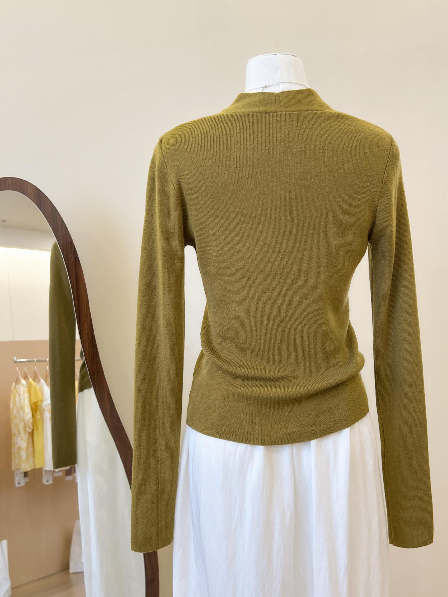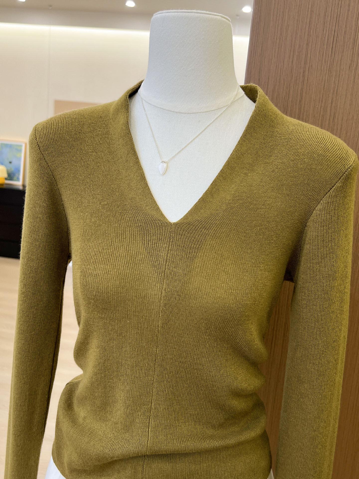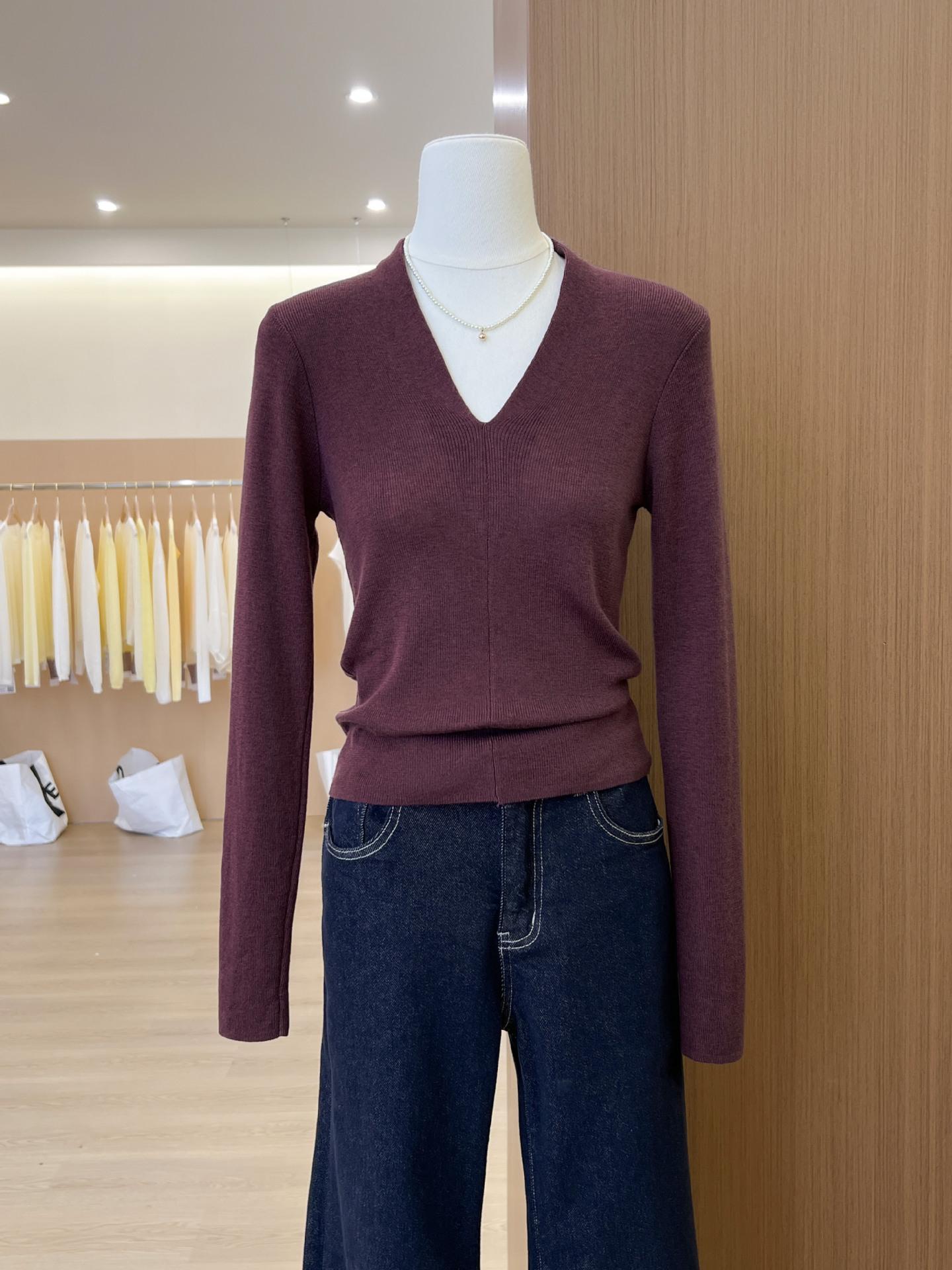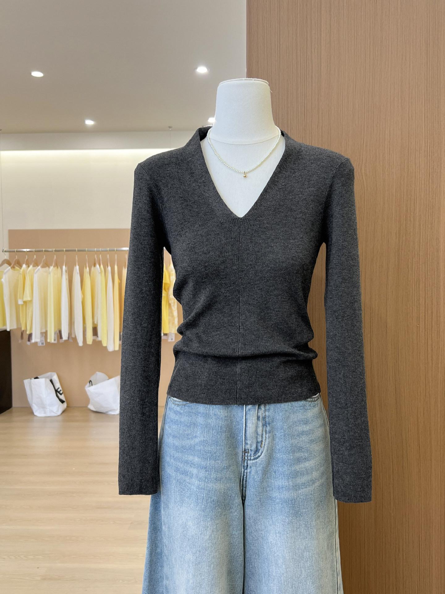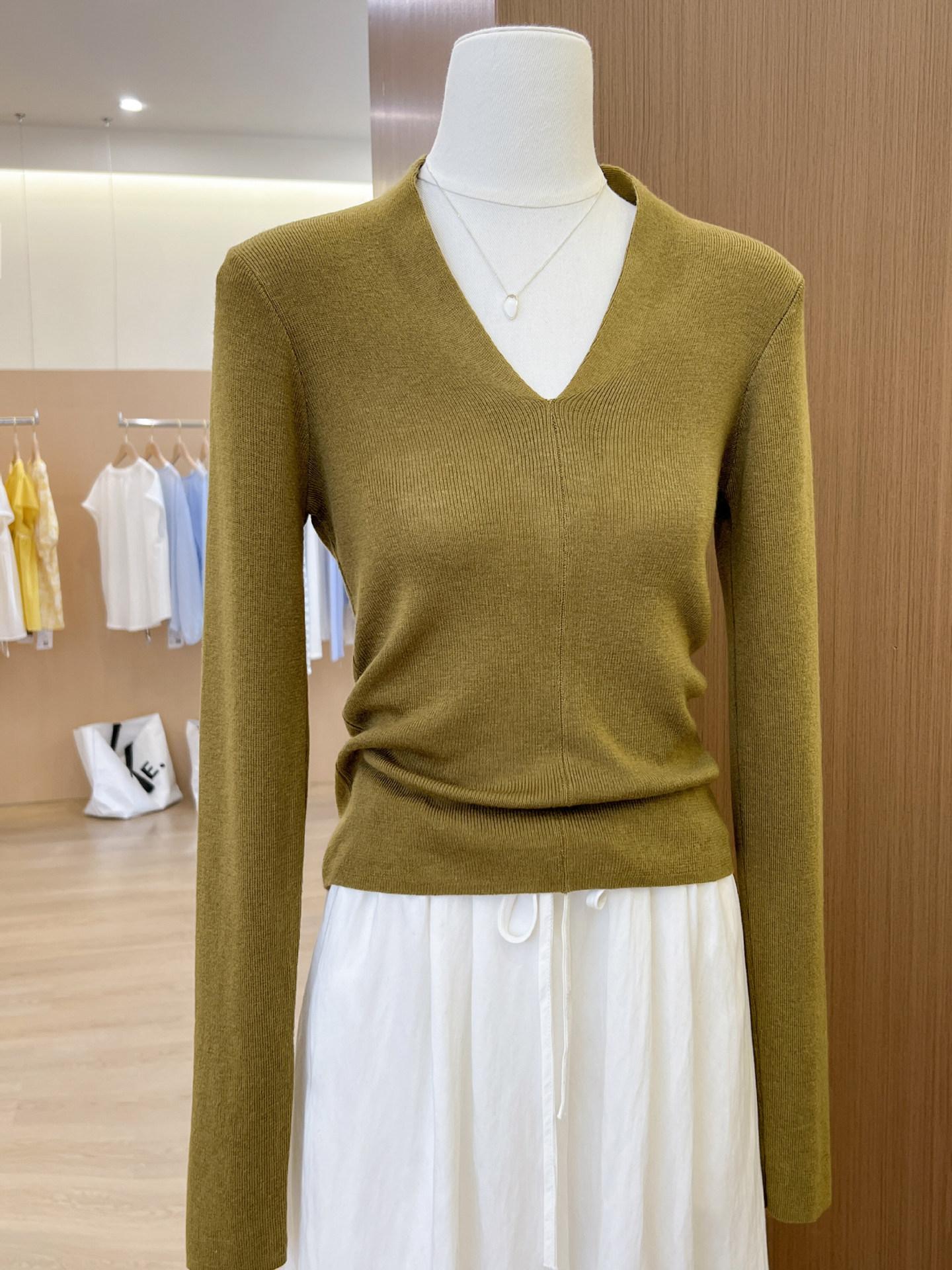 Playera de Punto de Manga Larga a Rayas con Bloque de Color para Mujer 2025 Primavera y Otoño Nueva Interior Cuello en V Adelgazante Camiseta Básica Top Marea