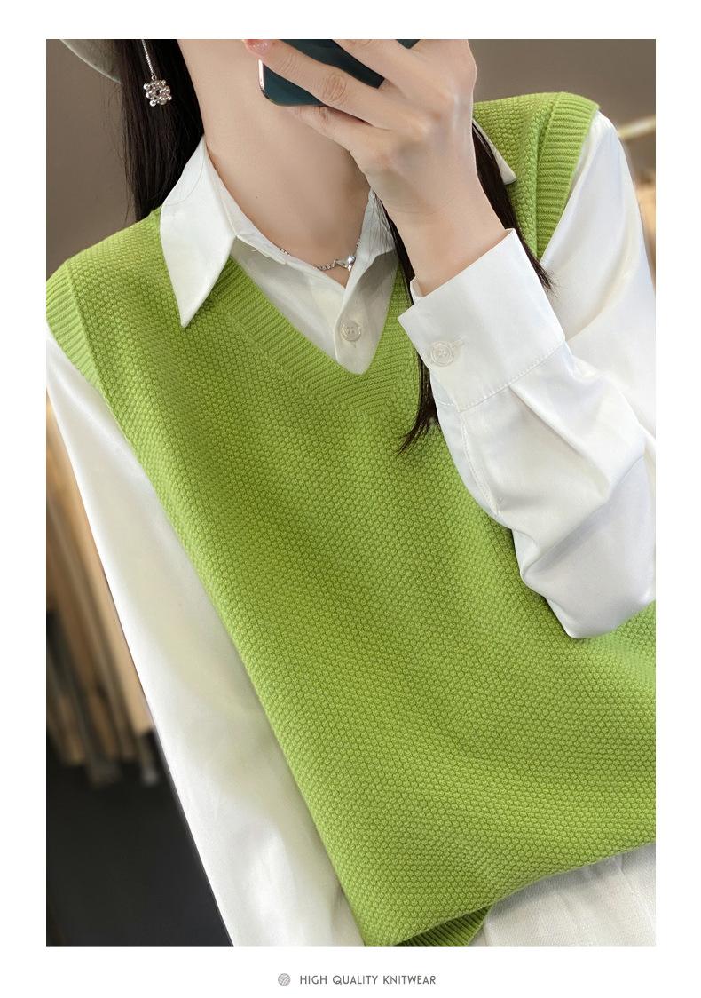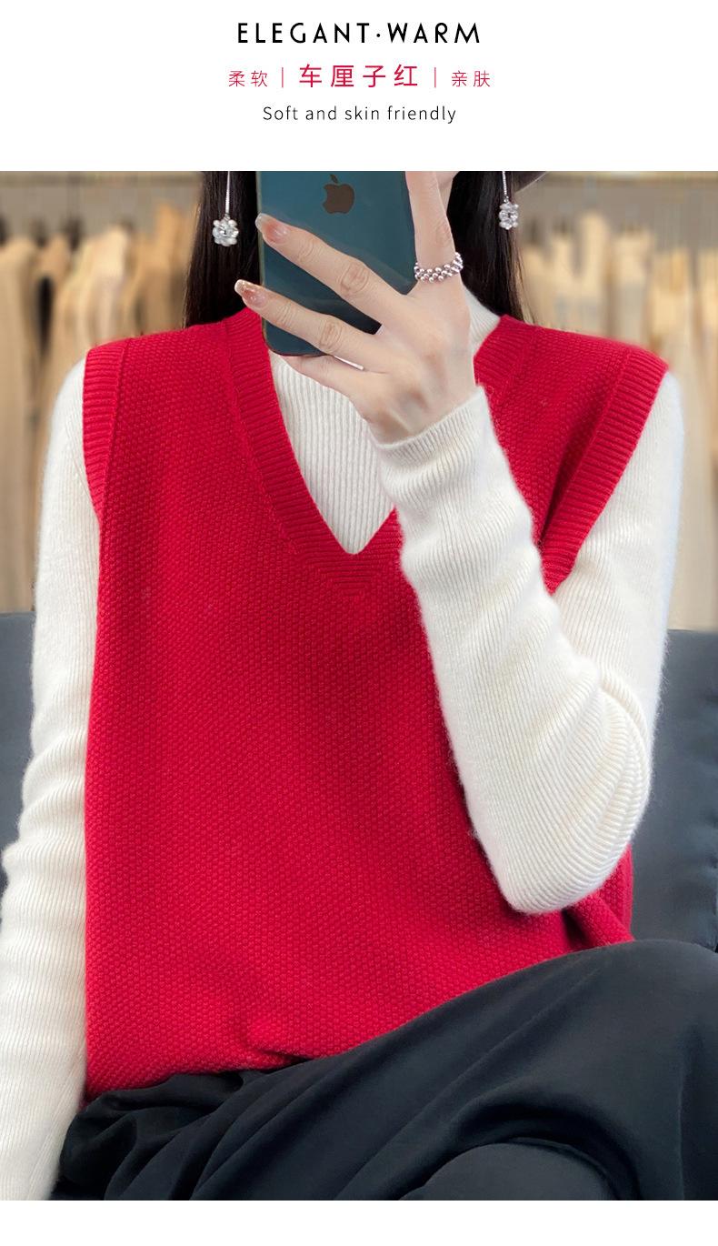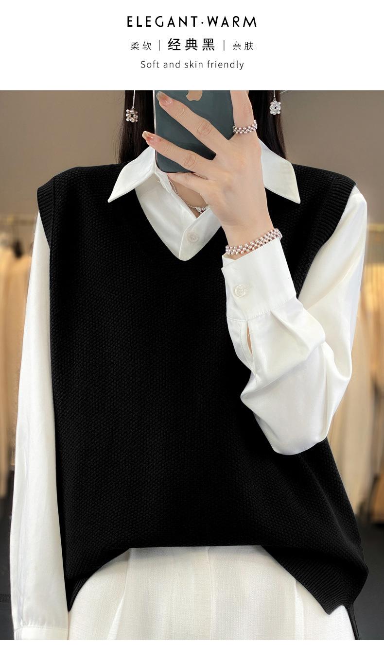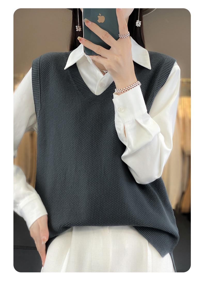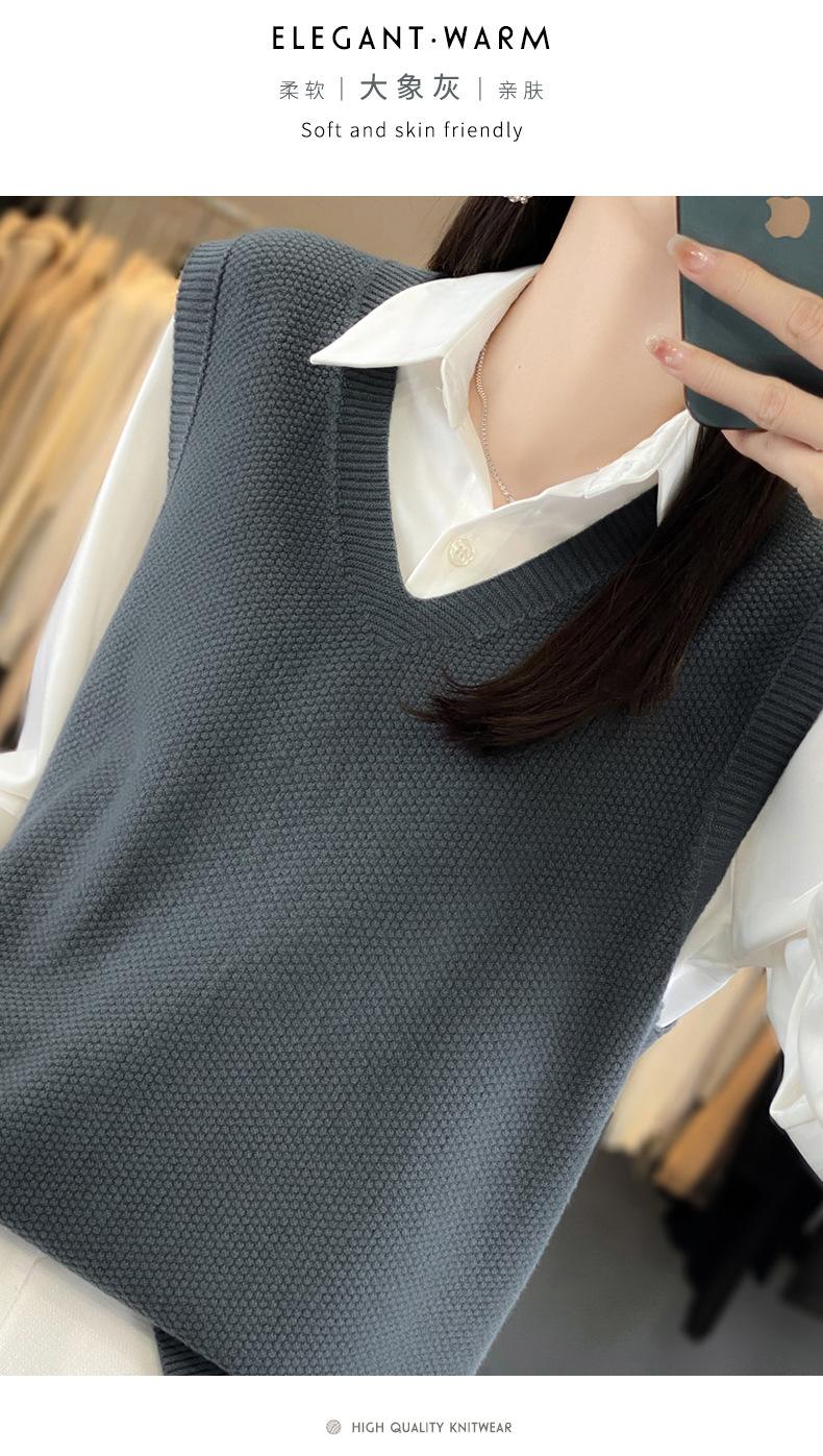 Transfronterizo Otoño 2025 Nuevo Jersey Corto de Cuello en V Versátil Chaleco para Mujer Hilo Hilado al Núcleo Chaleco Tejido