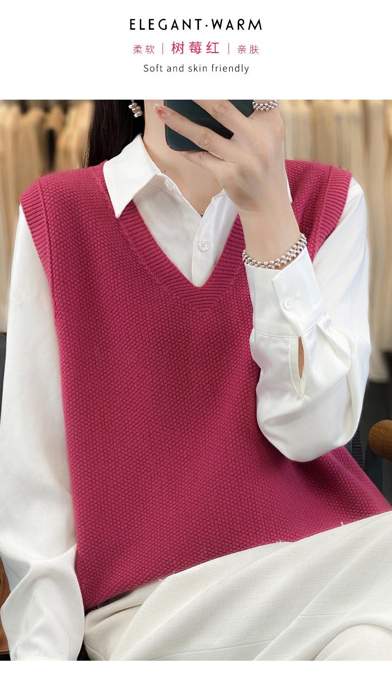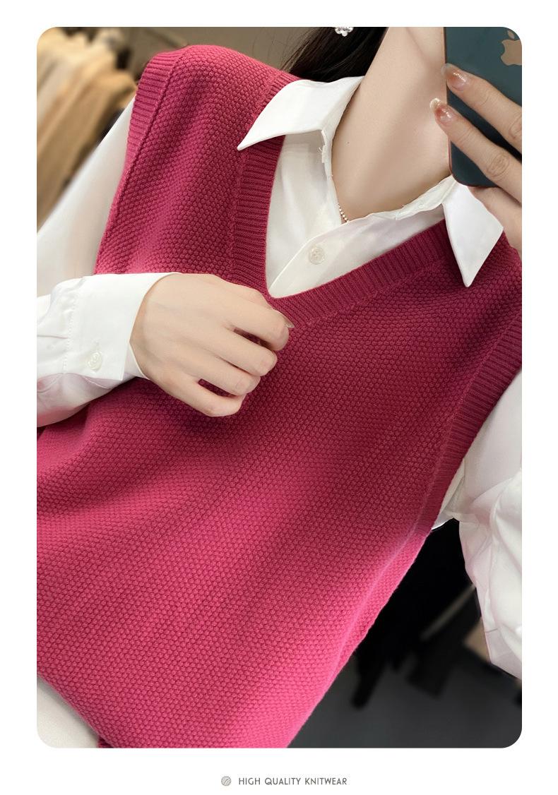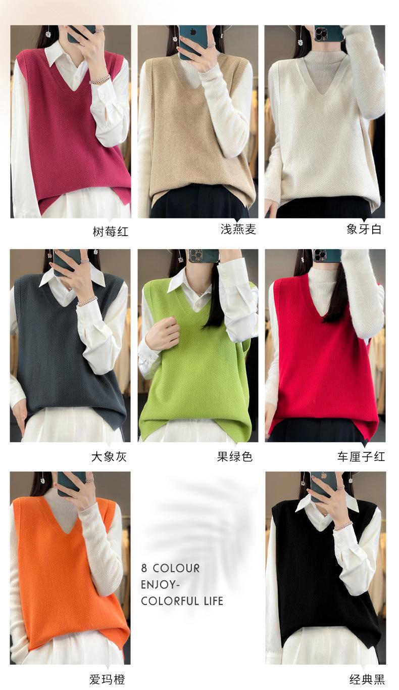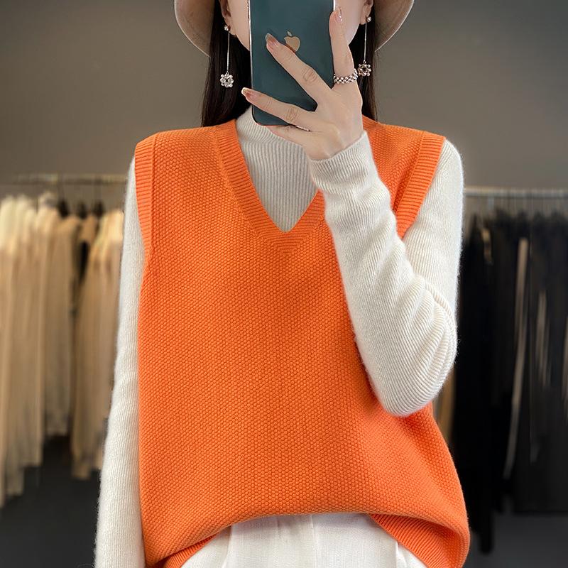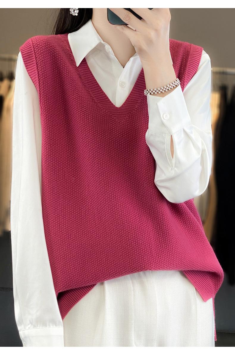 Transfronterizo Otoño 2025 Nuevo Jersey Corto de Cuello en V Versátil Chaleco para Mujer Hilo Hilado al Núcleo Chaleco Tejido