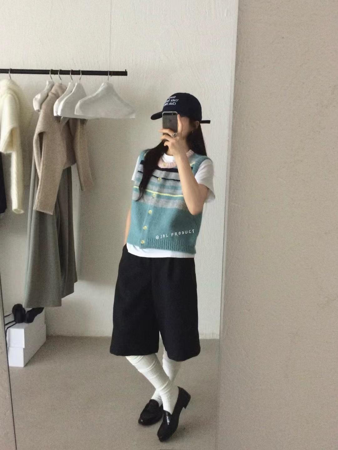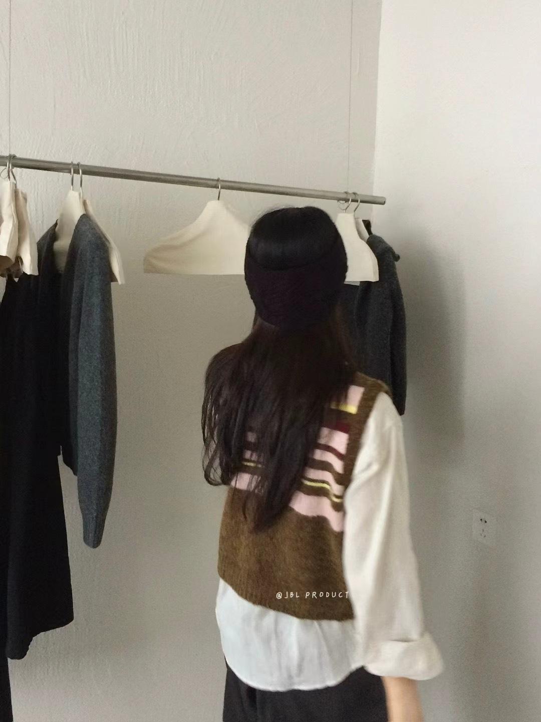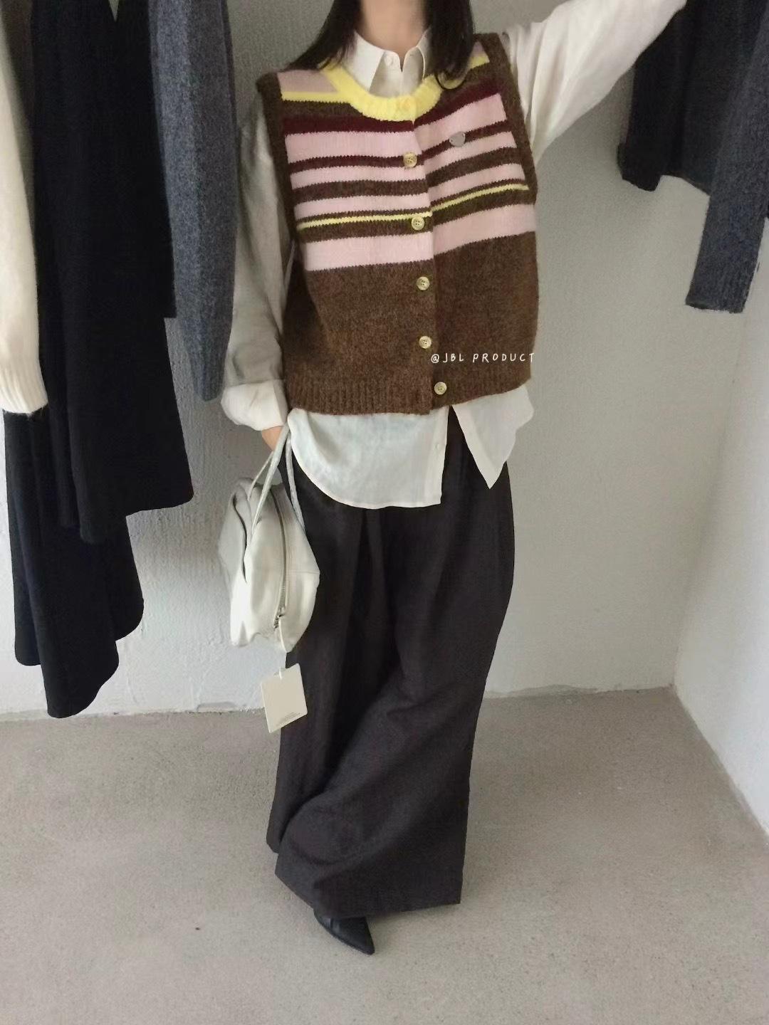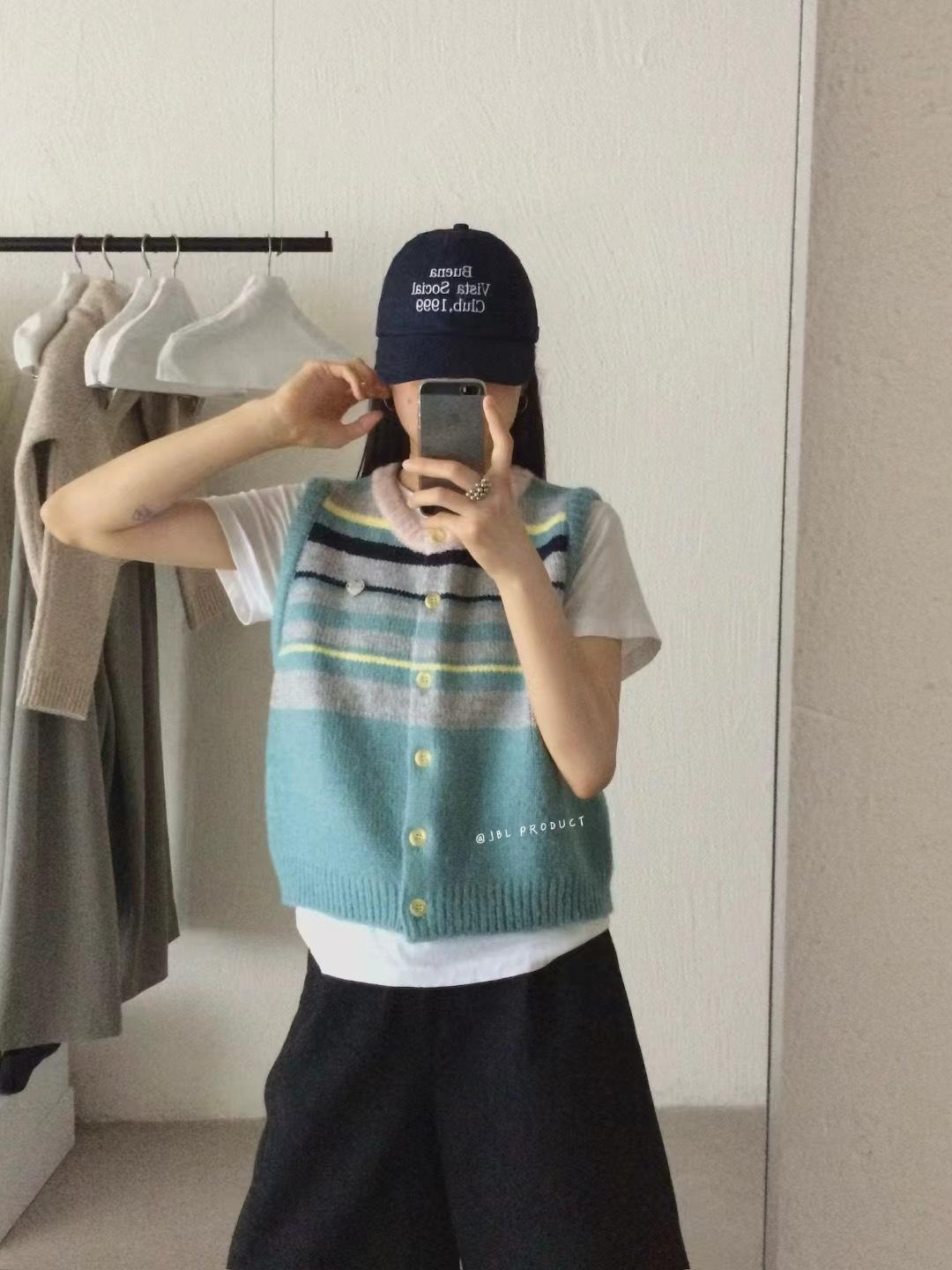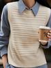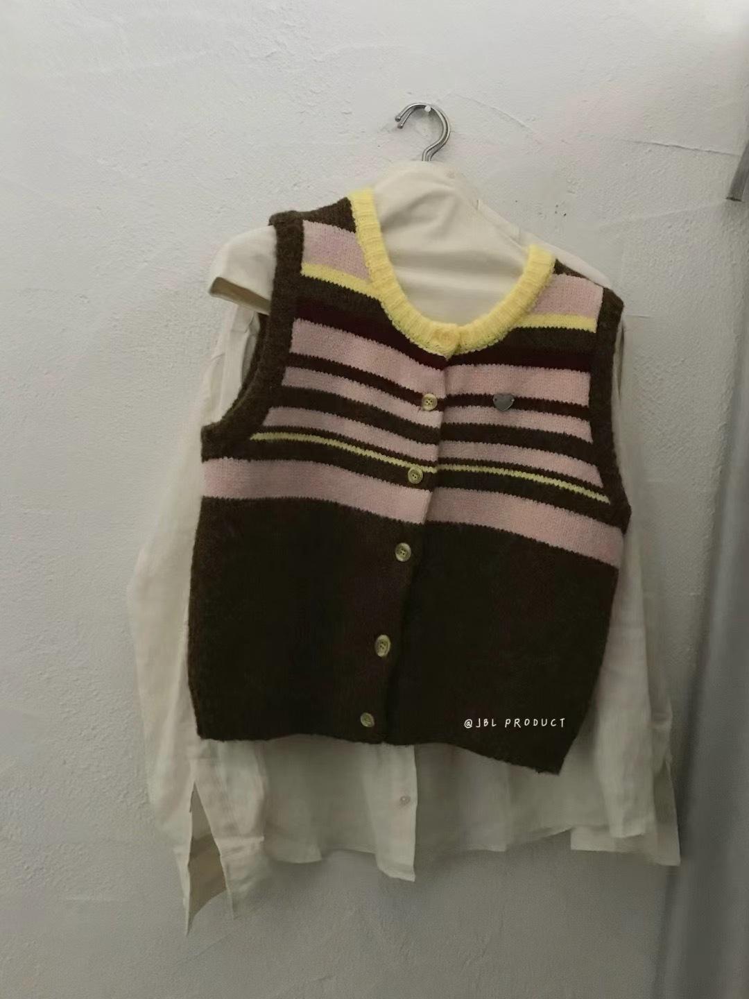 Chaleco de Punto de Cuello Redondo a Rayas Colorblock Retro Coreano para Mujer Otoño/Invierno de Alta Gama para Superponer sin Mangas