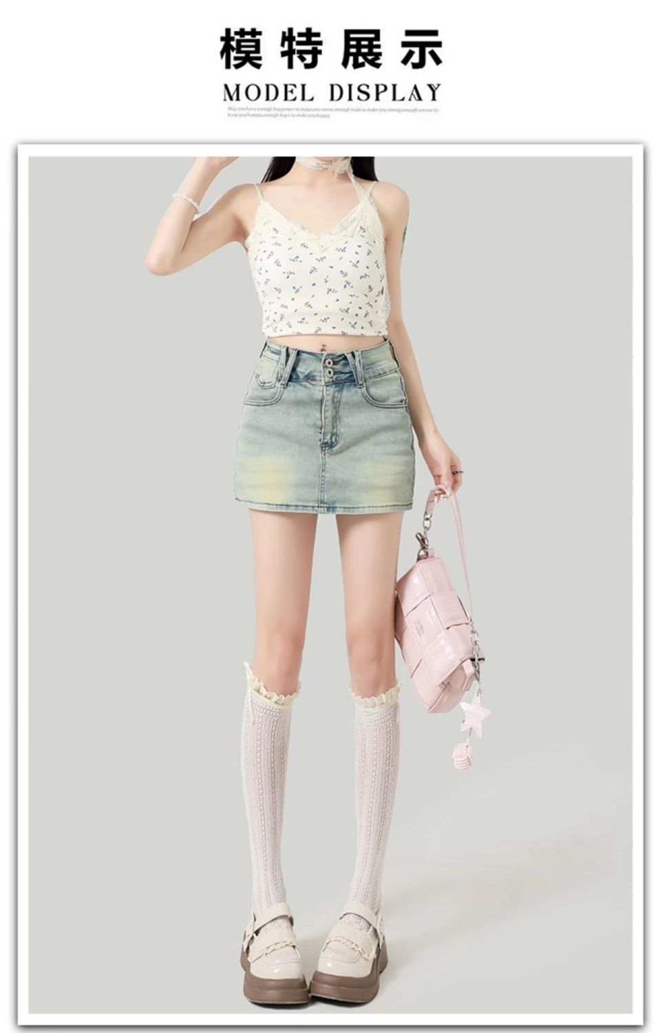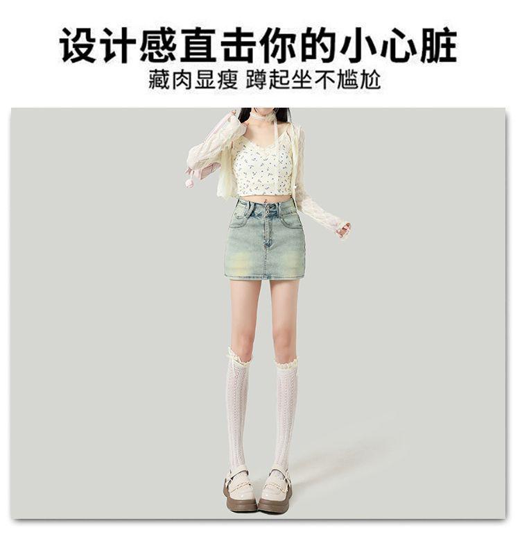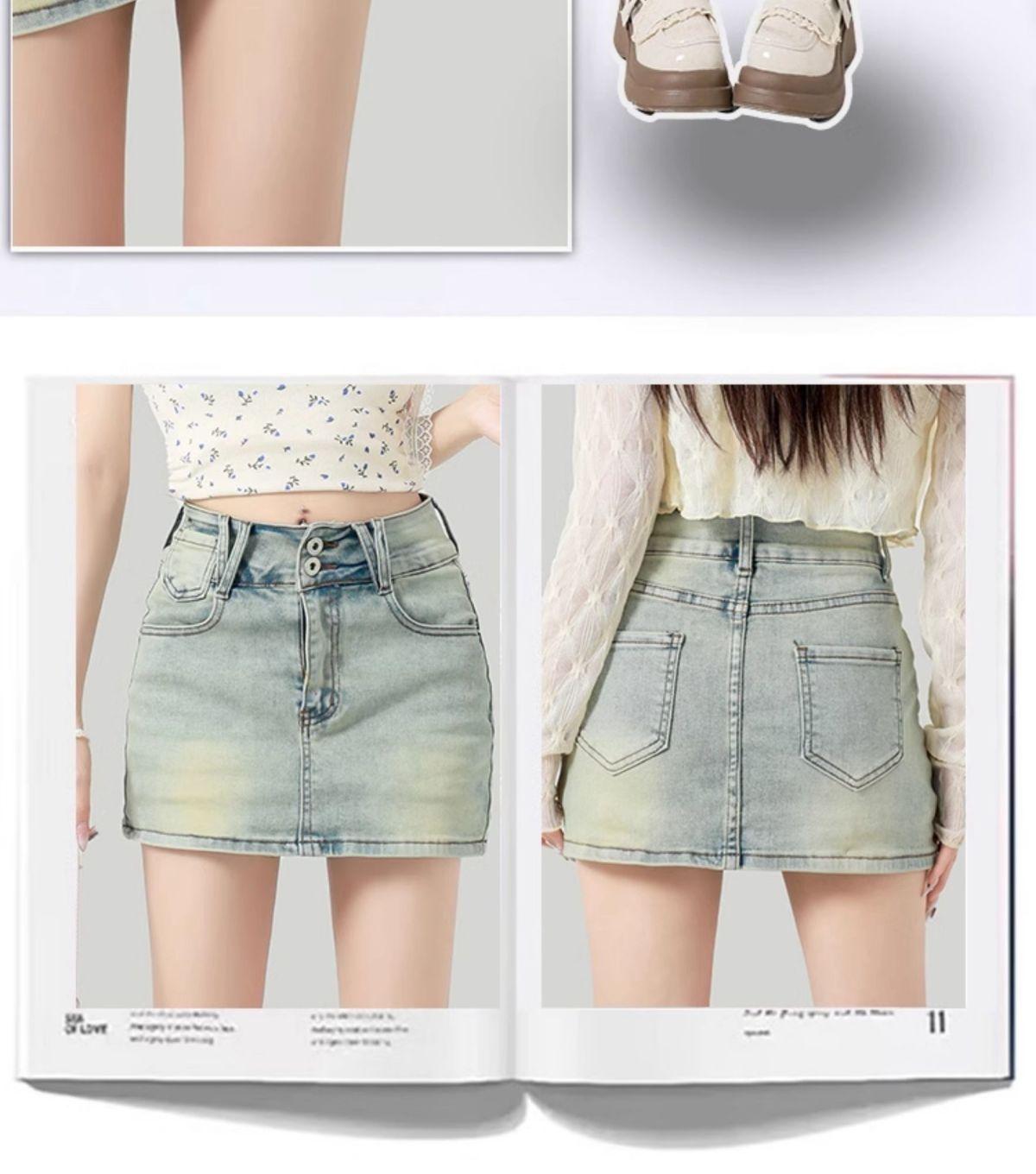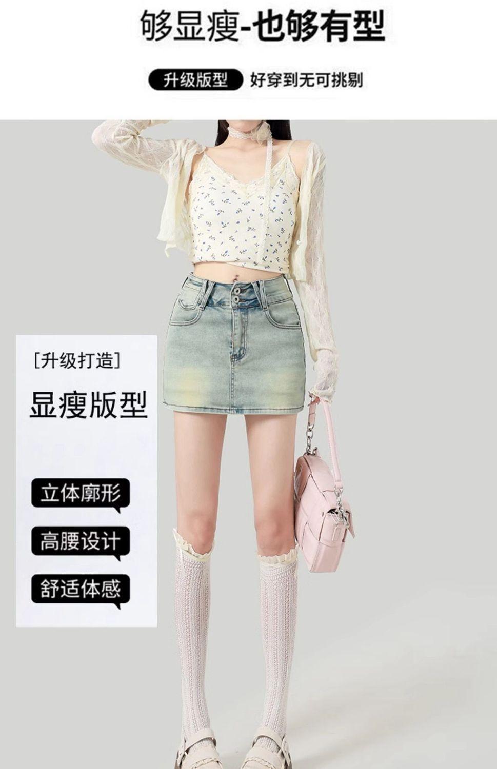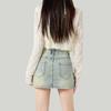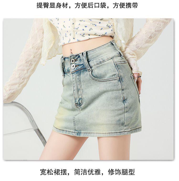 Falda de mezclilla azul claro para mujer 2025 verano nueva cintura alta delgada línea A moderna versátil ajustada a la cadera falda corta
