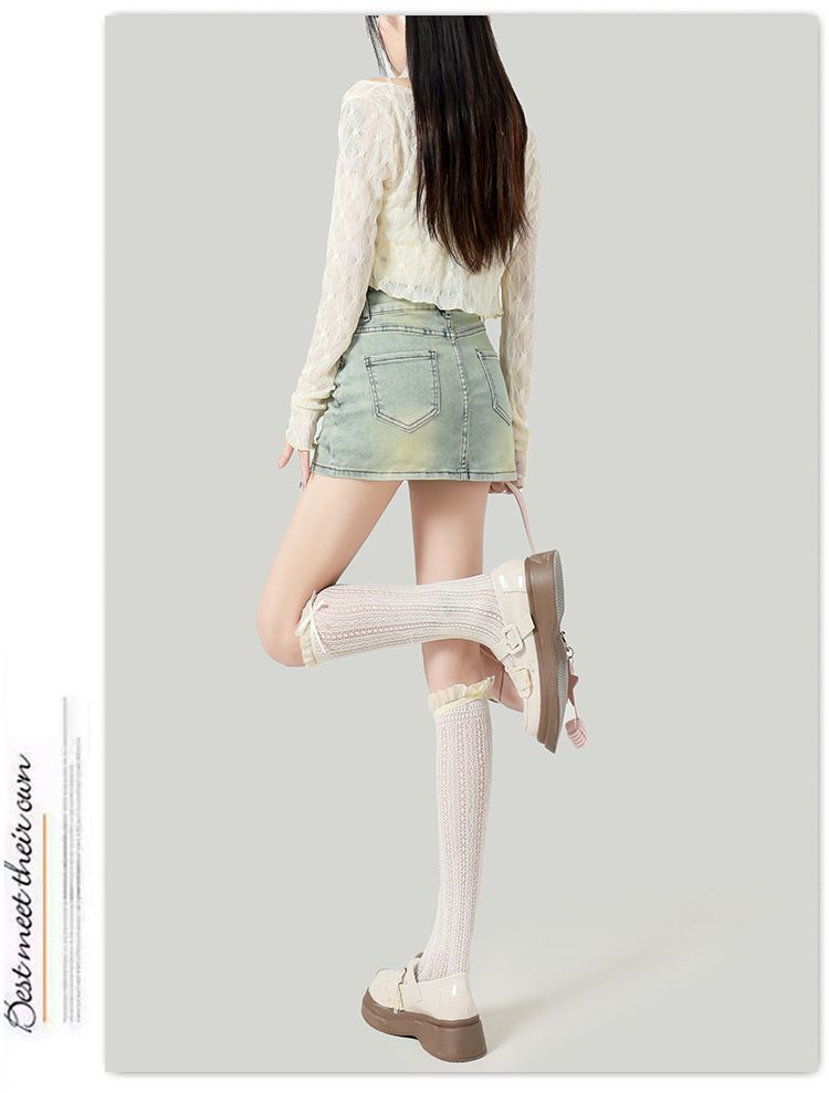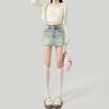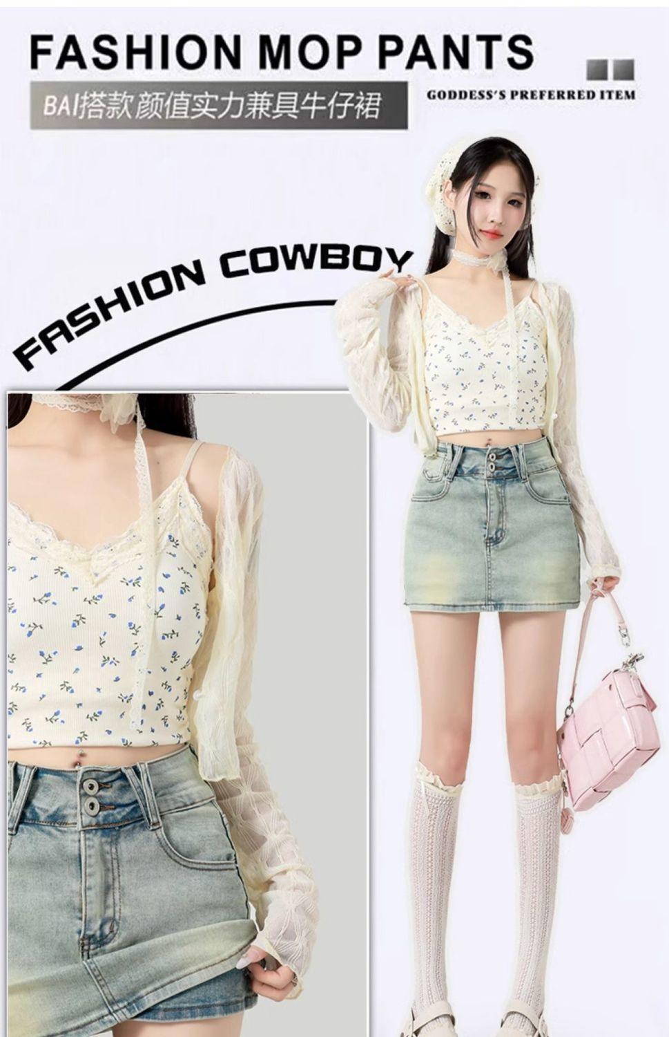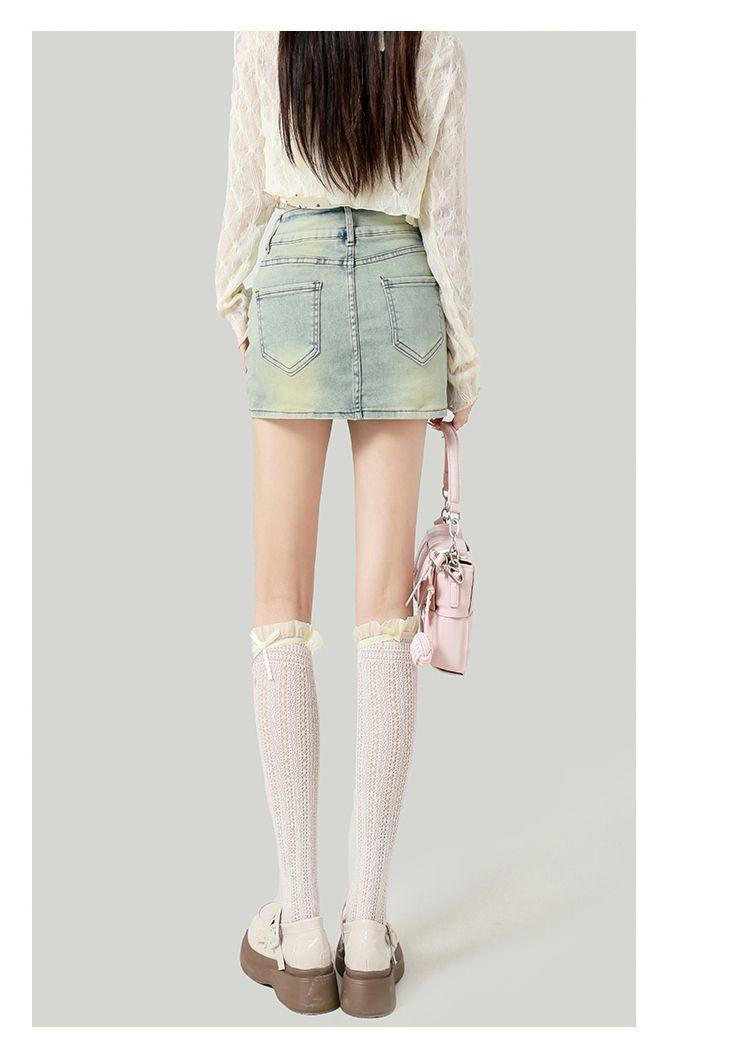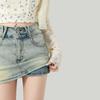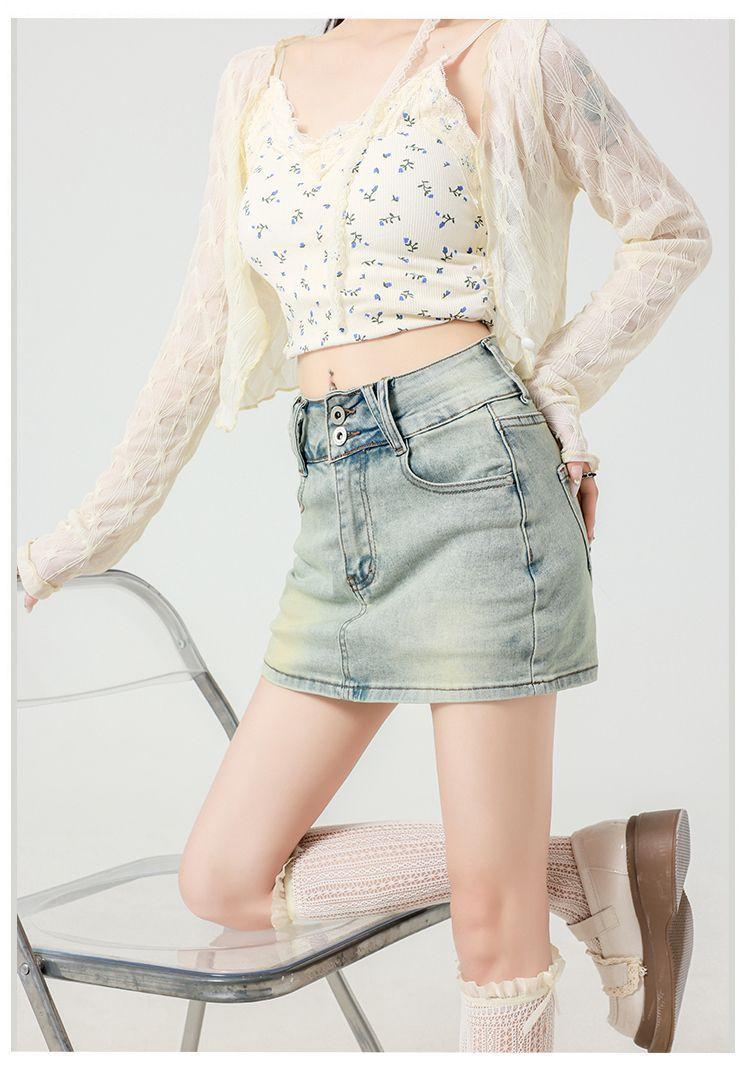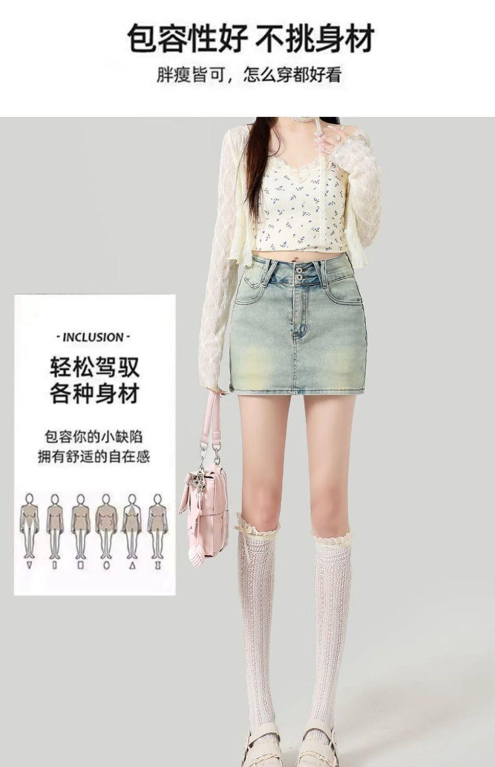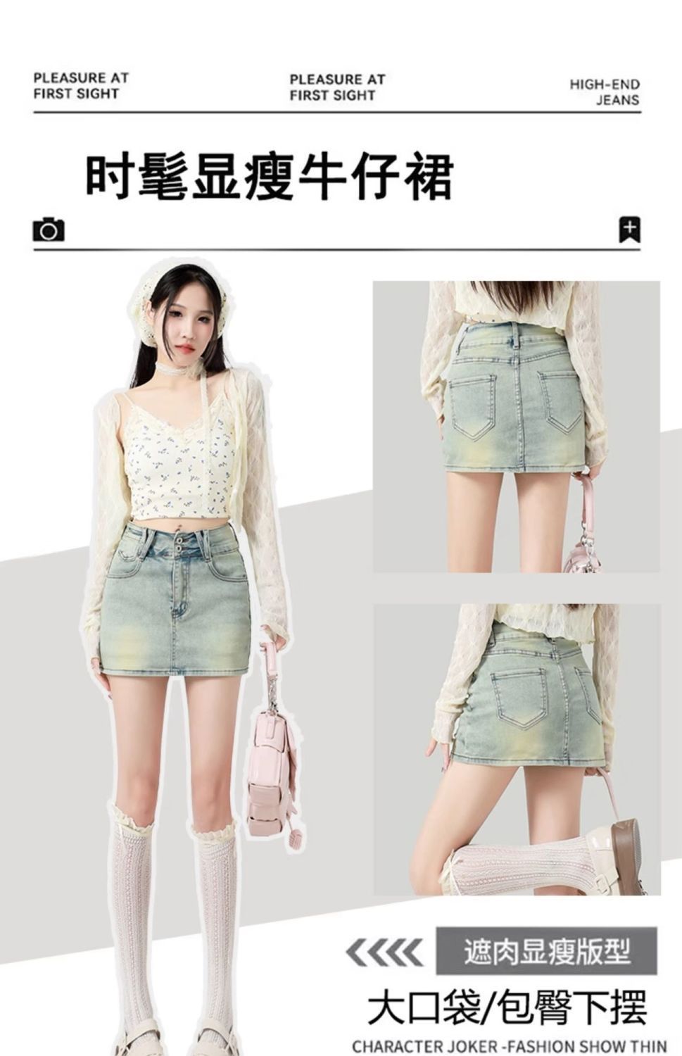 Falda de mezclilla azul claro para mujer 2025 verano nueva cintura alta delgada línea A moderna versátil ajustada a la cadera falda corta