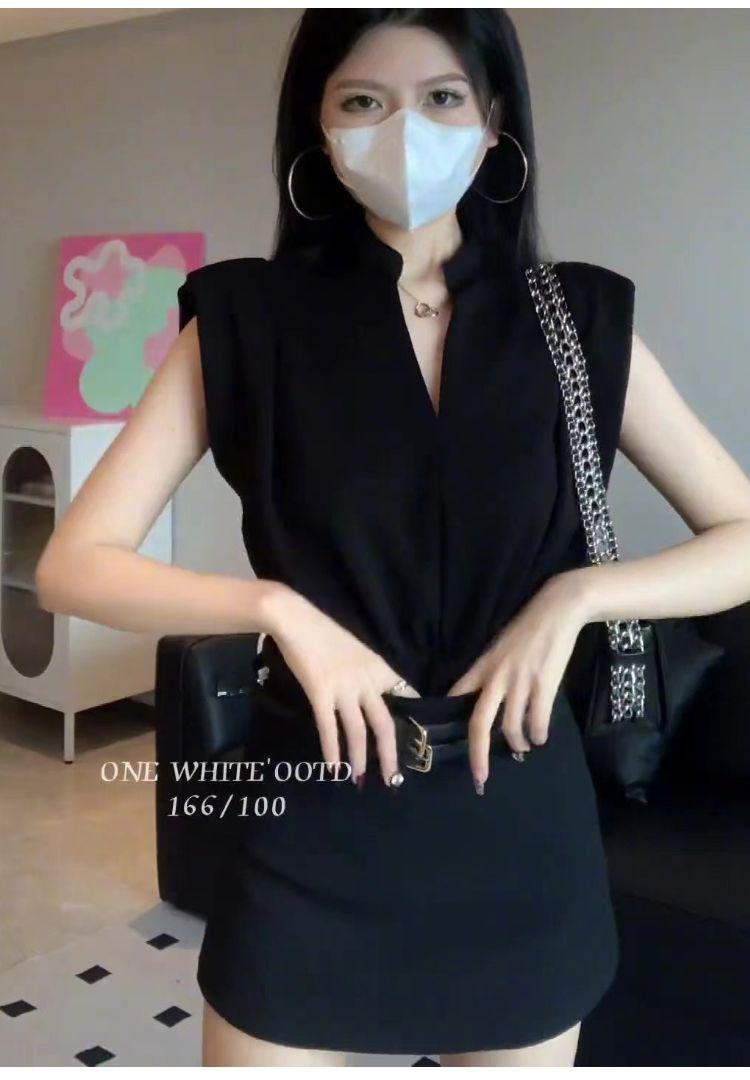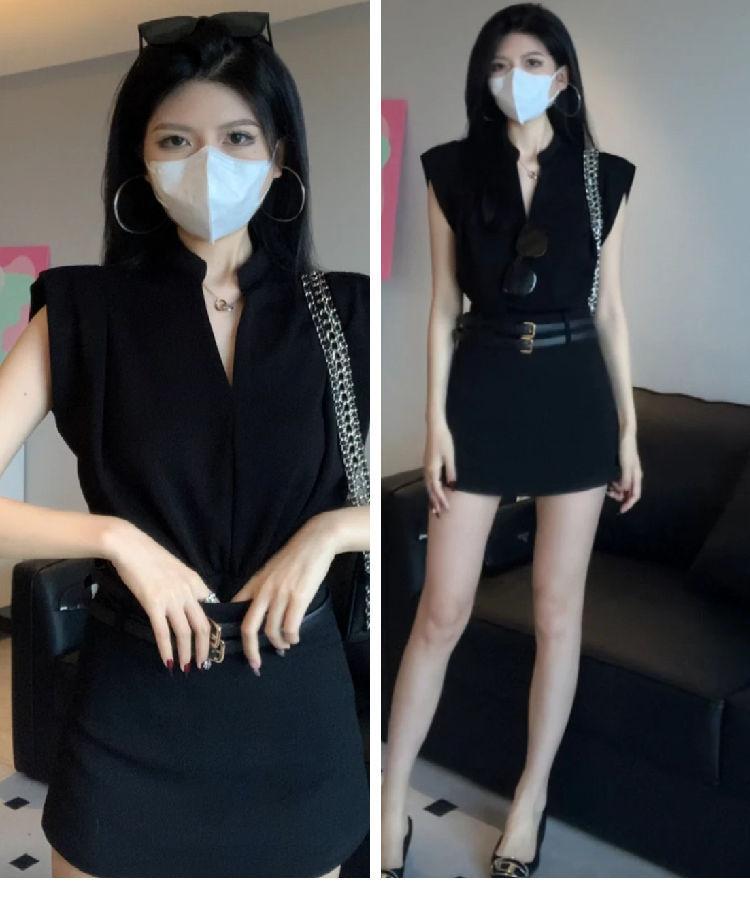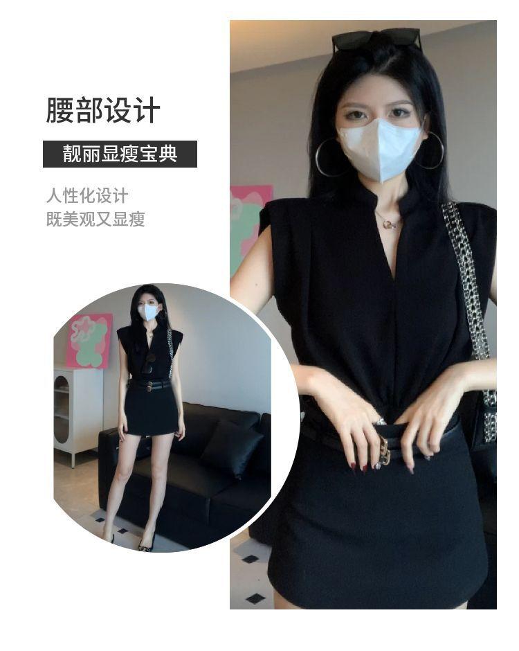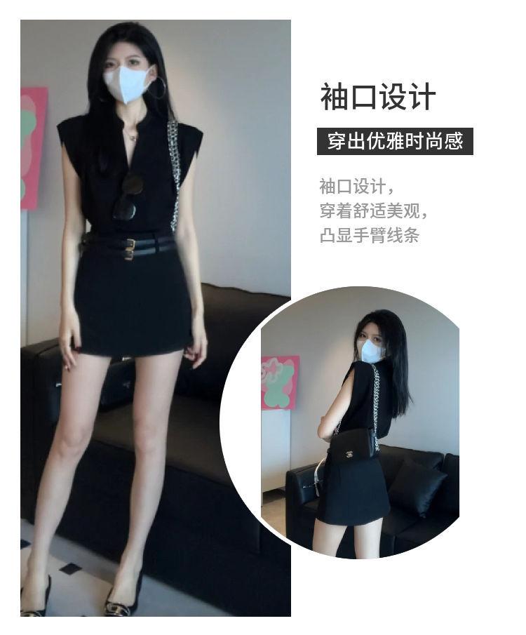 Estilo Diosa Temperamento Sin Mangas Cuello en V Camisa Top para Mujer Verano 2025 Nueva Moda Falda Corta Conjunto de Dos Piezas Trendy