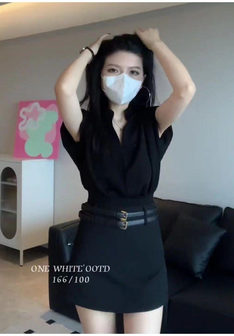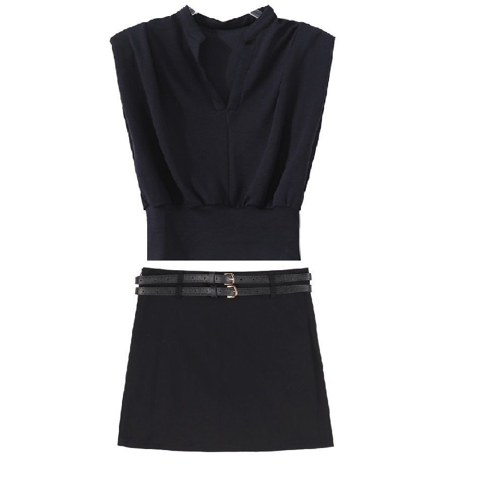 Black top (with shoulder pads), Black Mini Skirt (with Belt), Black Top + Short Skirt Set