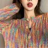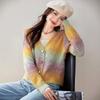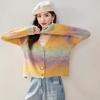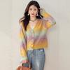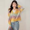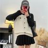 Cárdigan de Punto con Cuello en V y Bloques de Color para Mujer Otoño 2025 Nuevo Estilo Perezoso Color Té con Leche Abrigo de Punto Suave A6521
