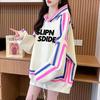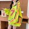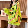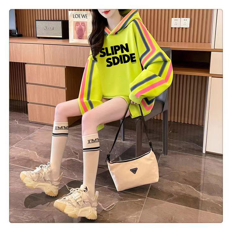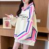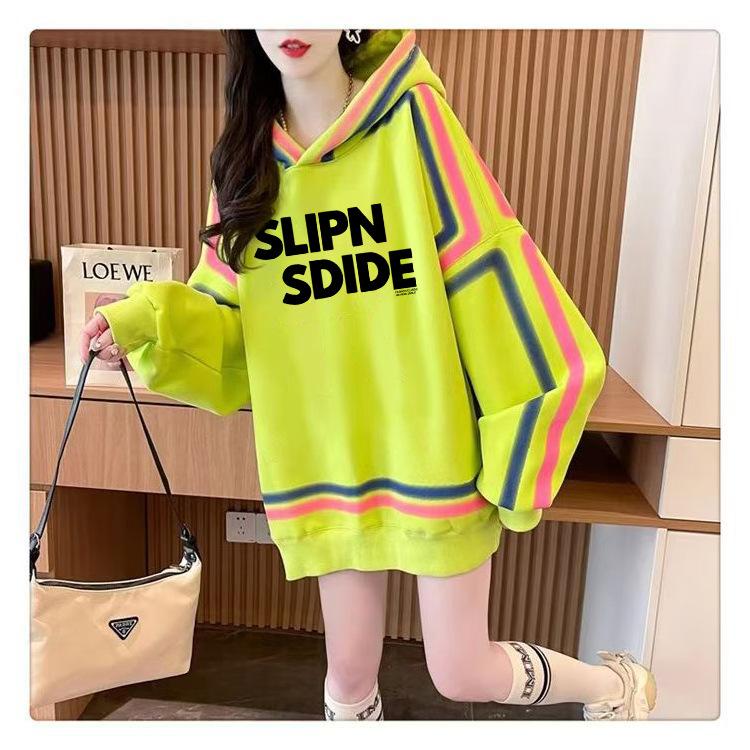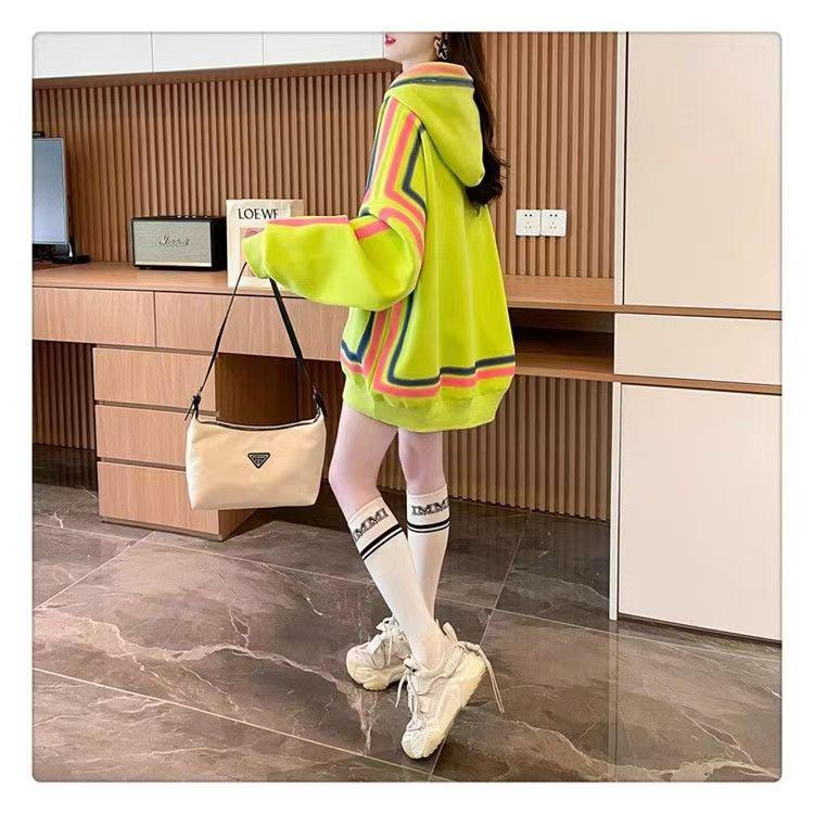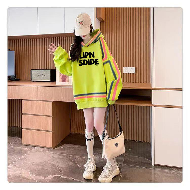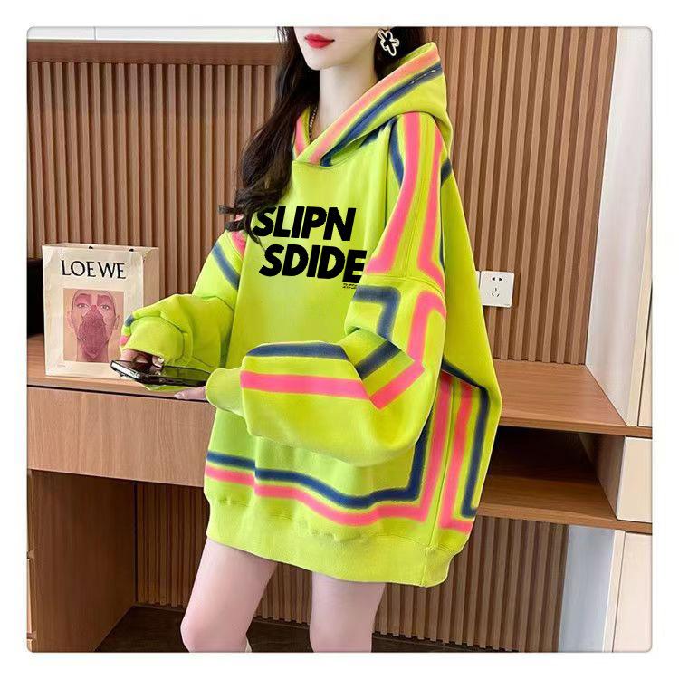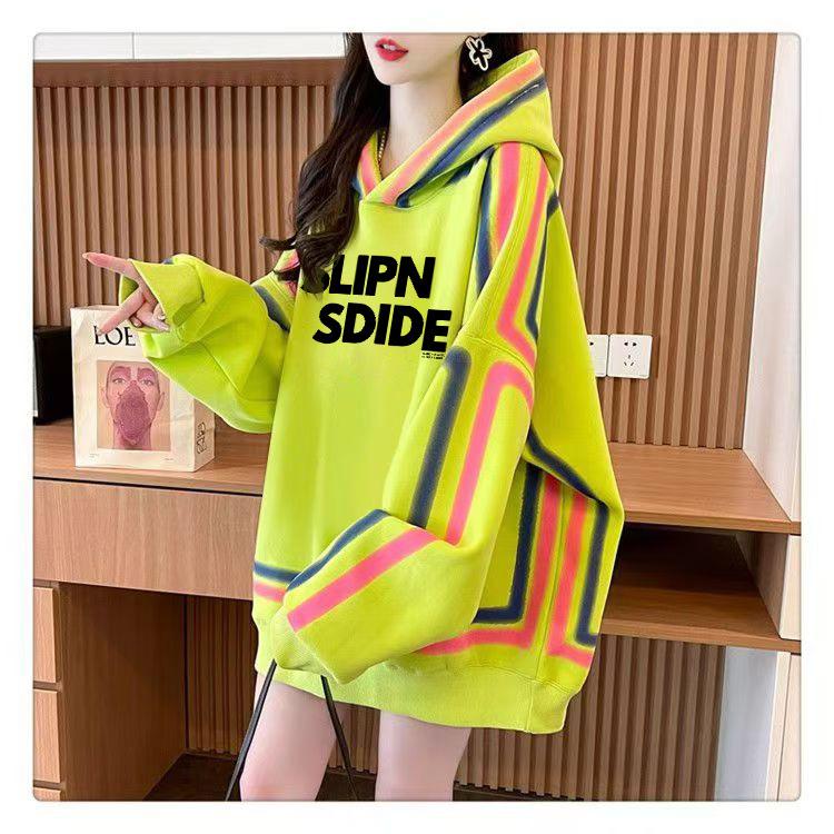 Sudadera con Capucha Gruesa con Forro Polar Estilo Holgazán con Estampado de Letras Otoño e Invierno Diseño de Líneas con Bloque de Color Estilo Japonés y Coreano