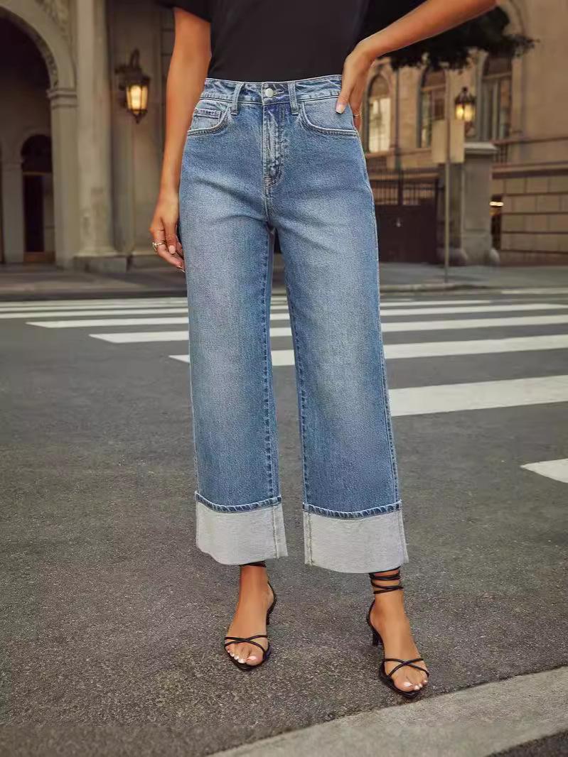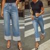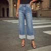 Jeans Europeos y Americanos para Mujer 2025 Nueva Moda Transfronteriza Distintiva Street Curl Pantalones Rectos Lavados Ma Ji Jeans