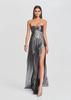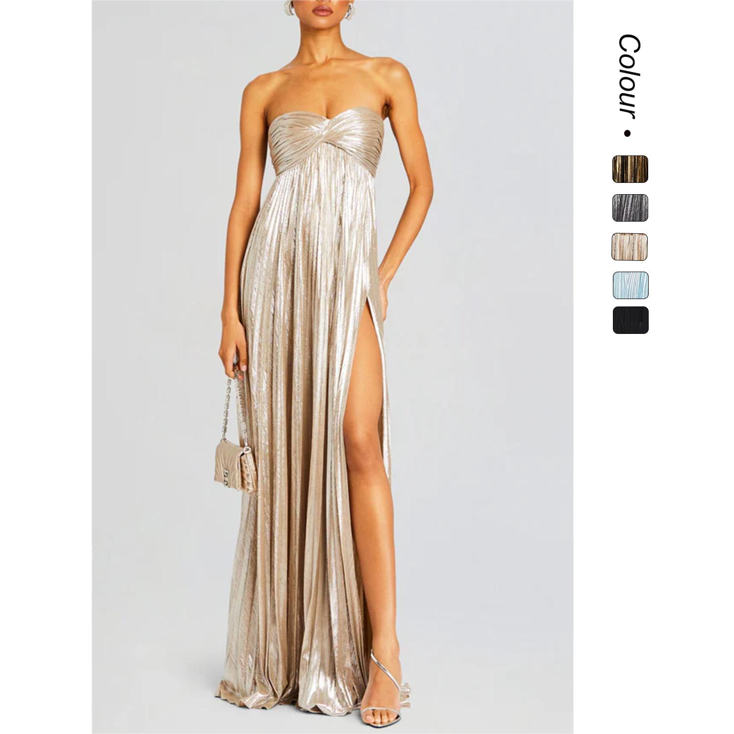 En stock 25 años estilo europeo y americano de verano vestido tubo textura atmosférica sexy abertura vestido de noche para mujer 68835
