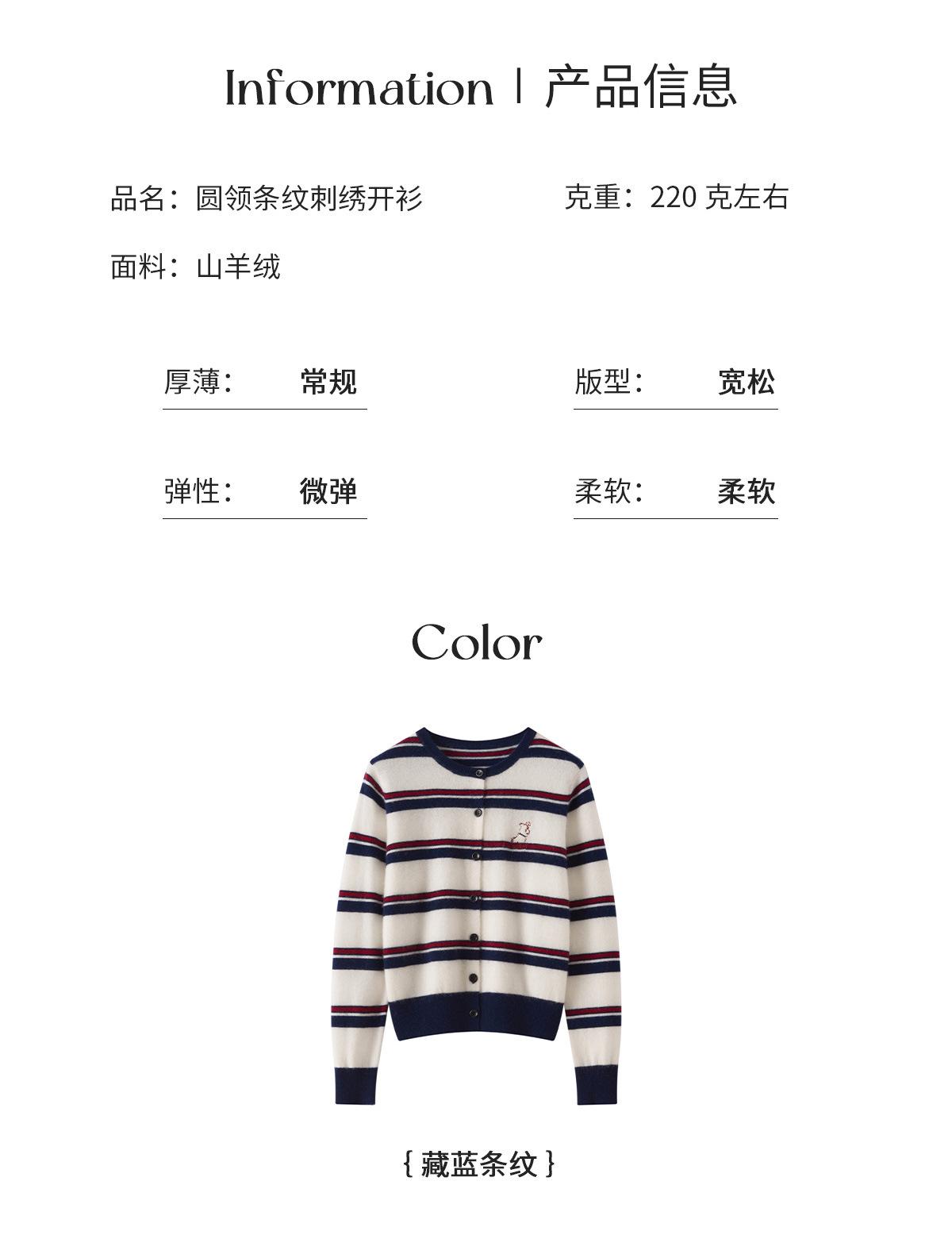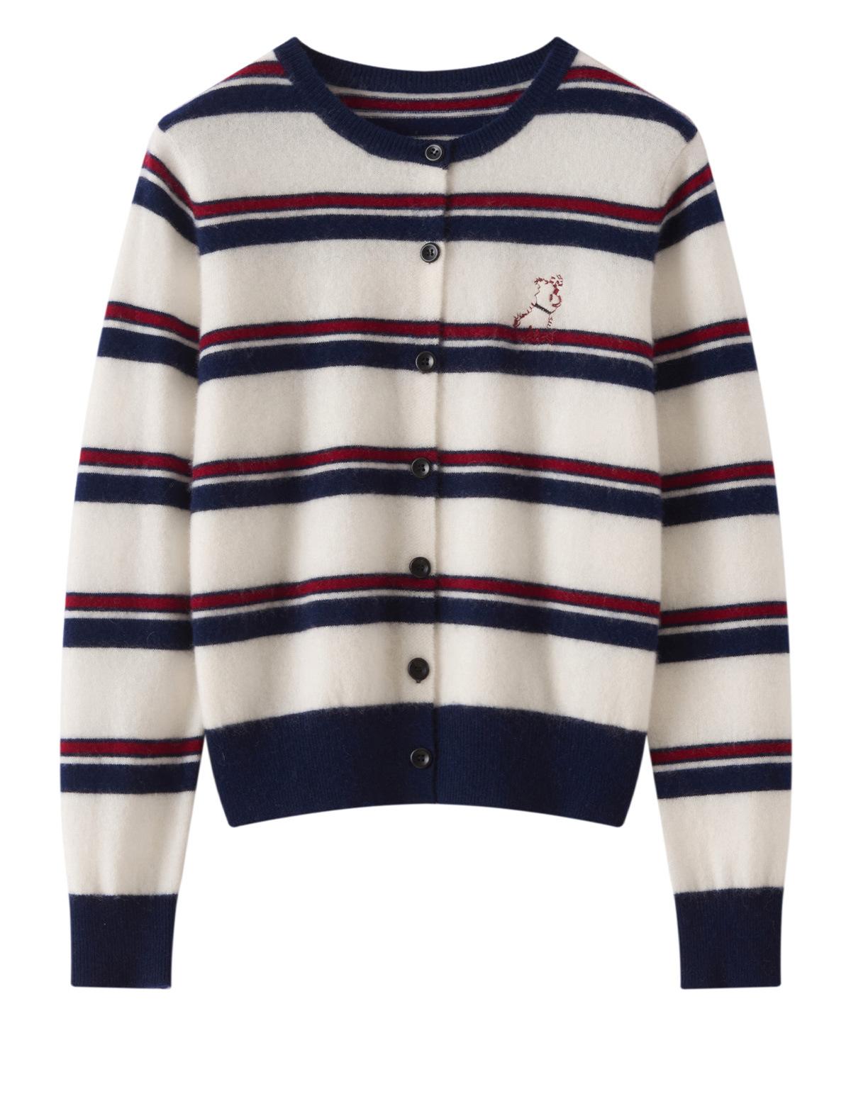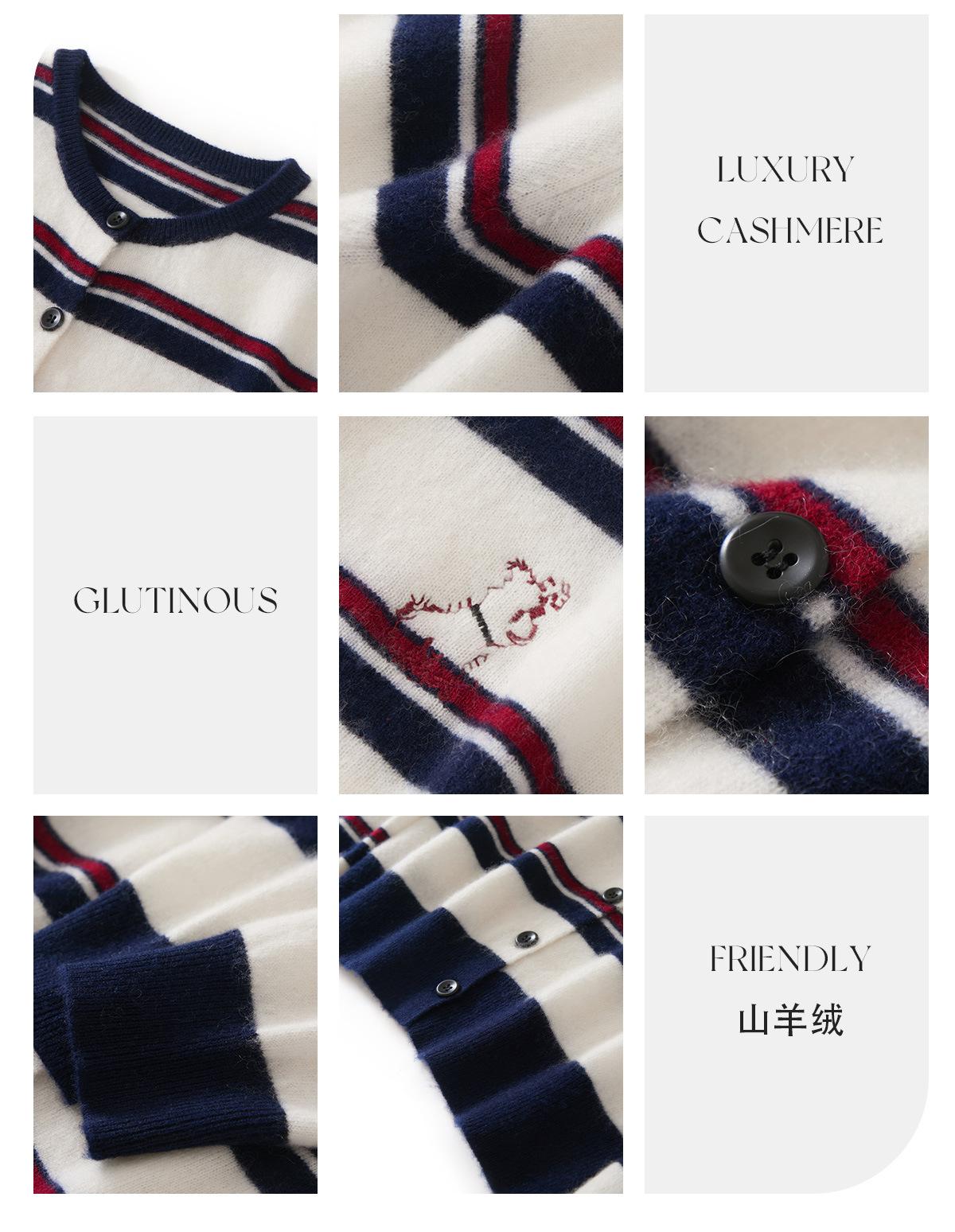 Cachemira Estilo Coreano Cachorro Bordado Rayado Suéter de Cuello Redondo Abrigo para Mujer Otoño/Invierno Capa Base Cárdigan de Punto Suave Holgado
