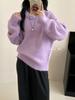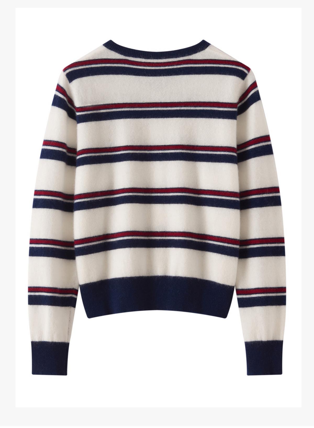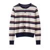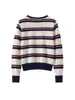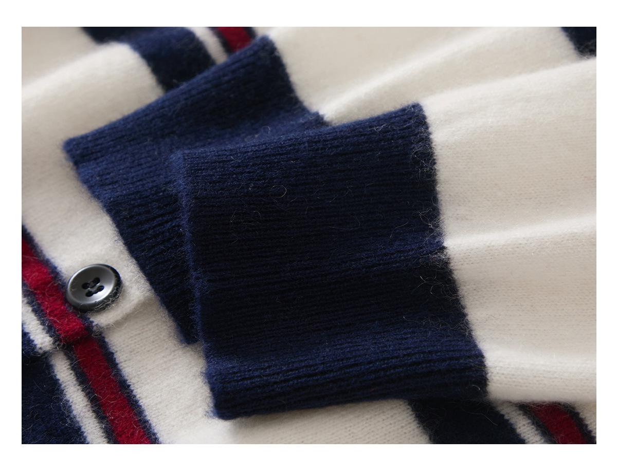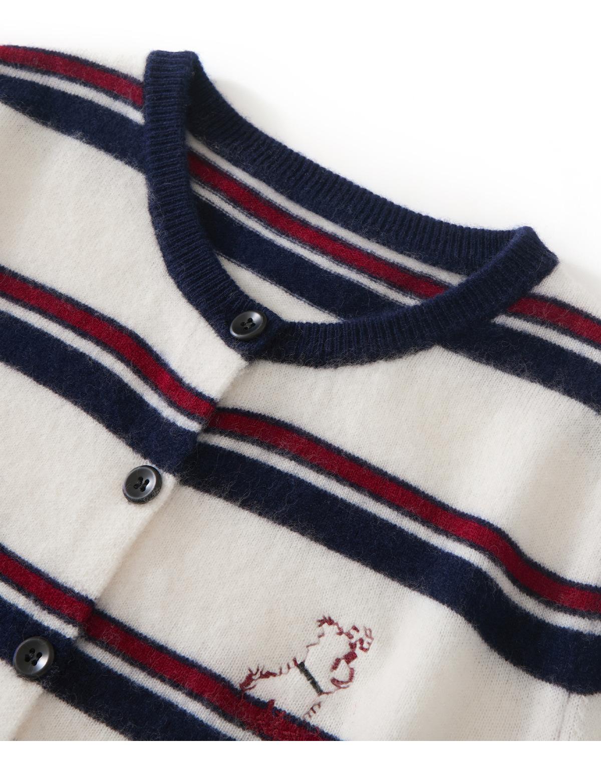 Cachemira Estilo Coreano Cachorro Bordado Rayado Suéter de Cuello Redondo Abrigo para Mujer Otoño/Invierno Capa Base Cárdigan de Punto Suave Holgado