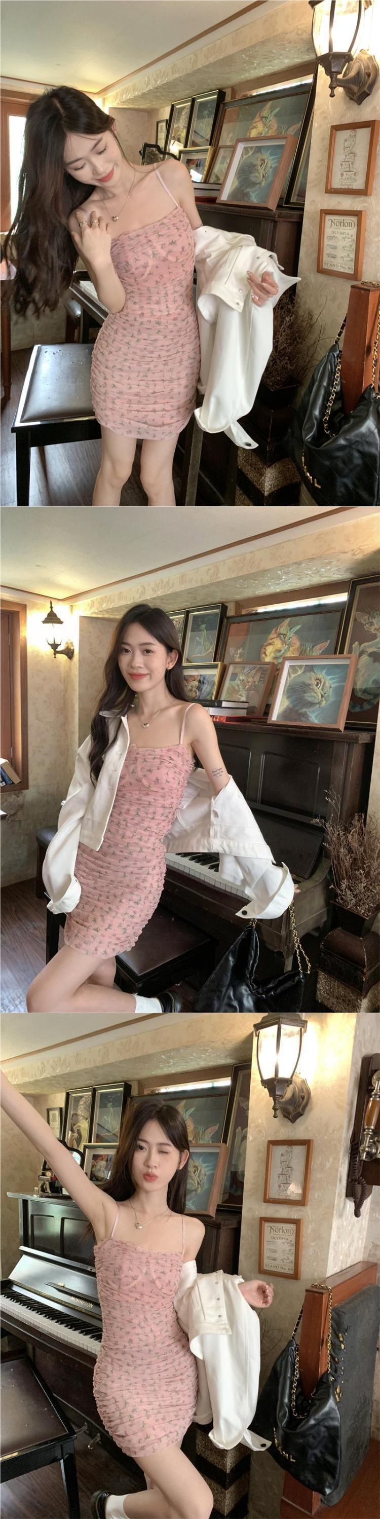 Vestido ajustado floral para mujer 2025 verano nuevo tendencia falda corta temperamento casual de moda estilo deseo puro sexy chica caliente
