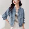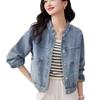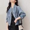 Chaqueta Corta de Mezclilla Lavada Retro Nueva de Primavera y Otoño 2025 para Mujer Moda Cuello Alto Manga Larga Recta Top Petite para Mujer