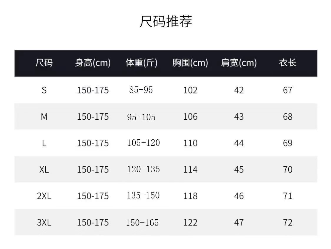 S Recommended 85-95, M Recommended 95-105, L Recommended 105-120, XL Recommended 120-135, 2XL Recommended 135-...