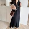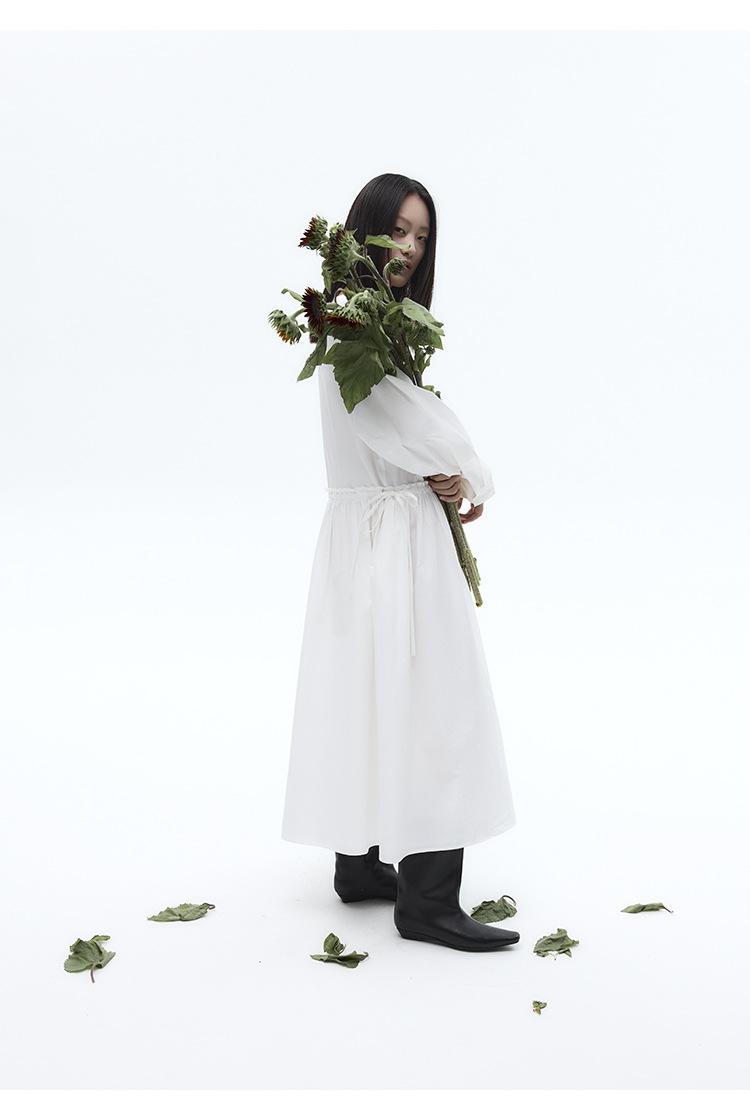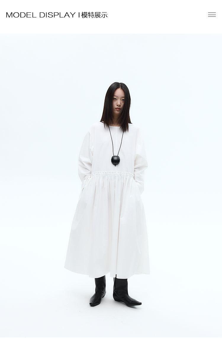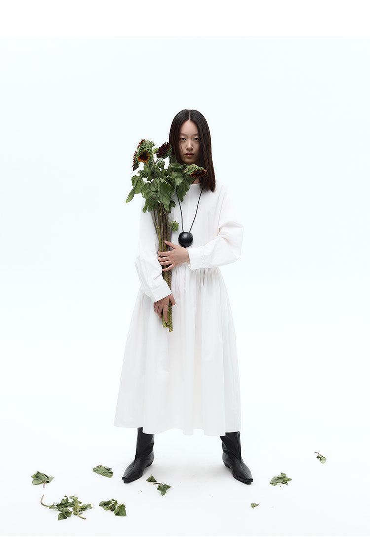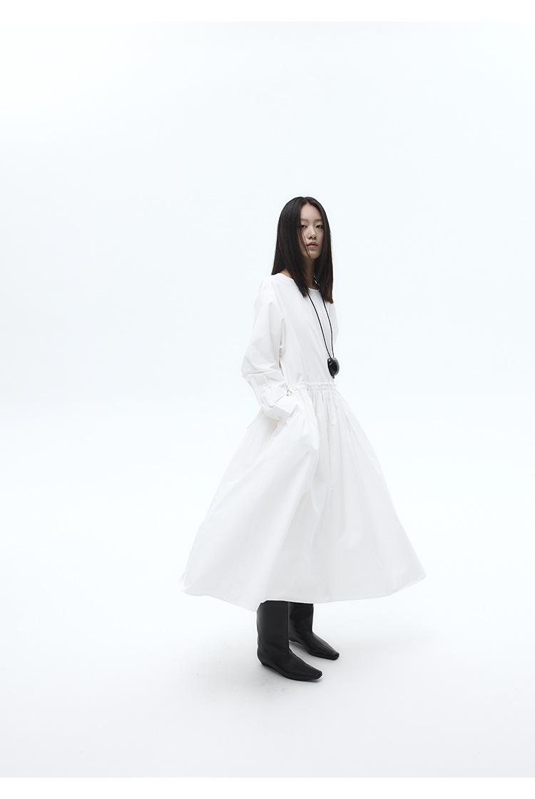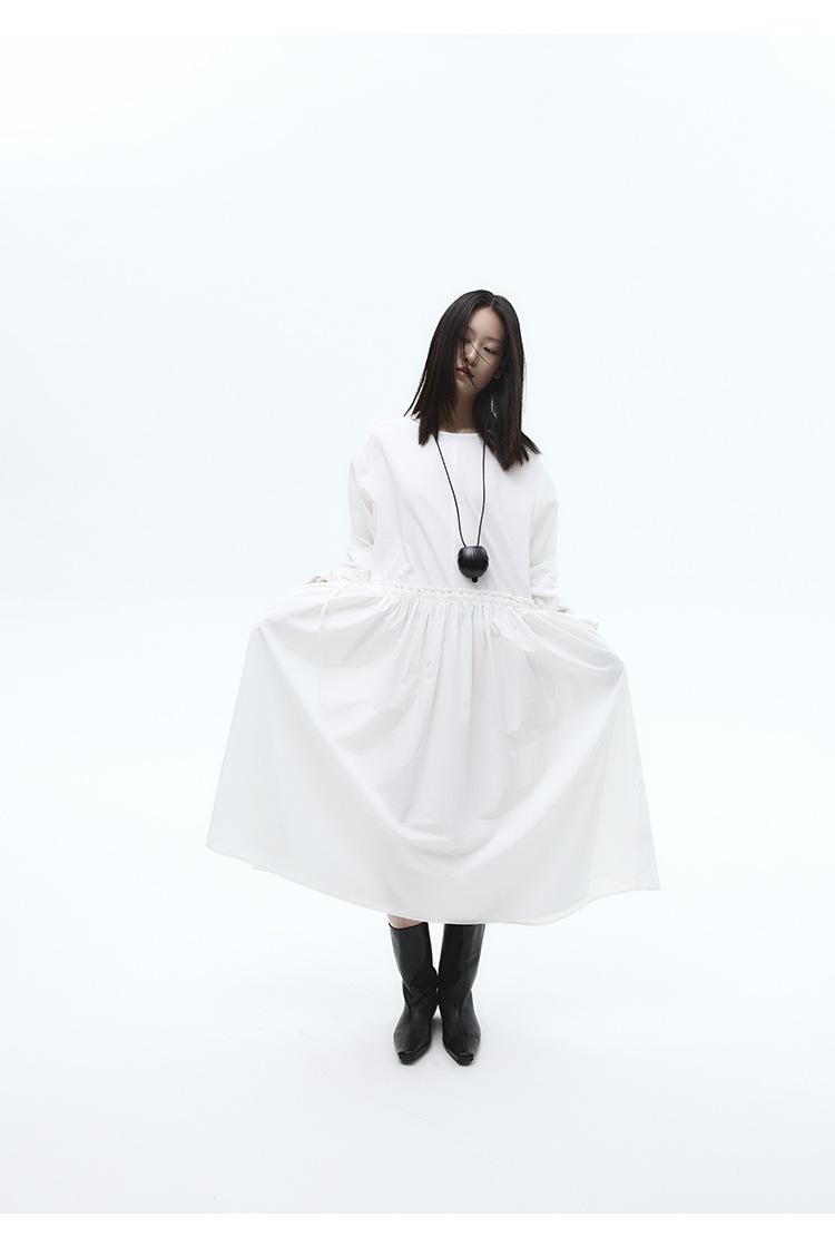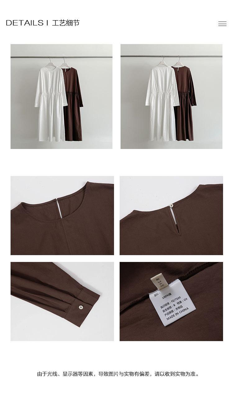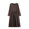 EVERTRUE 2025 Otoño Estilo Coreano Nuevo Vestido de Manga Larga Mujer Falda Midi Línea A Algodón Puro 62651