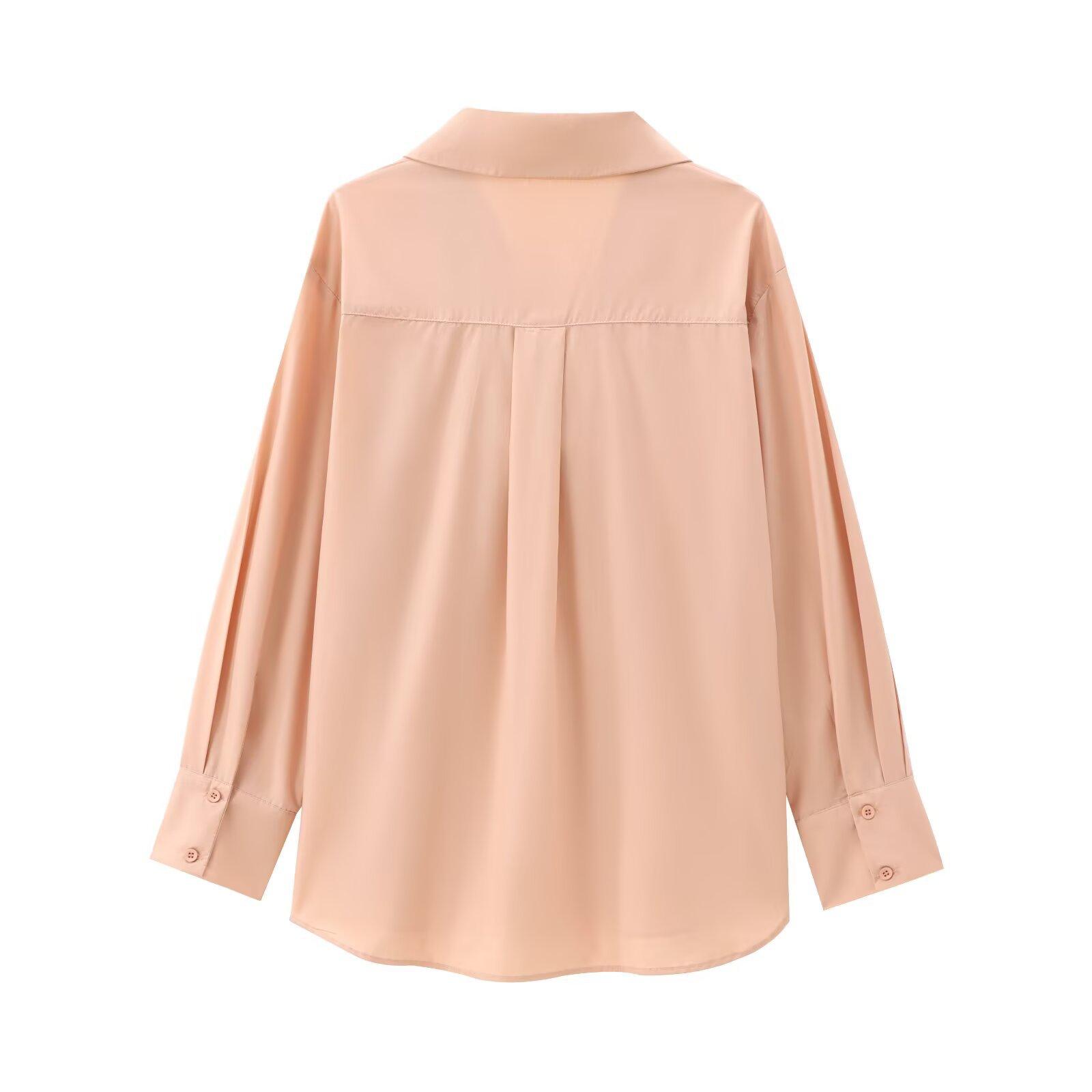 Otoño 2025 Nuevo Estilo Europeo y Americano Moda Versátil Casual Suelto Adelgazante Decoración de Bolsillo Camisa Popelina 0264999