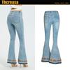 Jeans Acampanados para Mujer Europeos y Americanos Industria Pesada Estéreo 3D Bordado Jeans de Mujer Nuevos Pantalones de Mezclilla con Remaches para Mujer