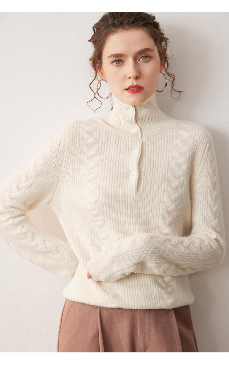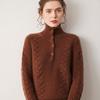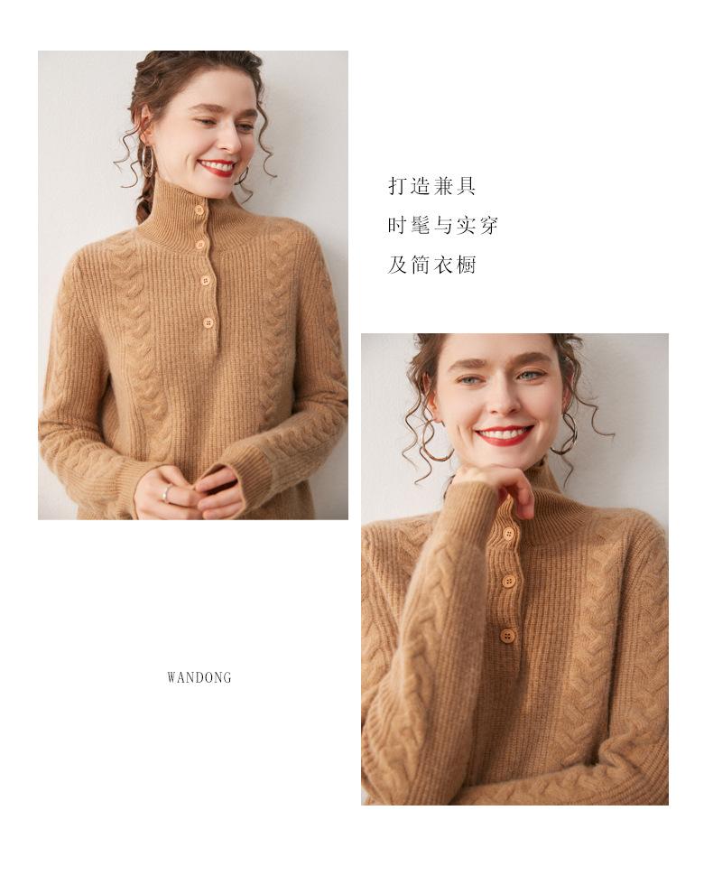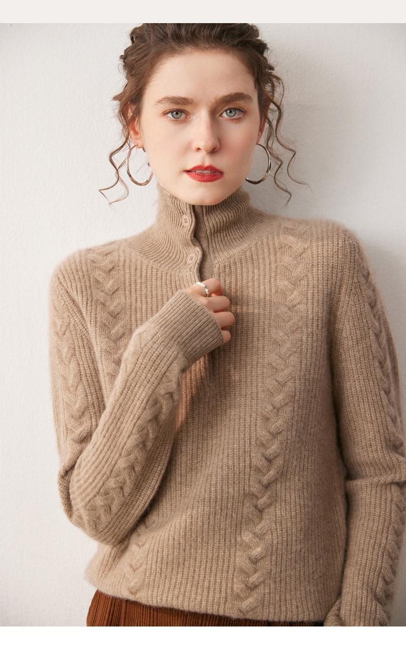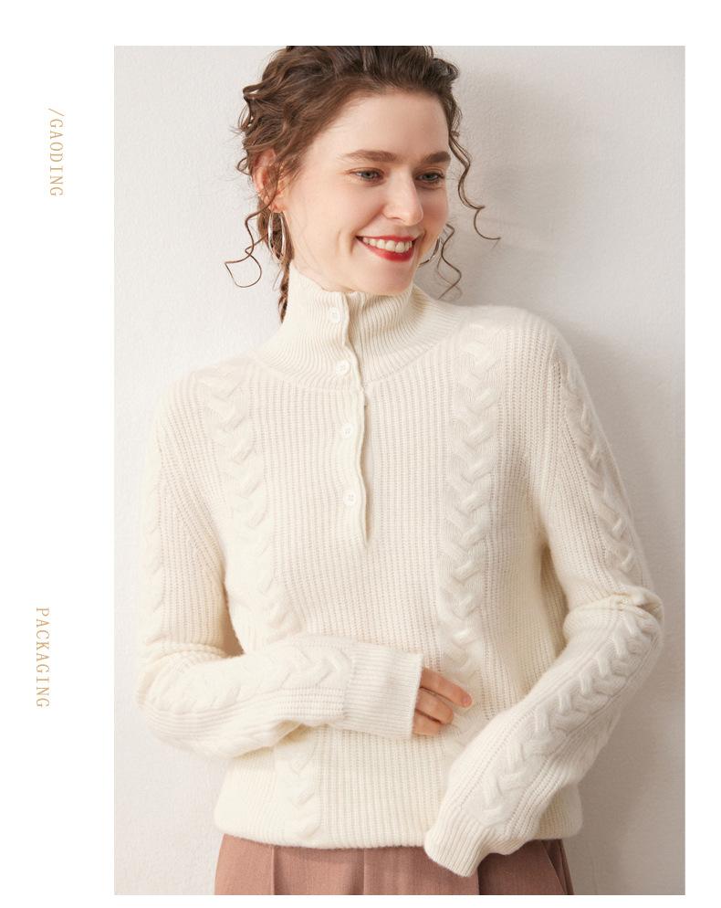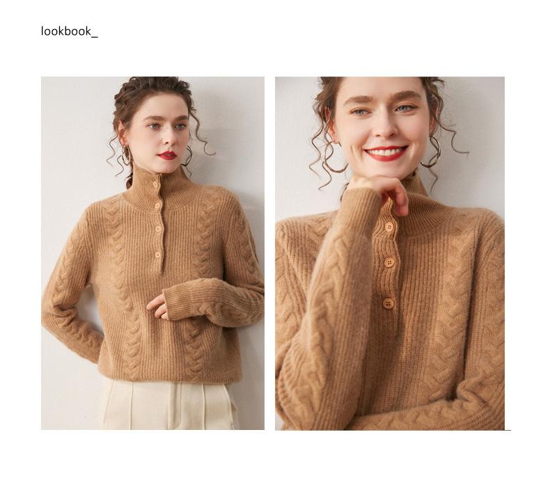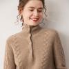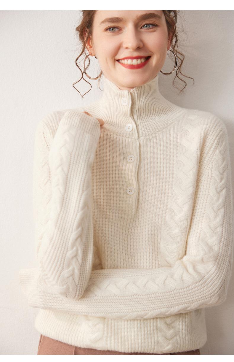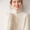Nueva Camiseta Base de Punto de Cachemira de Otoño e Invierno Holgada Adelgazante para Mujer Cuello Alto Punto de Cable Manga Larga Jersey Moda Femenina