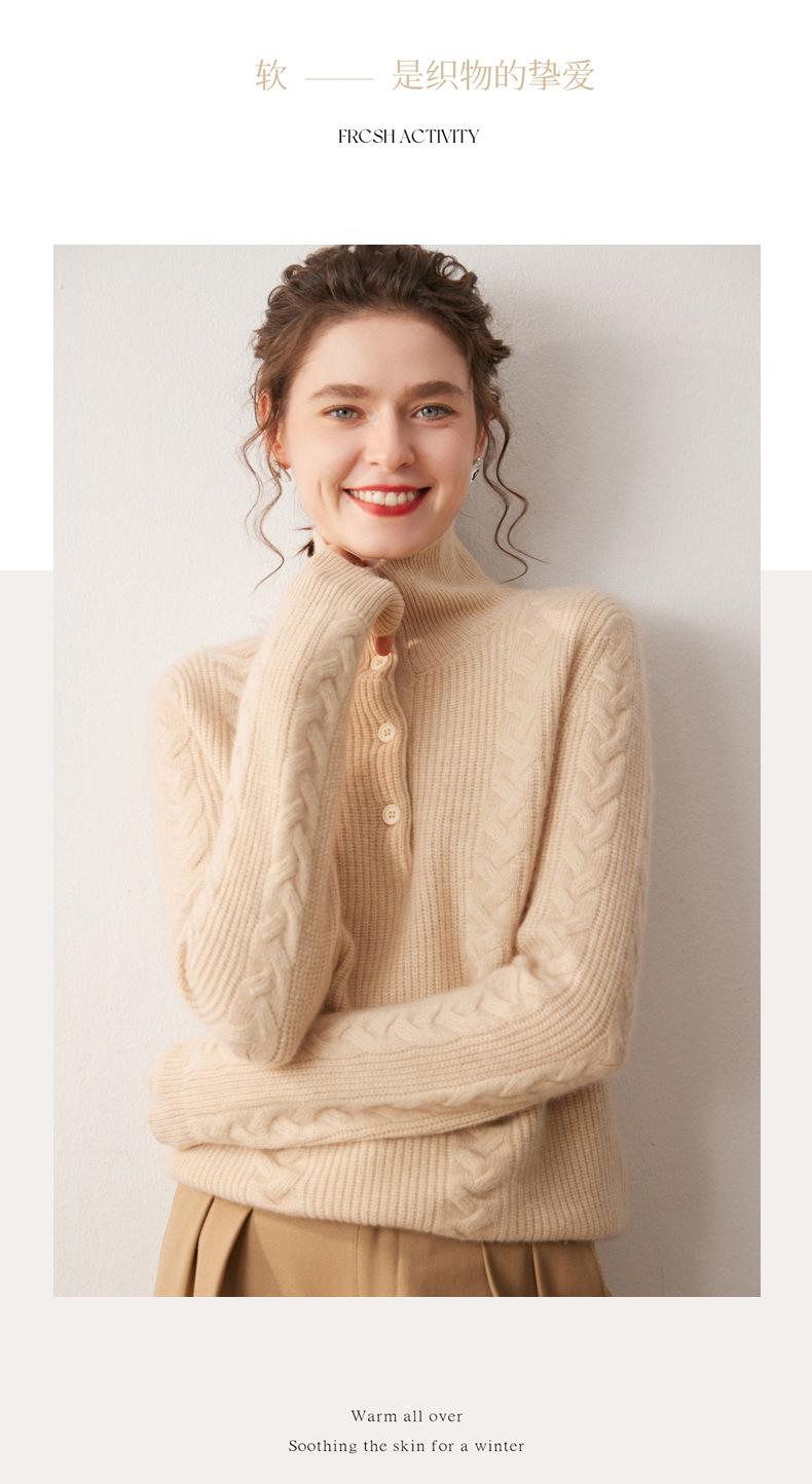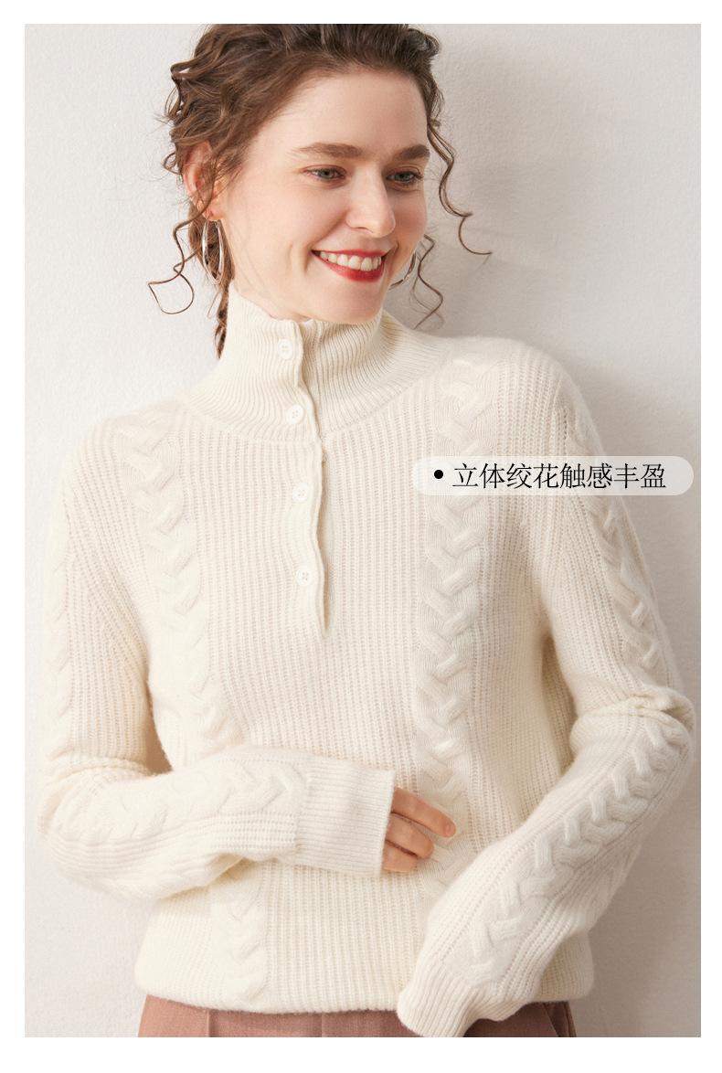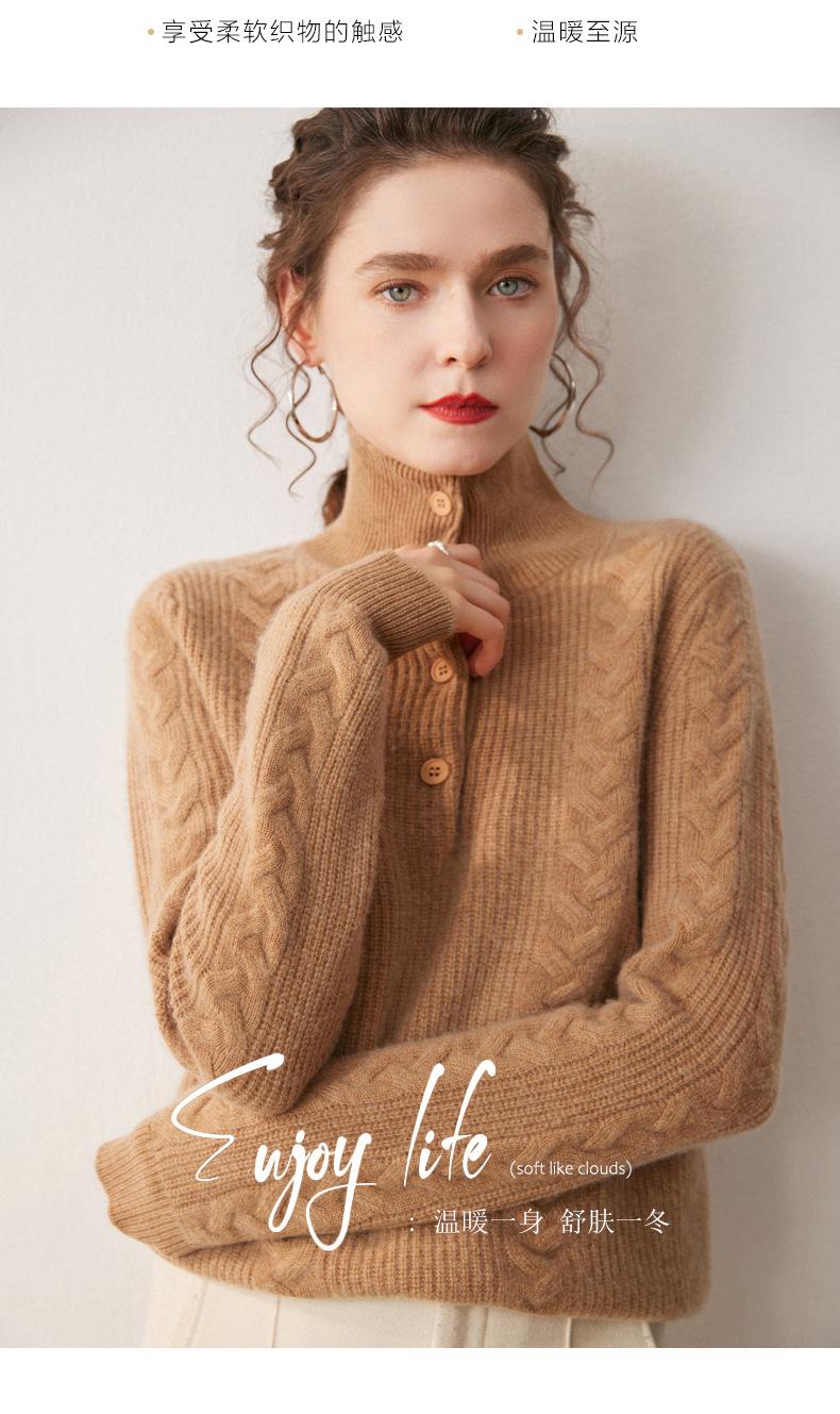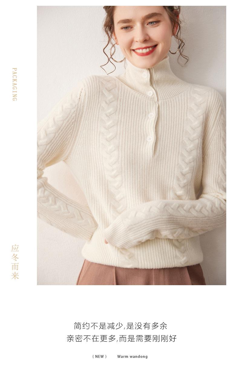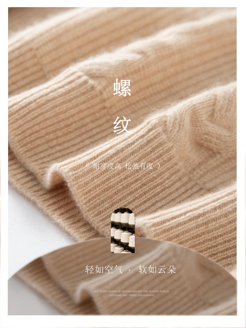 Nueva Camiseta Base de Punto de Cachemira de Otoño e Invierno Holgada Adelgazante para Mujer Cuello Alto Punto de Cable Manga Larga Jersey Moda Femenina