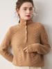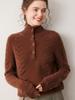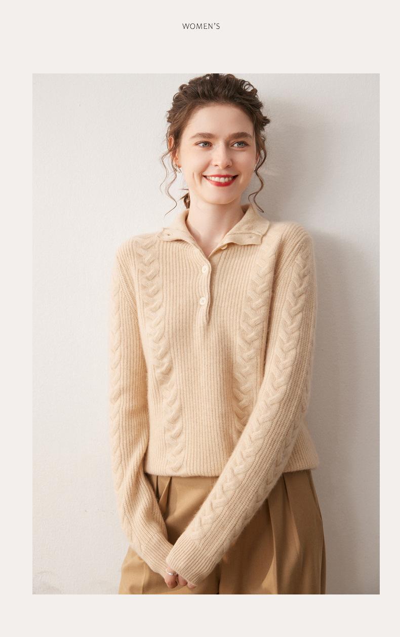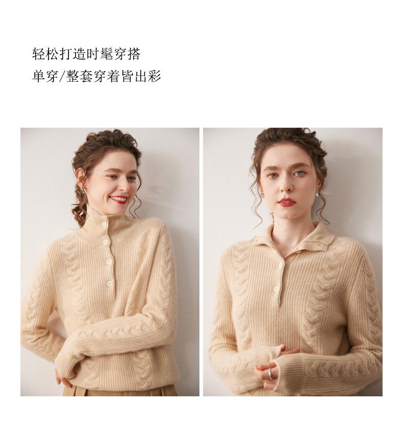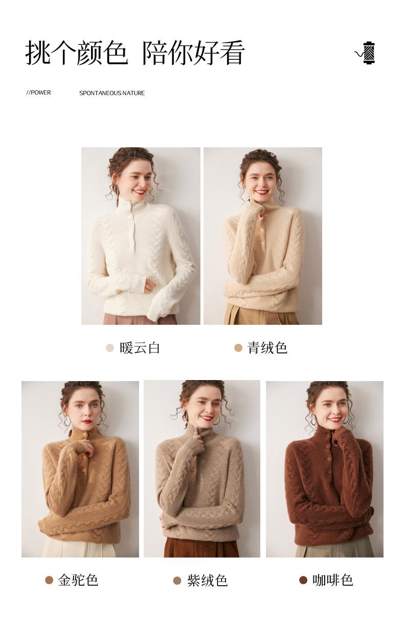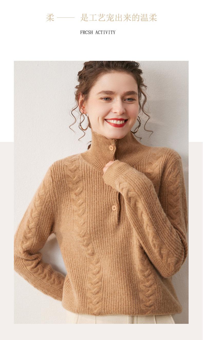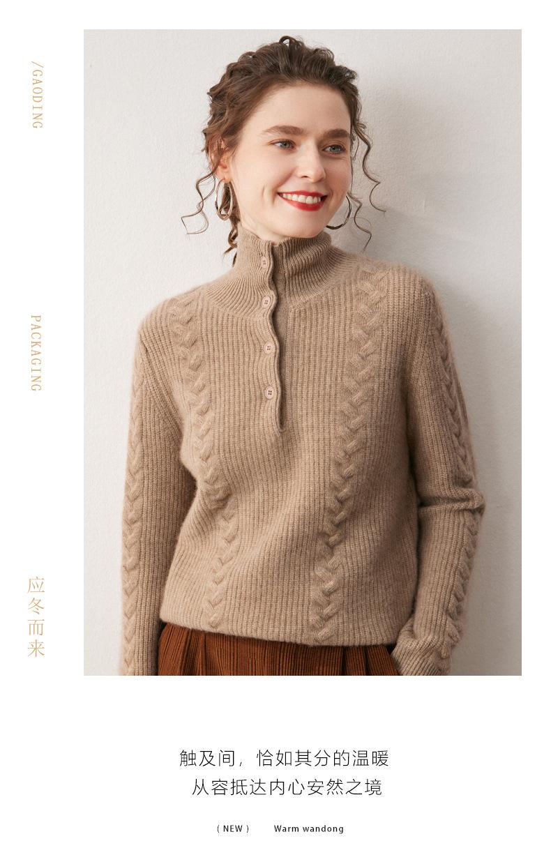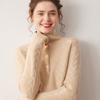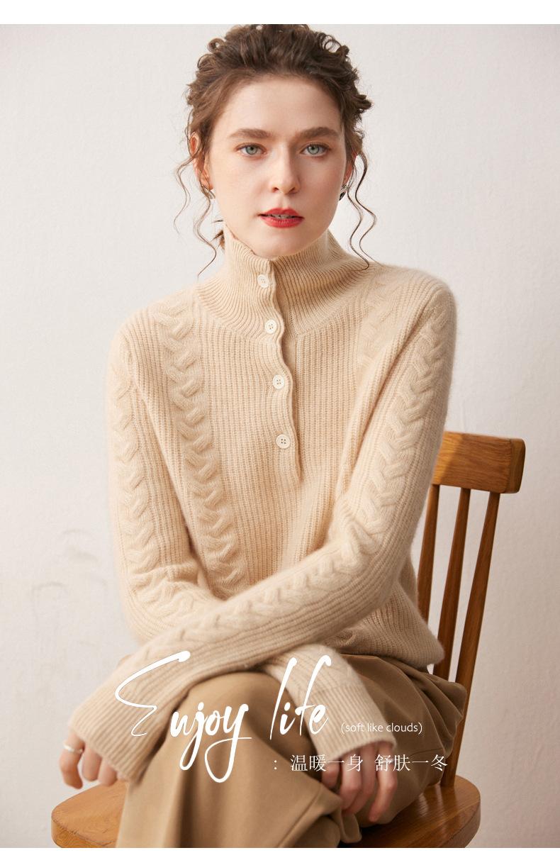 Nueva Camiseta Base de Punto de Cachemira de Otoño e Invierno Holgada Adelgazante para Mujer Cuello Alto Punto de Cable Manga Larga Jersey Moda Femenina