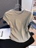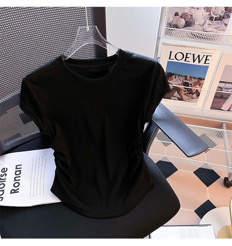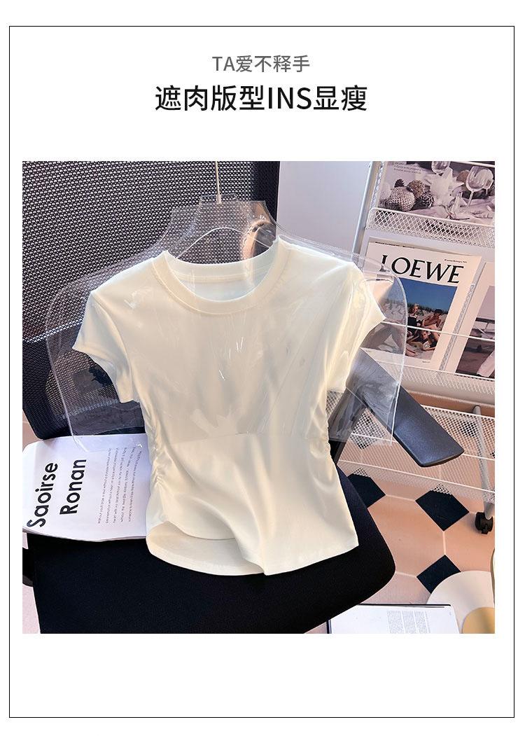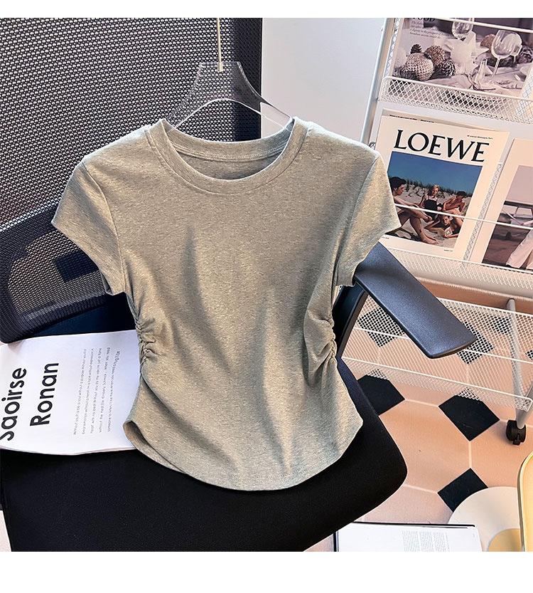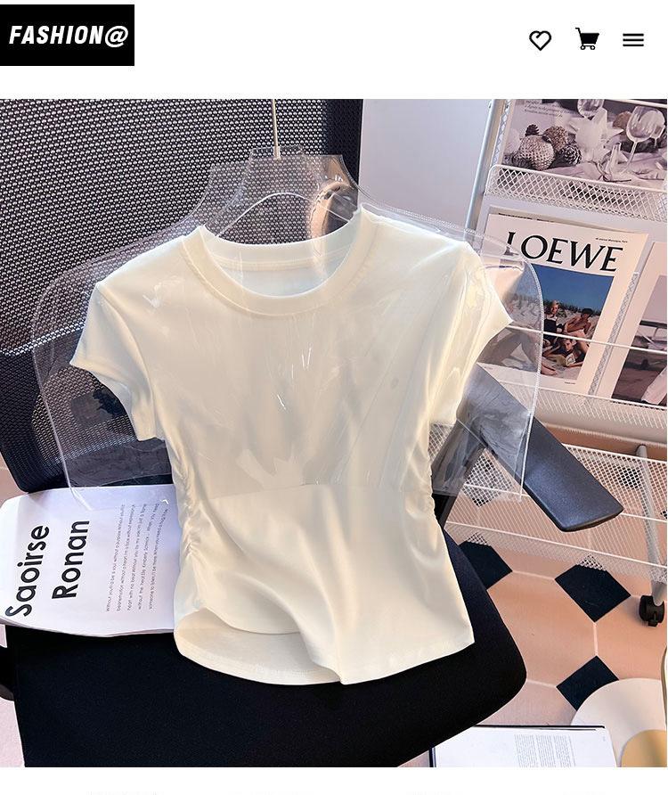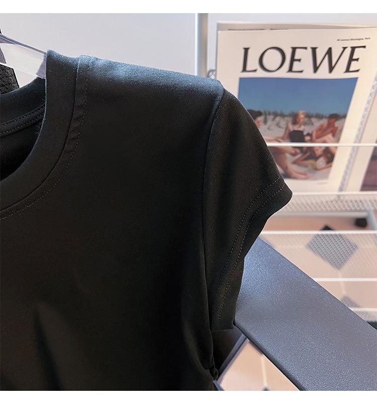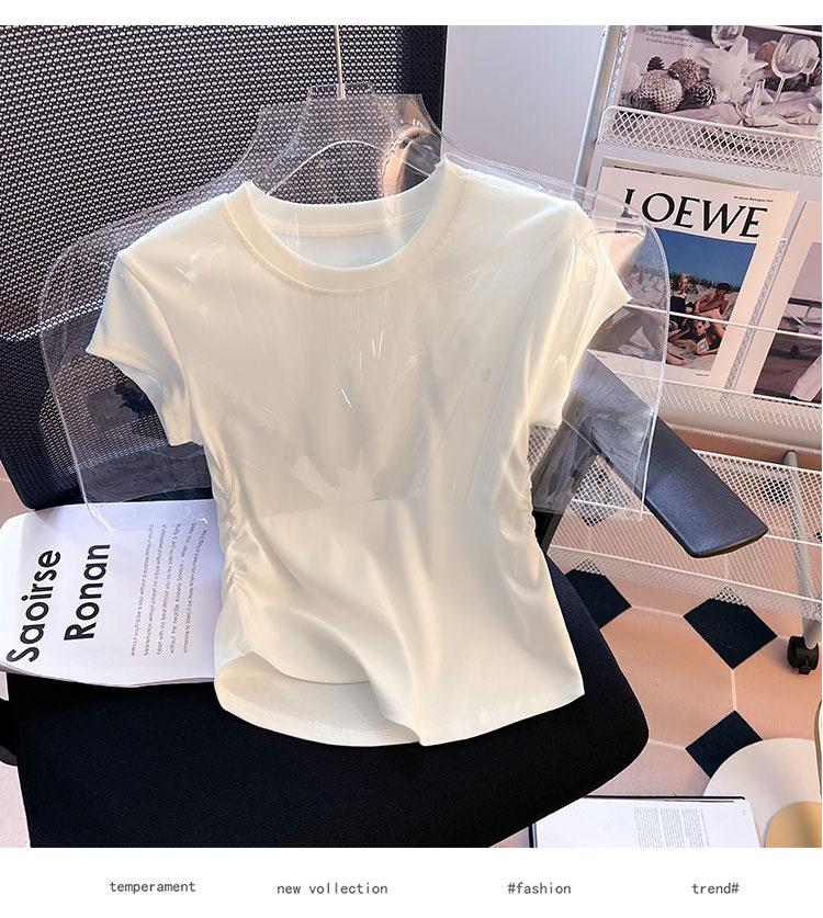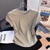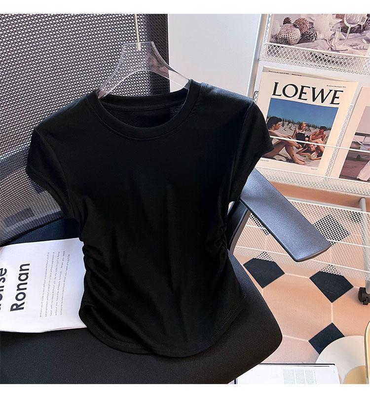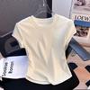 Compra Camiseta de Algodón Puro para Mujer con Hombro Derecho Descubierto Verano 2025 Nueva Camiseta Básica de Cuello Redondo Chic Color Puro Dulce Hottie Manga Corta Top a la Cintura al por mayor en Joom.pro