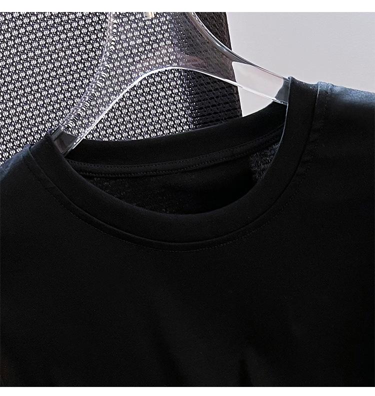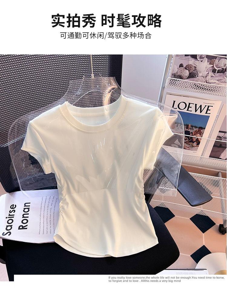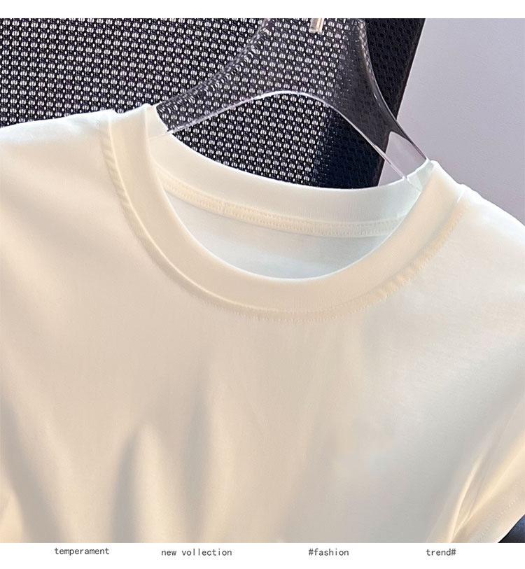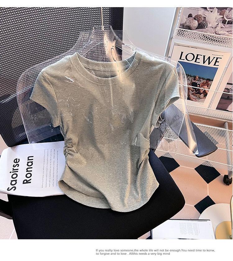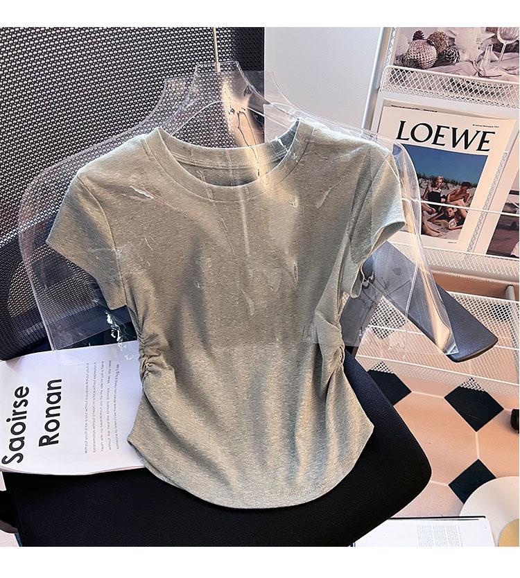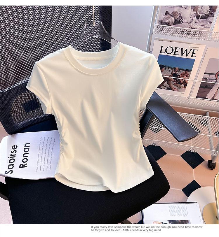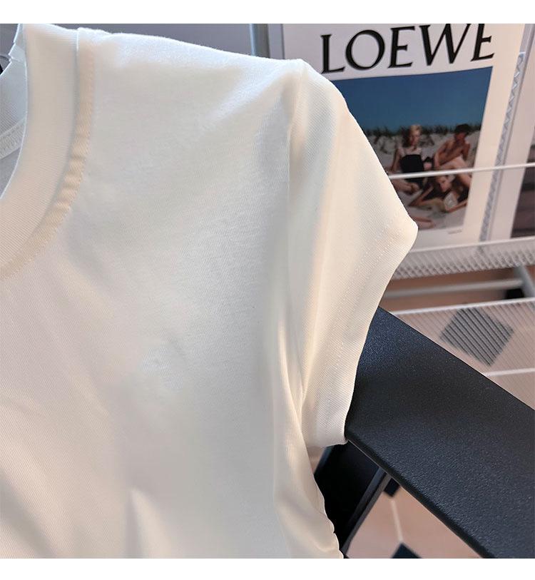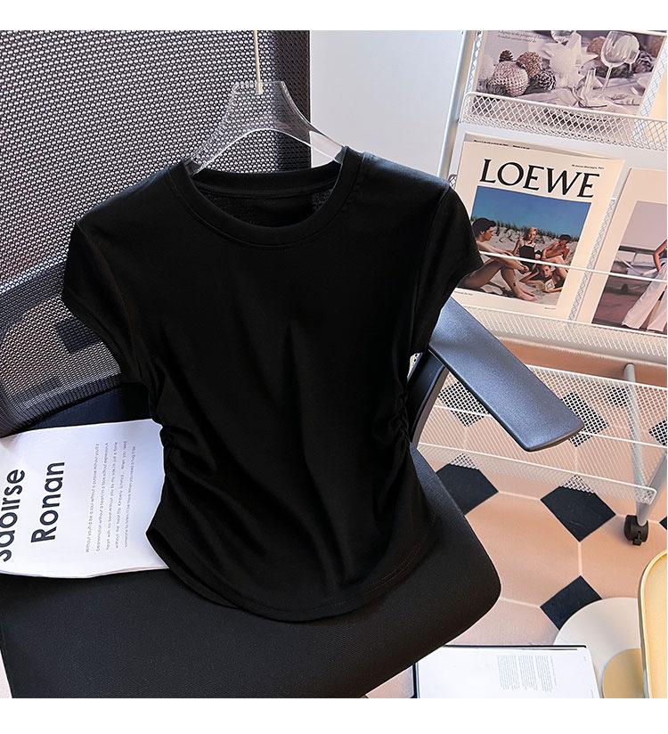 Compra Camiseta de Algodón Puro para Mujer con Hombro Derecho Descubierto Verano 2025 Nueva Camiseta Básica de Cuello Redondo Chic Color Puro Dulce Hottie Manga Corta Top a la Cintura al por mayor en Joom.pro