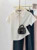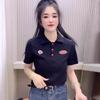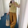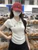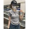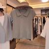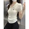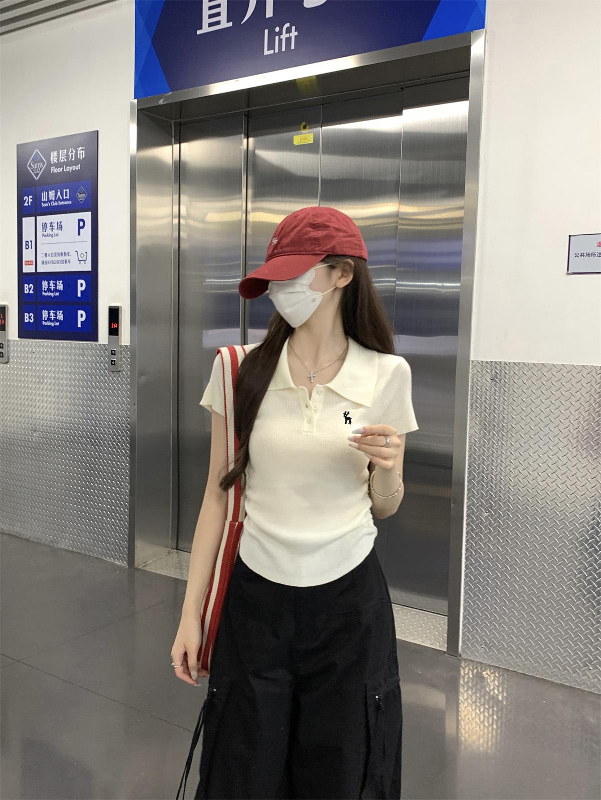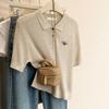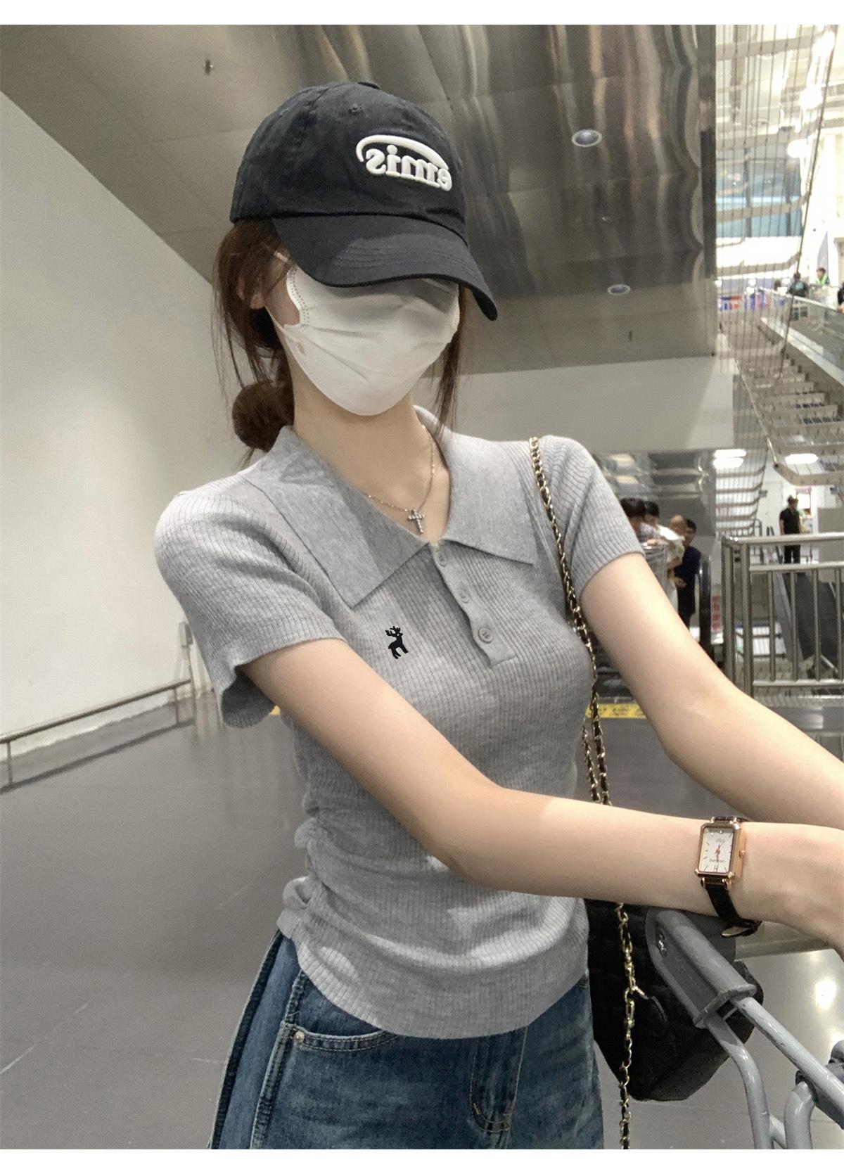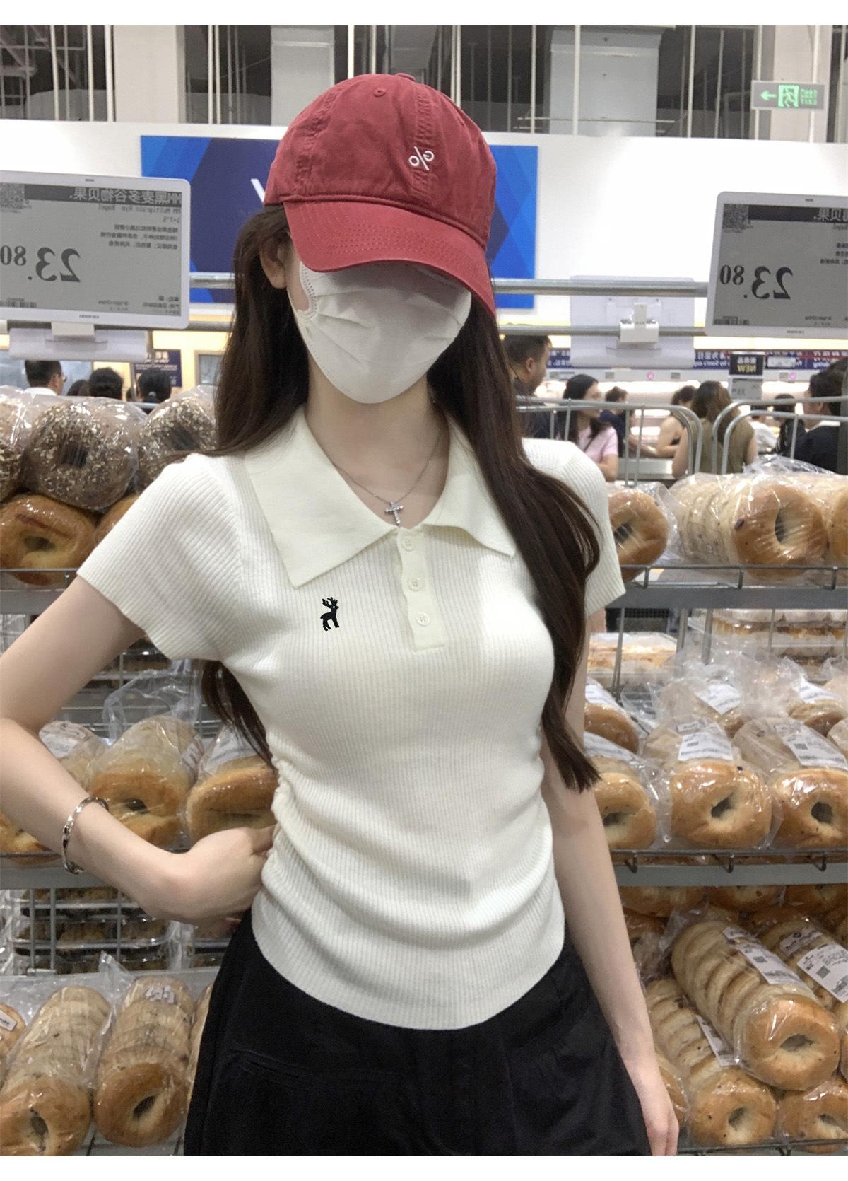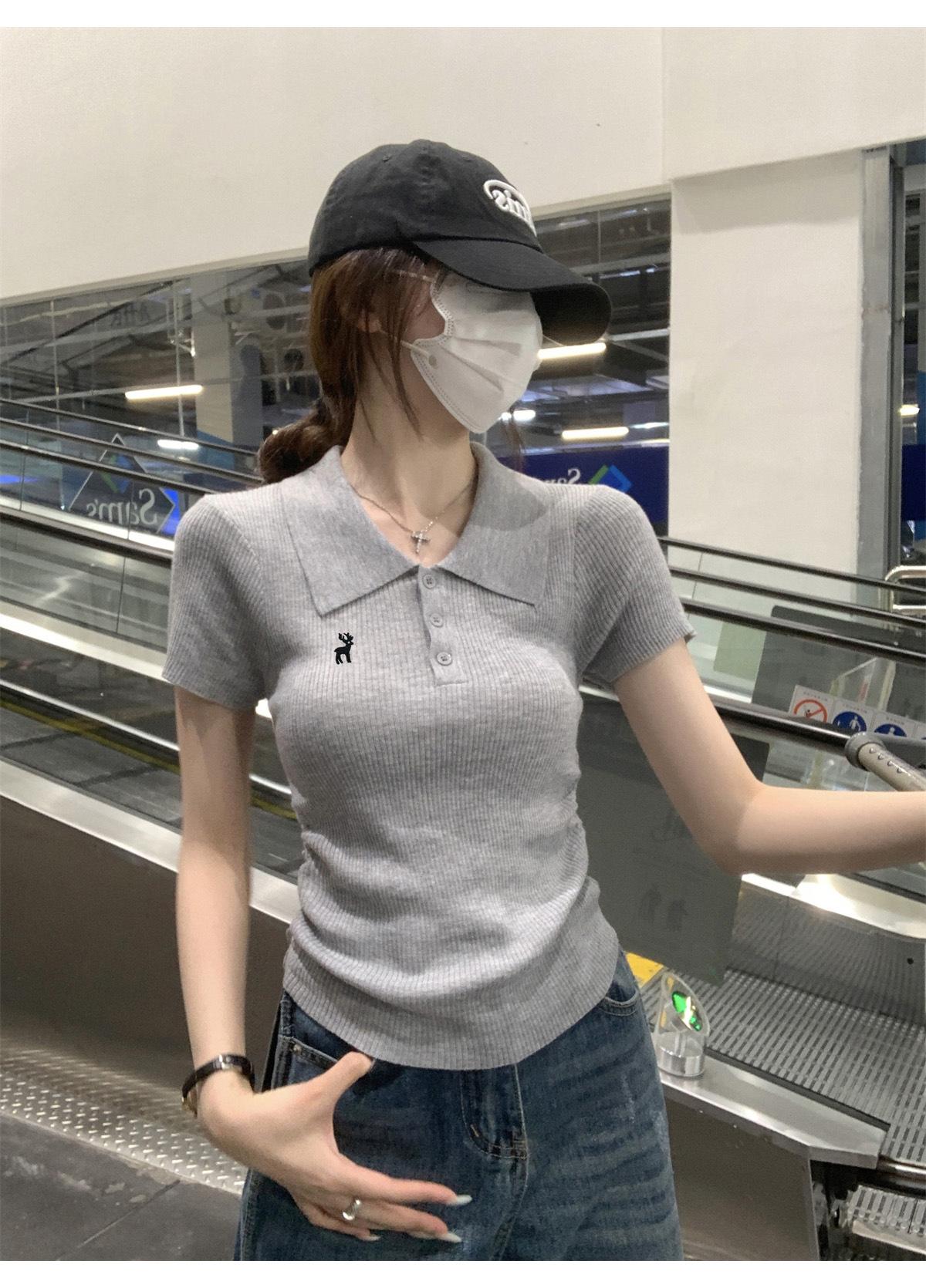 Polo Retro Bordado Cuello Abotonado Plisado Tejido de Punto Manga Corta de Verano para Mujer Nuevo Casual para Fondo Camiseta Top Trendy