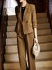 Ropa de Mujer de Comercio Exterior Transfronterizo Otoño 2025 Estilo Europeo y Americano Ajustado con Lazos Estampado Conjunto Chaqueta de Traje + Pantalón Mujer B4