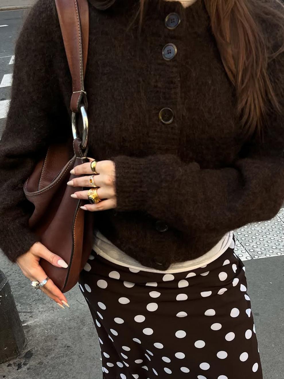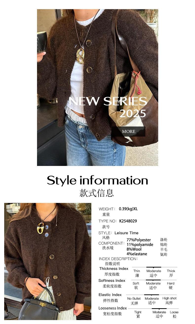 Nuevo Cárdigan Suéter Europeo y Americano Casual Simple con Botones de Manga Larga para Exterior Estilo Lazy Elegante Retro