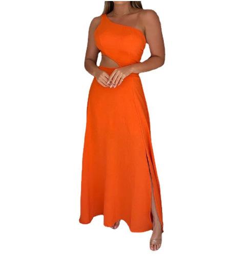 Ropa de verano para mujer europea y americana 2024 elegante moda cruzado sin mangas color sólido con cordones en la cintura vestido largo con abertura Grupo