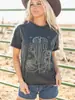 Venta al por mayor de comercio exterior transfronterizo 2025 Verano Nuevo Estilo europeo y americano Moda Casual Suelto Estampado Camiseta de manga corta Tops de mujer