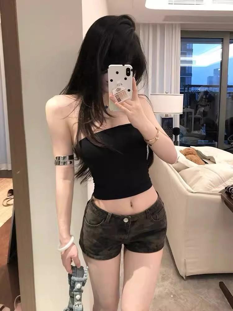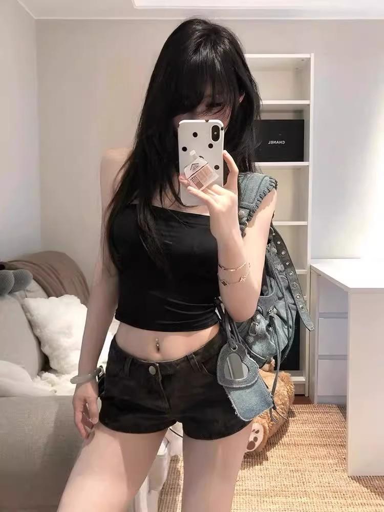 Shorts Americanos Retro de Mezclilla de Camuflaje de Cintura Baja para Chica Sexy Mujer 2025 Nuevo Verano Delgados Tipo A