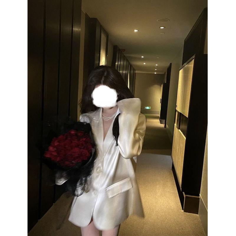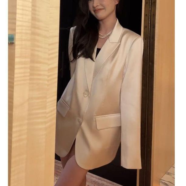 Chaqueta de traje casual holgada adelgazante estilo coreano para mujer, color champán, primavera y otoño, a la moda