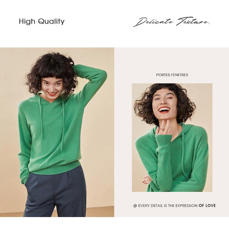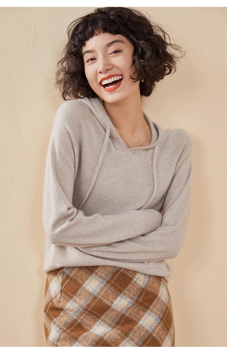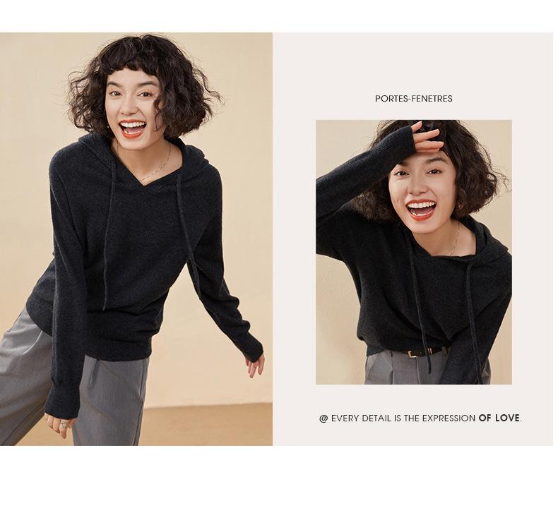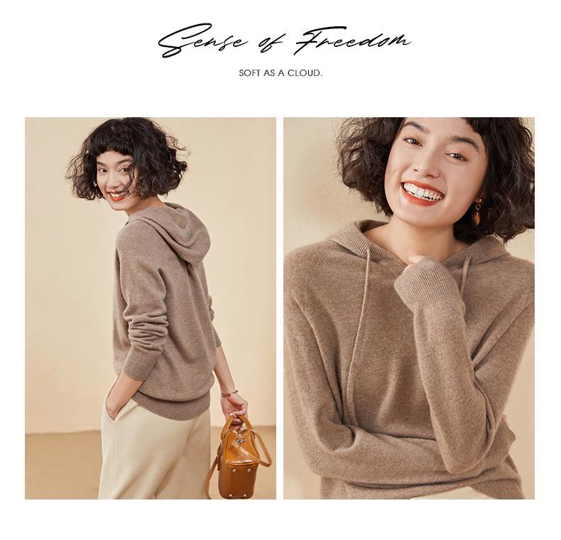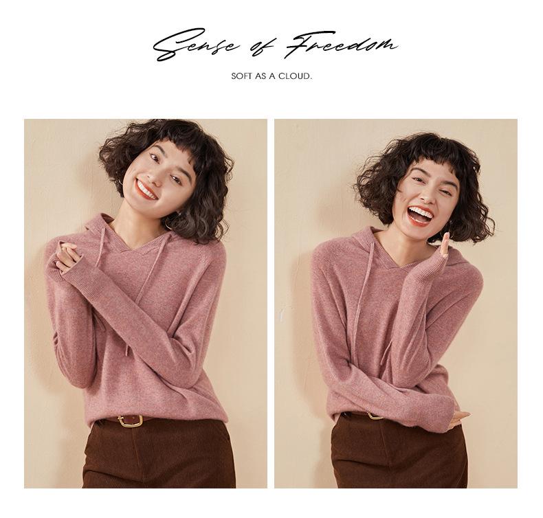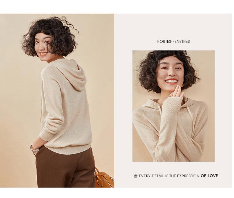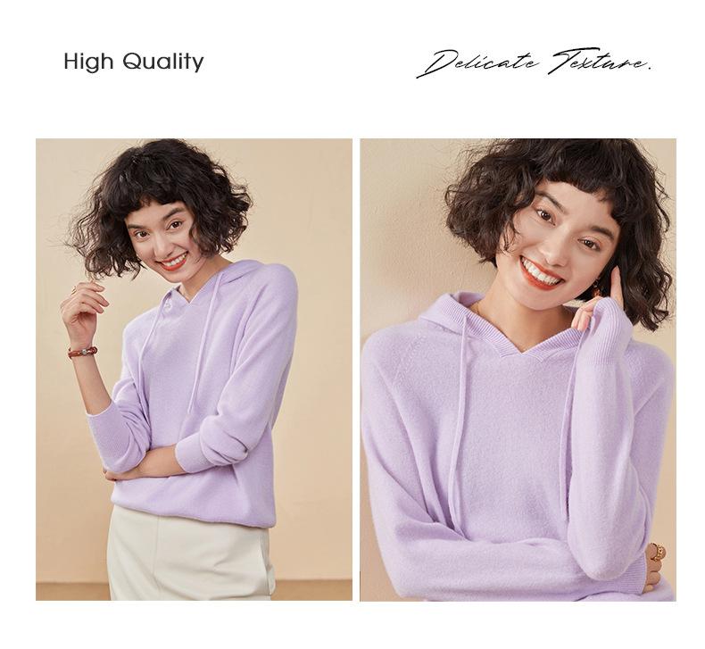 Otoño/Invierno 2025 Nuevo Estilo Prendas de Punto de Cachemira Sudadera con Capucha para Mujer Suéter Holgado Fino de Alta Gama Top Base