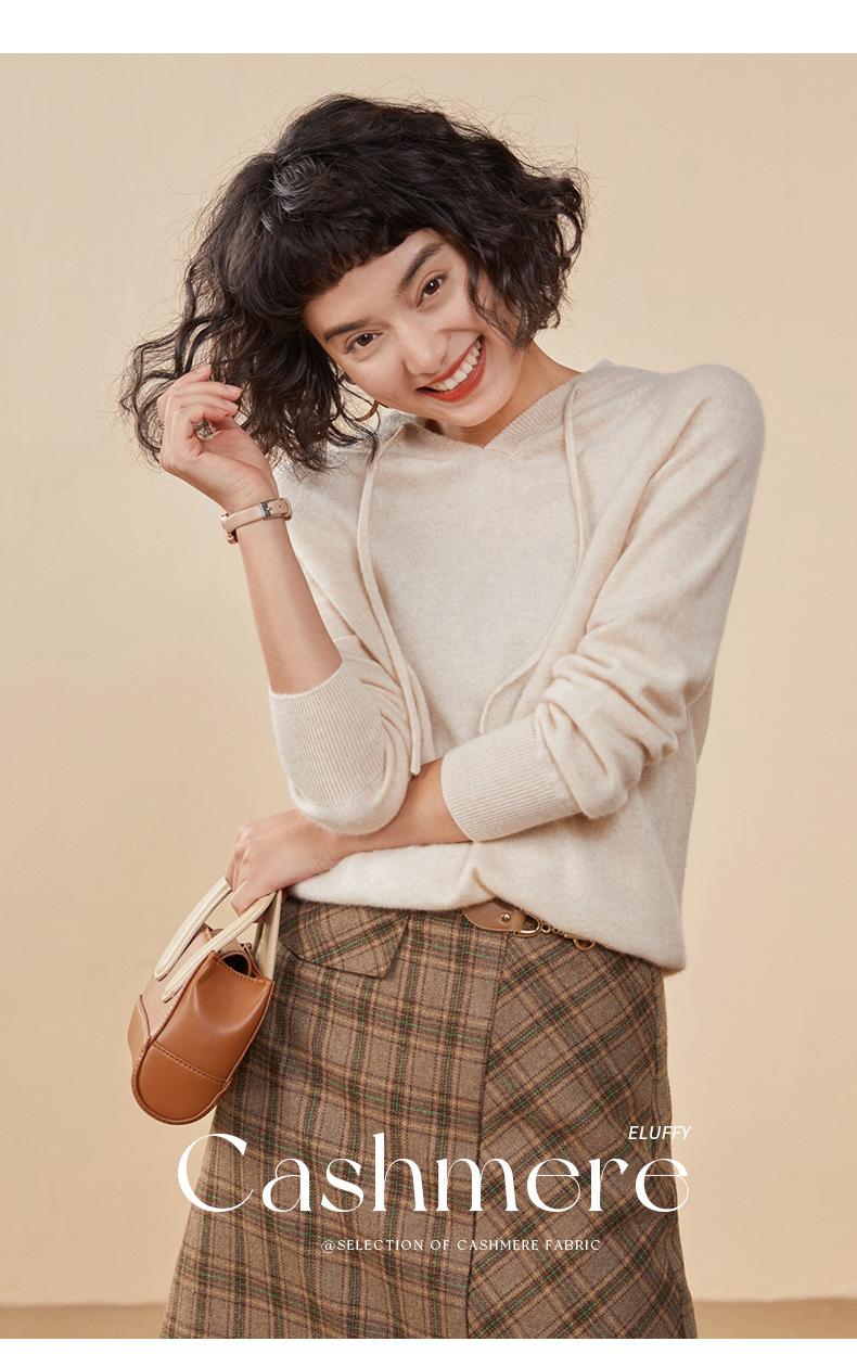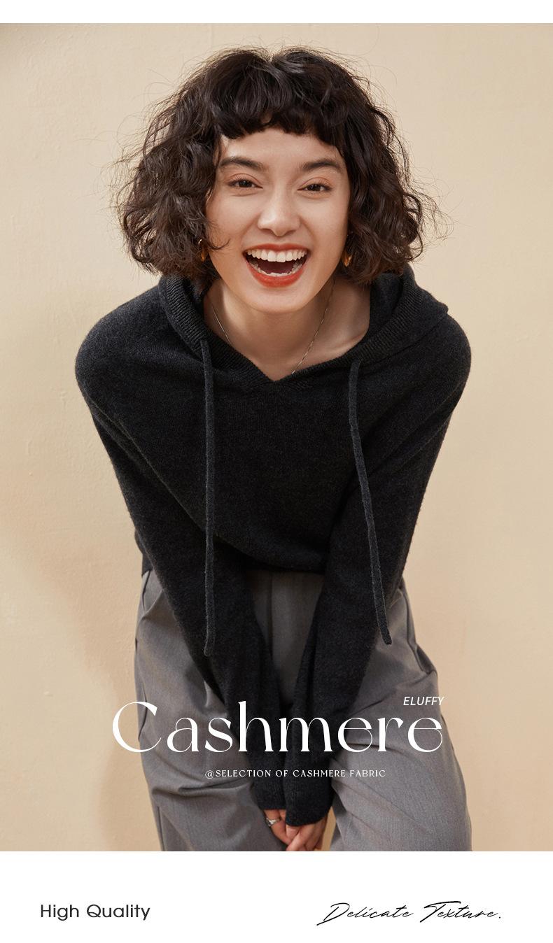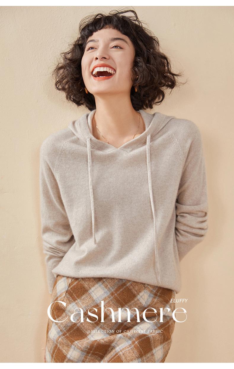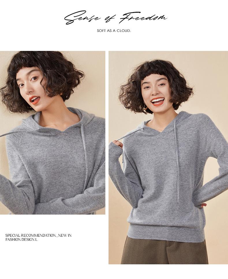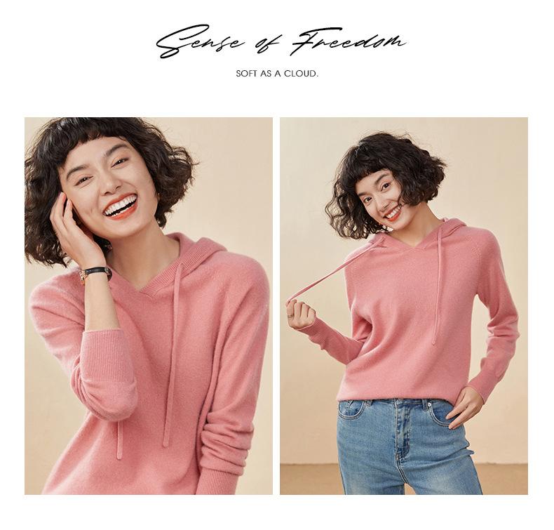 Otoño/Invierno 2025 Nuevo Estilo Prendas de Punto de Cachemira Sudadera con Capucha para Mujer Suéter Holgado Fino de Alta Gama Top Base