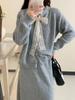 Suéter de Encaje Coreano de Encaje Cuello Redondo de Dos Piezas Otoño e Invierno Nuevo Cárdigan Tejido Chaqueta + Traje de Falda para Mujer