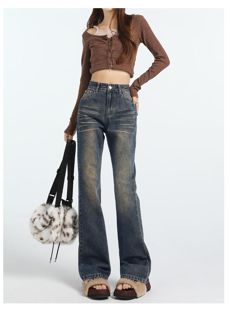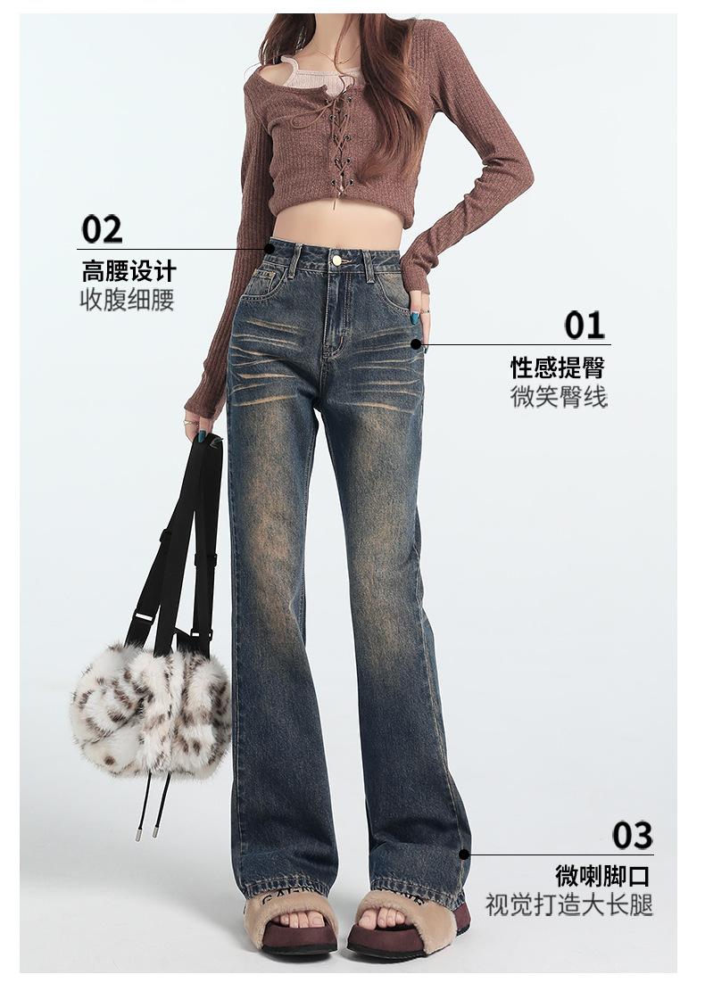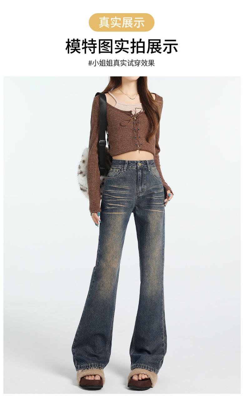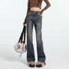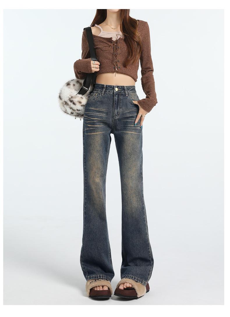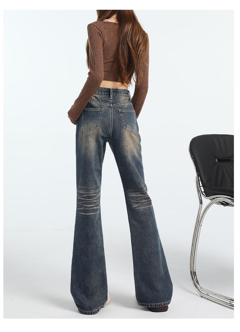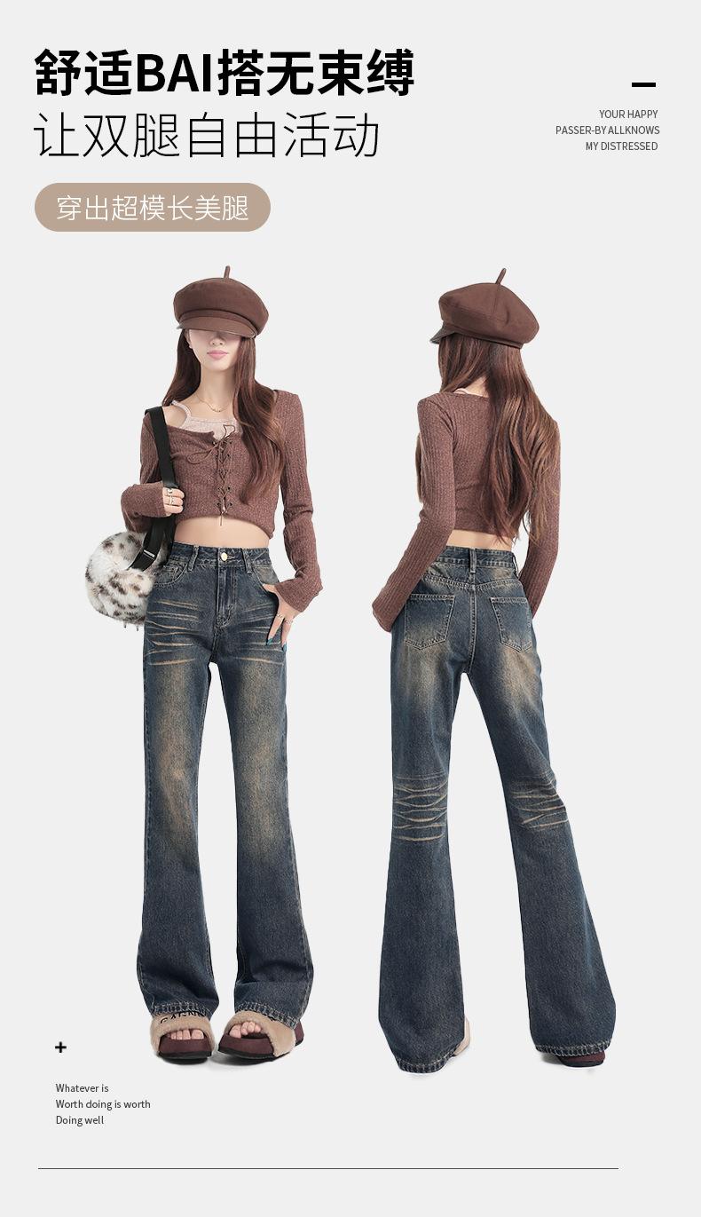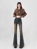 Jeans microacampanados nano grises para mujer otoño e invierno 2025 nuevos persona pequeña cintura alta corte ajustado adelgazantes pantalones acampanados