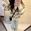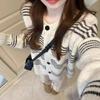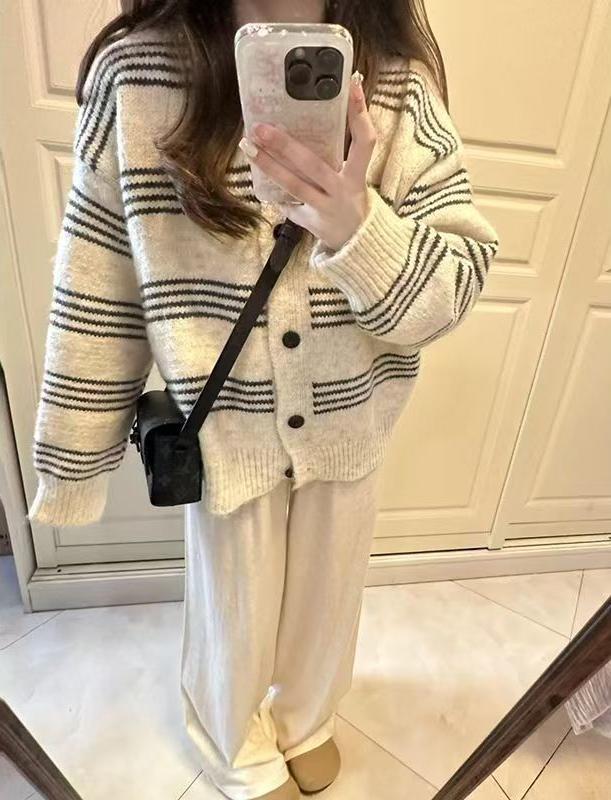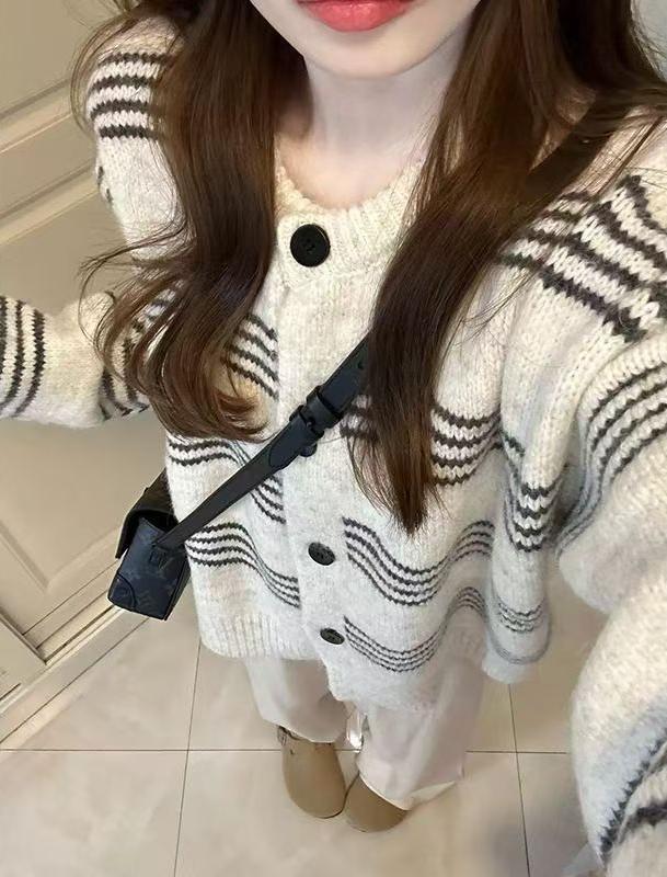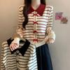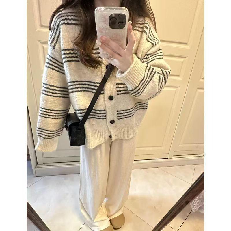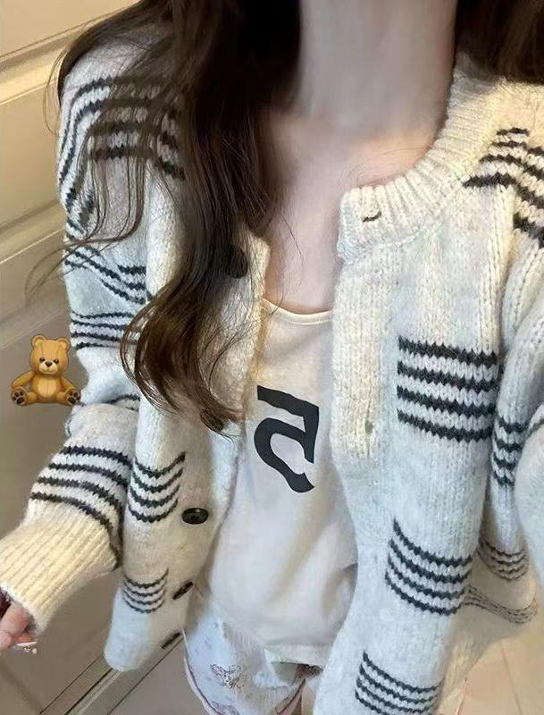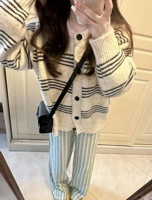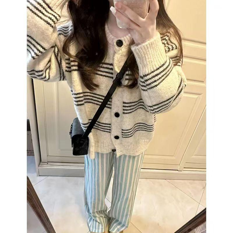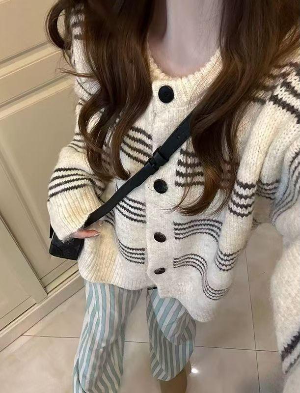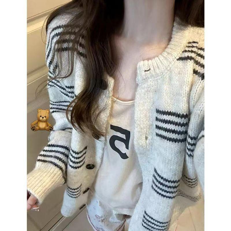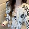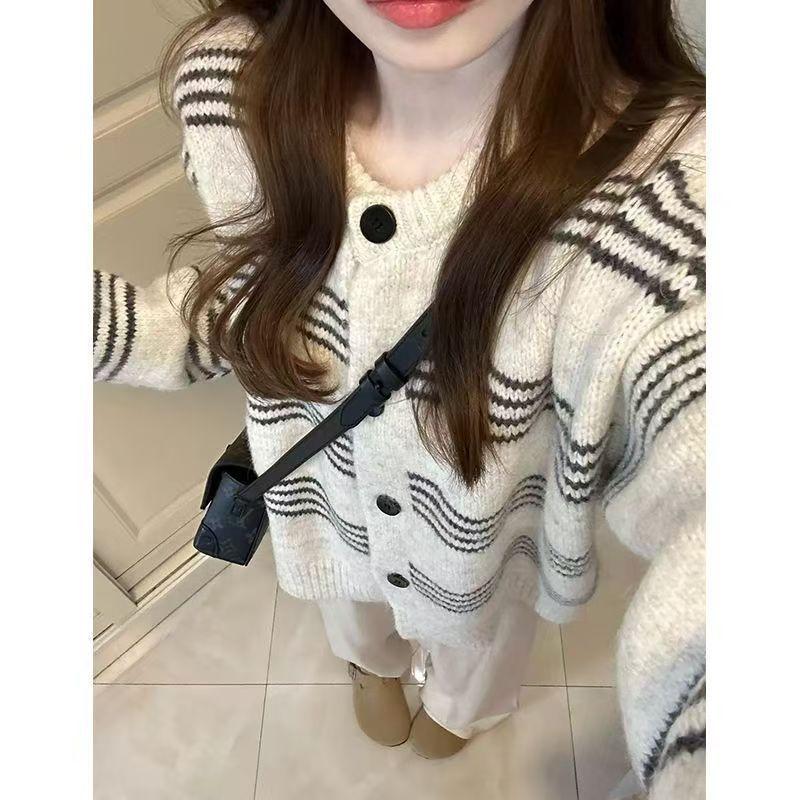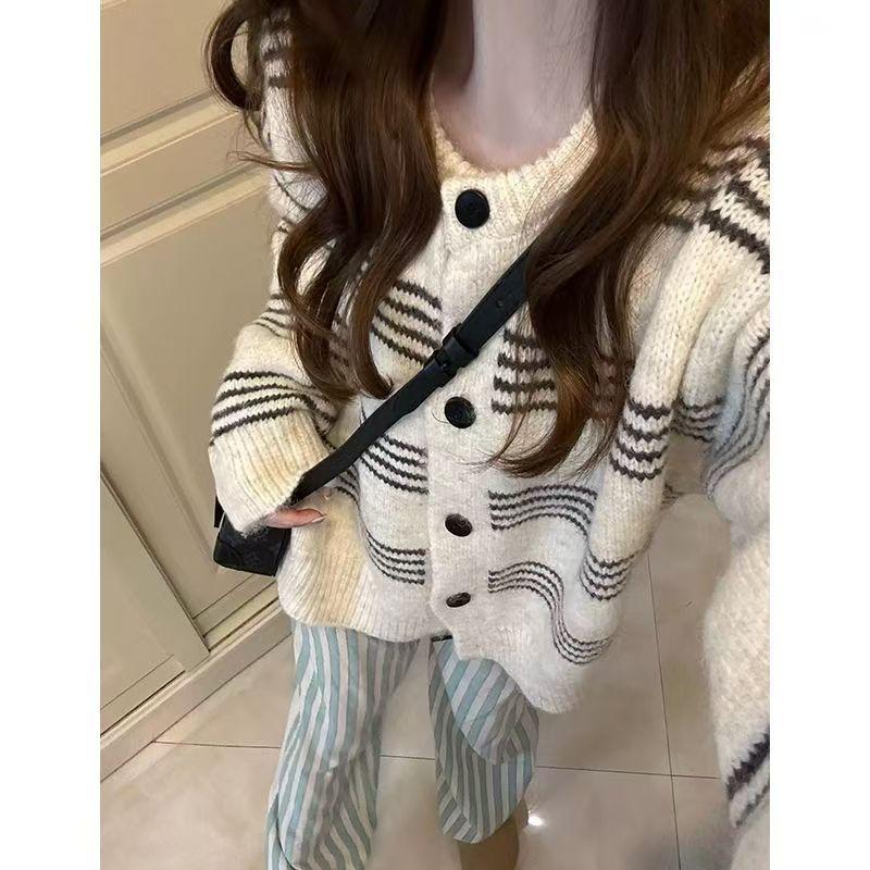 Abrigo suéter de rayas de estilo casual perezoso coreano para mujer, otoño, de alta gama, holgado, adelgazante, top tipo cárdigan pequeño