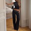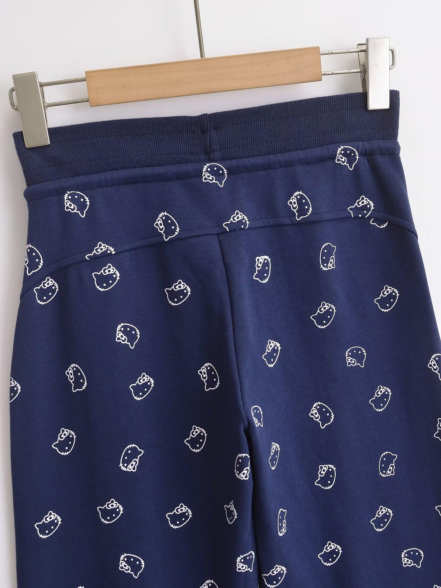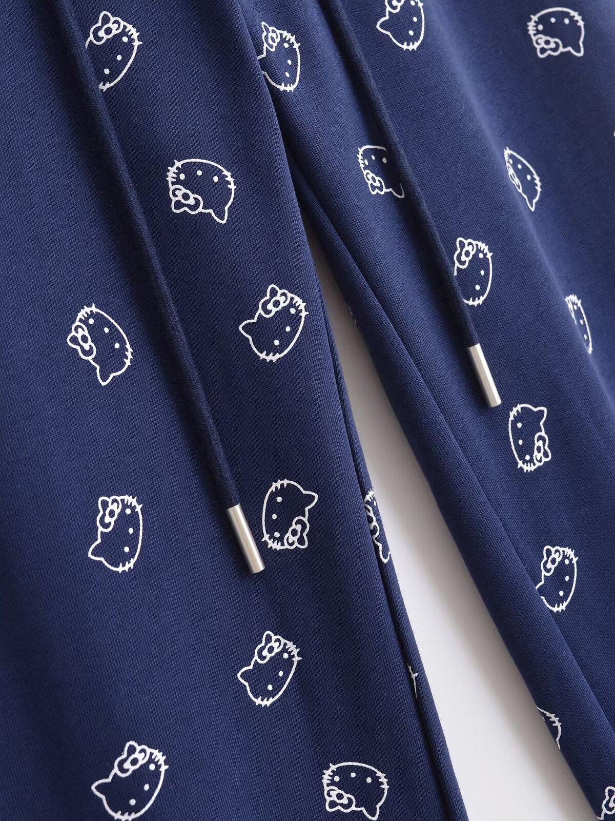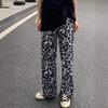 Pantalones deportivos estampados de cintura baja estilo americano para mujer, verano 2024, nuevos, con cintura de cordón, holgados, adelgazantes, rectos, casuales