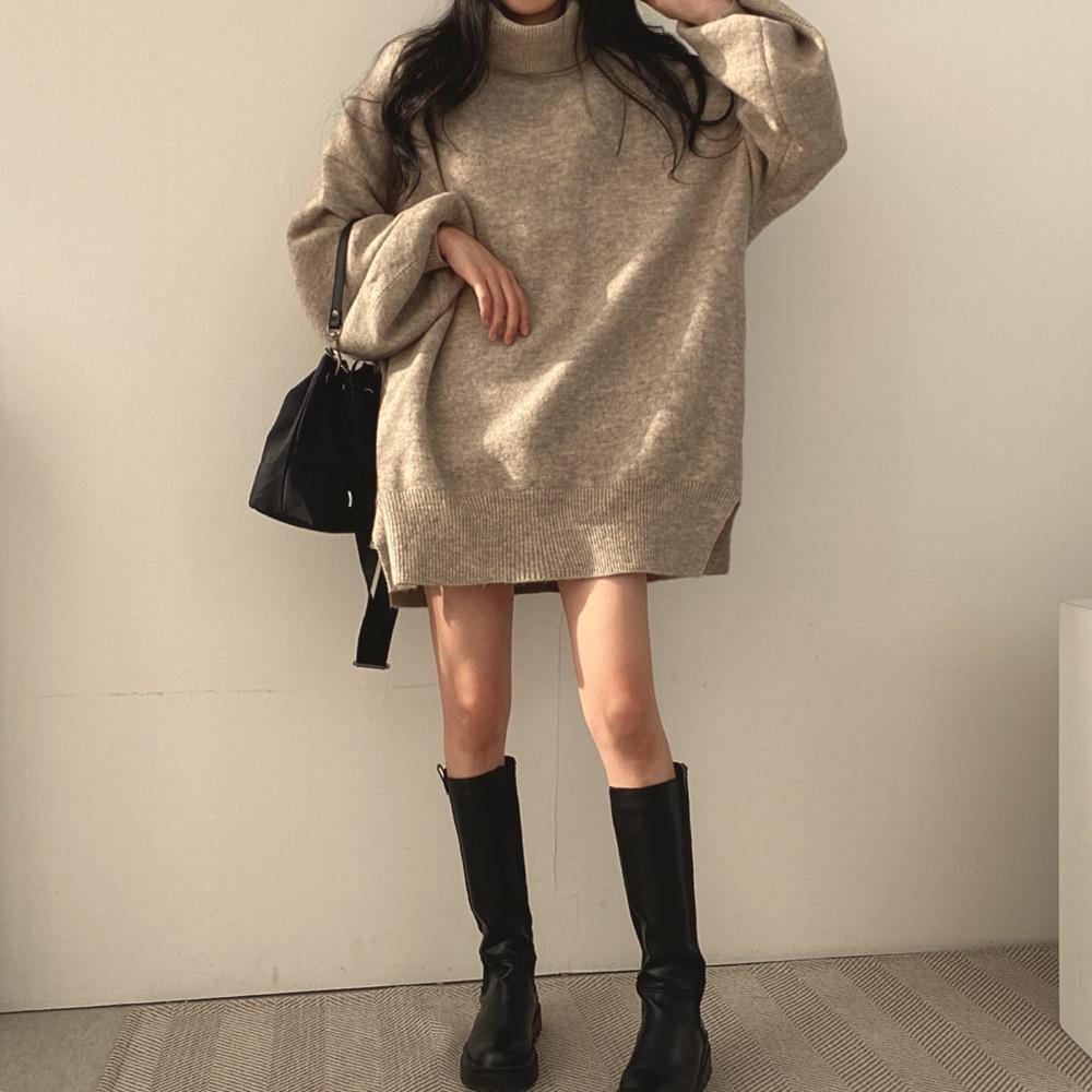 Suéter de cuello alto de largo medio para mujer, ropa de otoño e invierno, capa interior, holgado y básico, cubre las caderas, top de alta gama extra grueso