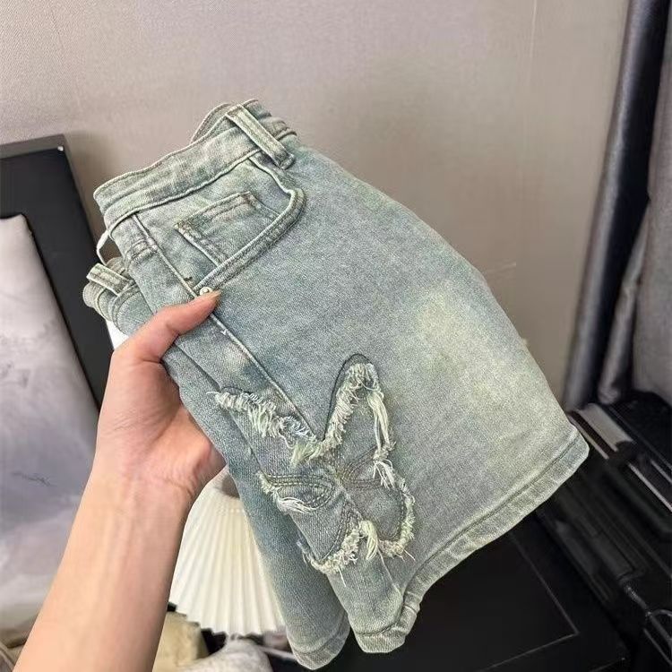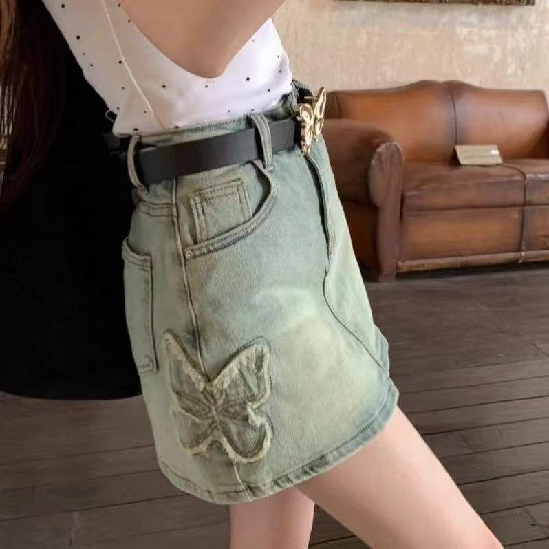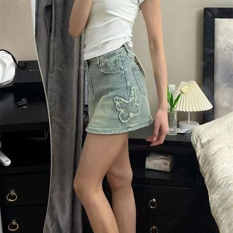 Falda de Mezclilla Bordada con Mariposas de Diseño Nicho Retro de Verano 2025 para Mujer, Falda Corta A-Line Antiexposición Ajustada a la Cadera