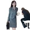 Ropa de Otoño para Mujer 2025 Nuevo Estilo Pequeño Fragancia Abrigo Corto de Lana Falda Línea A Estilo Sal Conjunto de Dos Piezas