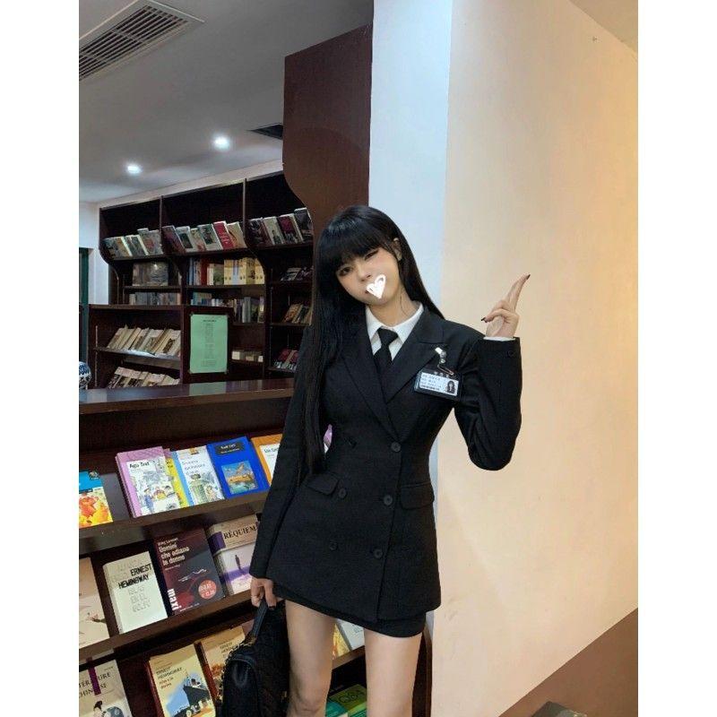 Estilo preppy moda que reduce la edad camisa de uniforme jk chaqueta de traje de largo medio falda corta de cintura alta que abraza las caderas conjunto de chica picante mujeres