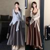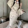 Vestido Camisola Estilo Maduro Talla Grande Mujer Otoño Gordo MM Adelgazante Traje Chaqueta Conjunto de Dos Piezas