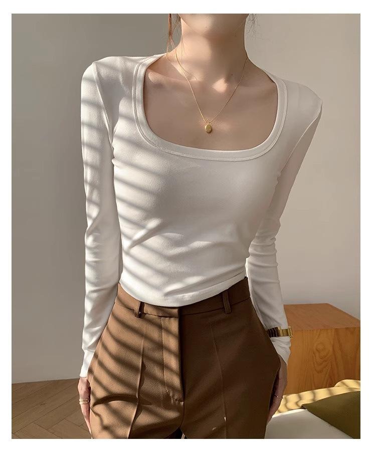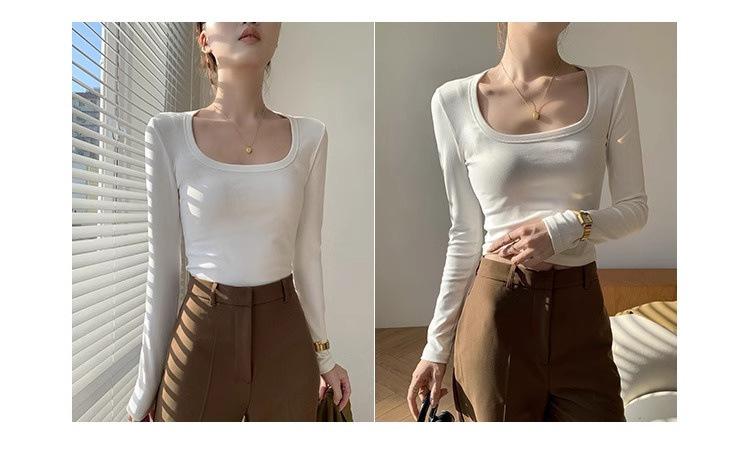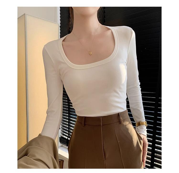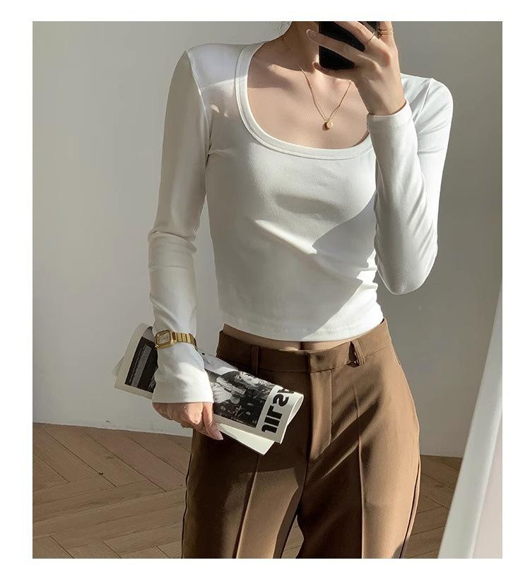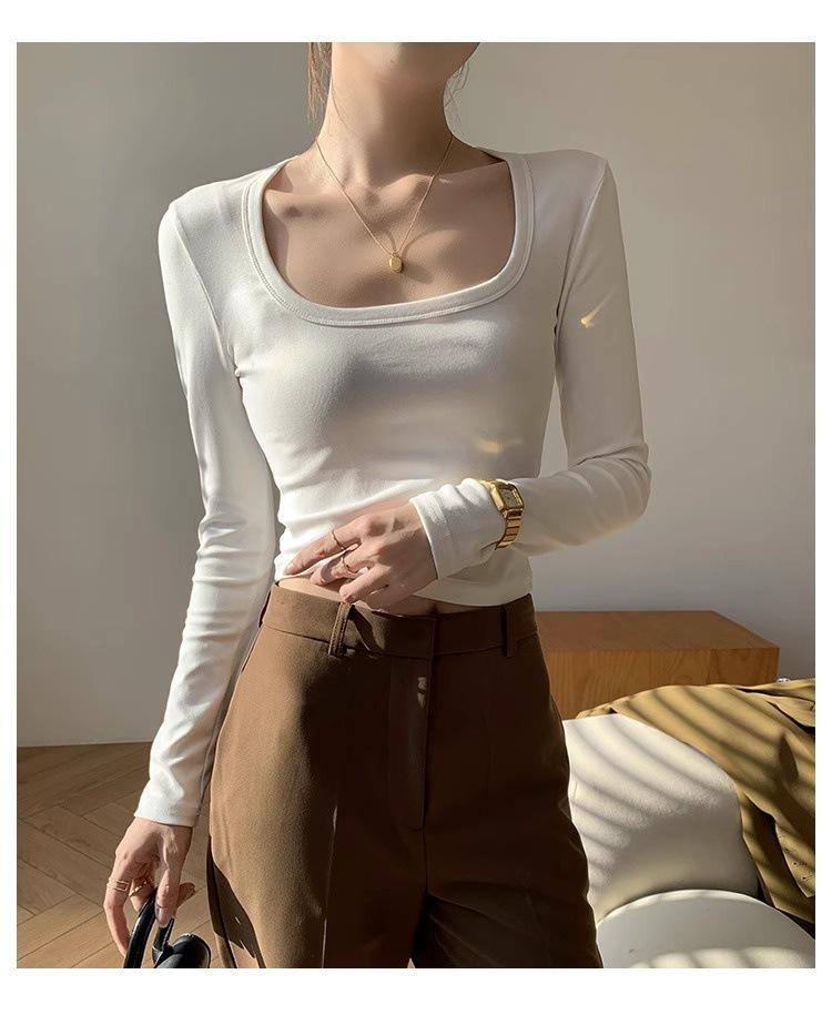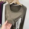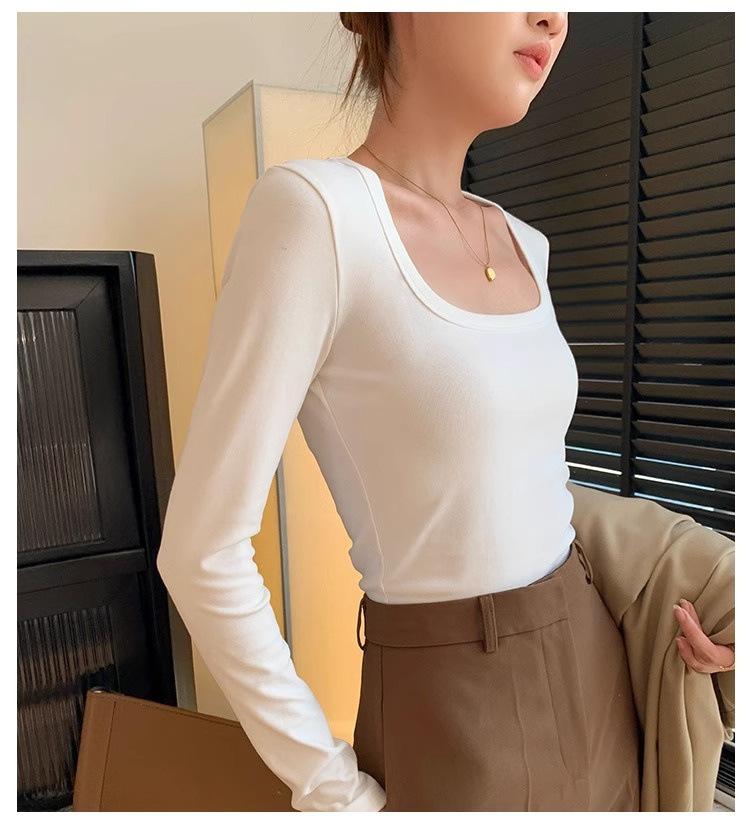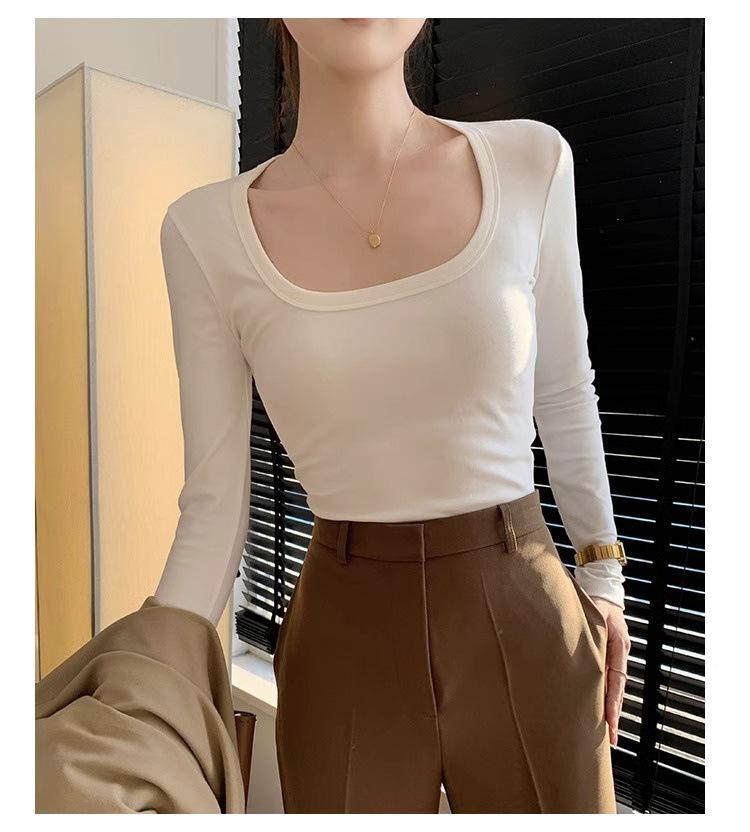 Camiseta de Manga Larga de Algodón Puro para Mujer Ropa de Primavera Otoño Ropa Exterior 2025 Nuevo Estilo Camiseta Básica Ropa Interior Top Hombro Regular Cuello Cuadrado Petite