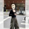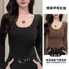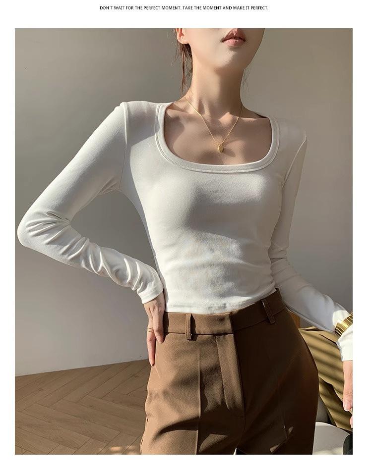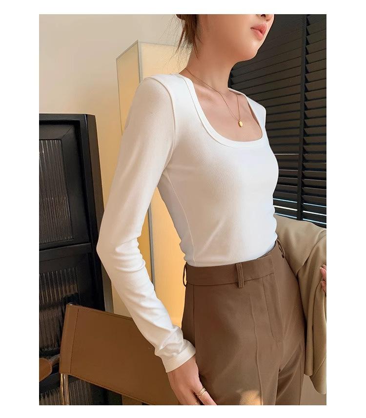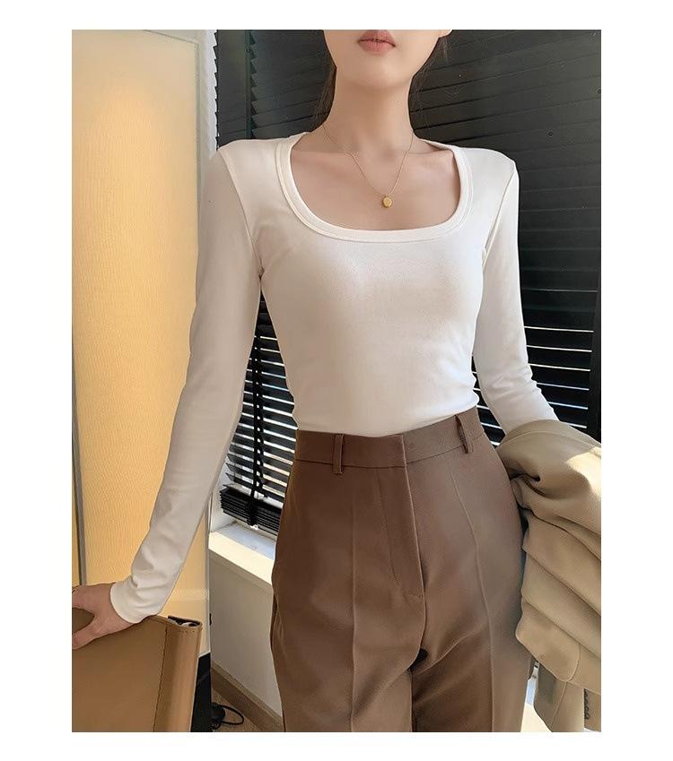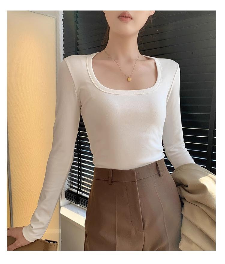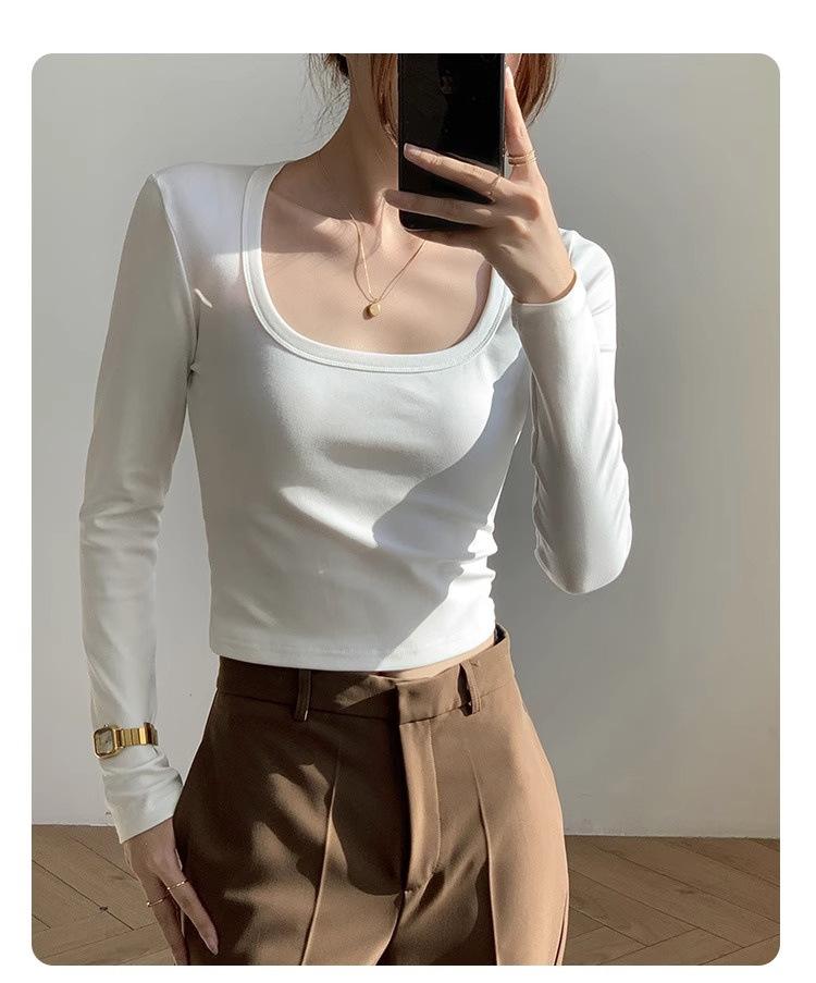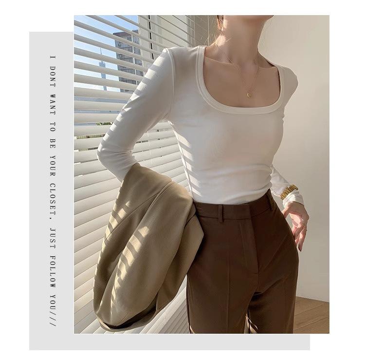 Camiseta de Manga Larga de Algodón Puro para Mujer Ropa de Primavera Otoño Ropa Exterior 2025 Nuevo Estilo Camiseta Básica Ropa Interior Top Hombro Regular Cuello Cuadrado Petite