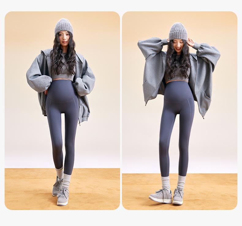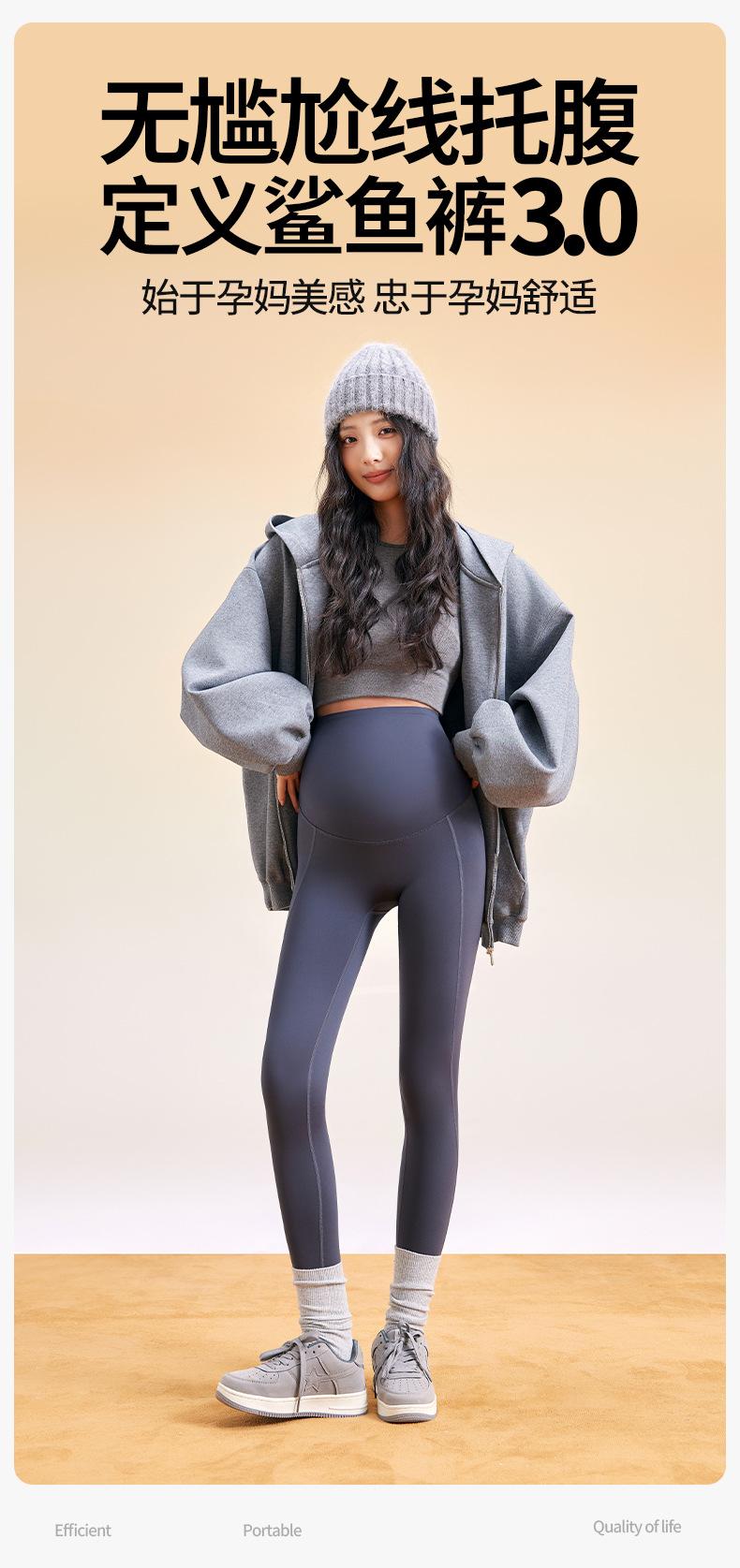 Leggings para mujer embarazada pantalones piel de tiburón ropa exterior cintura alta talla grande pantalones de yoga 2025 otoño e invierno ropa de maternidad pantalones de maternidad nueve puntos