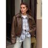 Chaqueta de Cuero Estilo Motocicleta Retro Europeo y Americano para Mujer Otoño 2025 Moda Transfronteriza Chaqueta de Cuero Abrigo Top Corto de Mujer