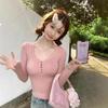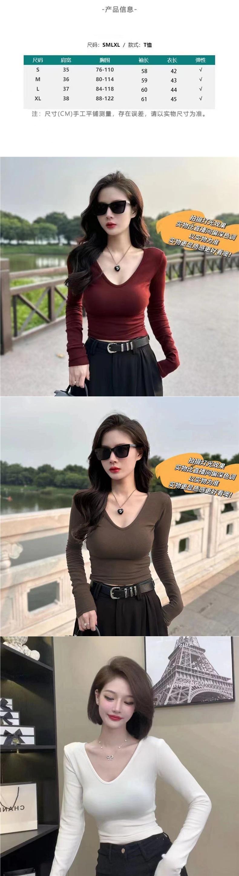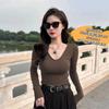 Estilo Americano Felpa Deseo Puro Chica Hot Adelgazante Manga Larga Otoño 2025 Sentido del Diseño Versátil Camiseta Base Top de Mujer