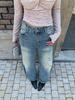 Yuyi Nuevo Otoño 2025 Americano Retro Deshilachado Cimitarra Jeans Mujer Tie-Dye Patrón de Agarre Pantalones de Pierna Ancha Cy1282